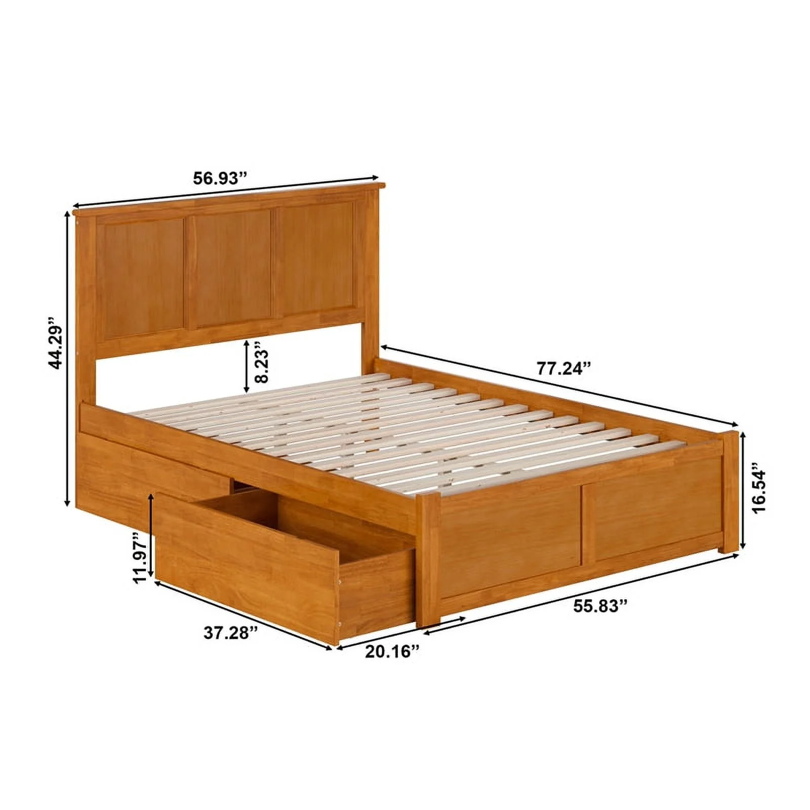 Nantucket Full Wood Platform Bed with Footboard and Drawers in Light Toffee