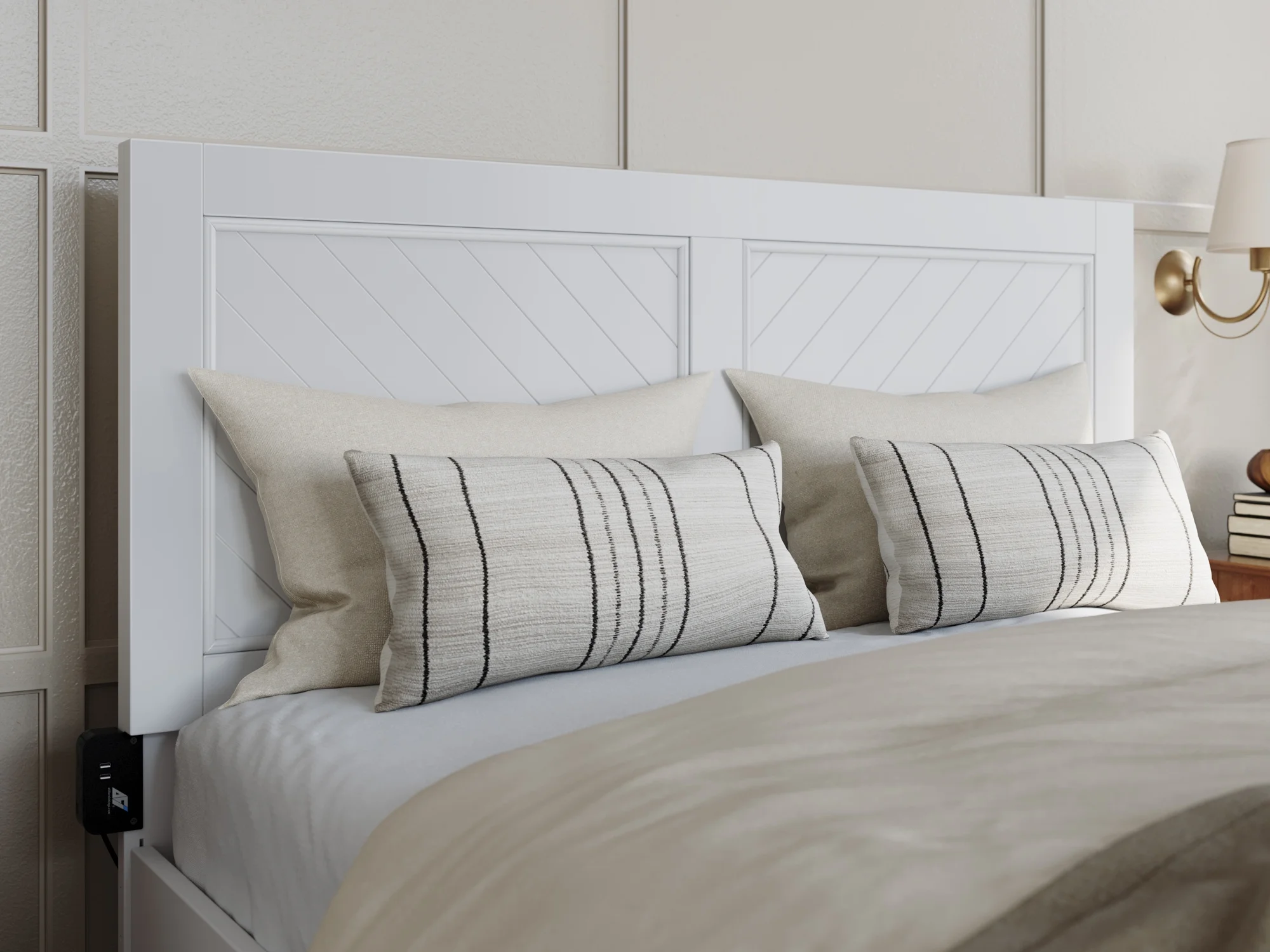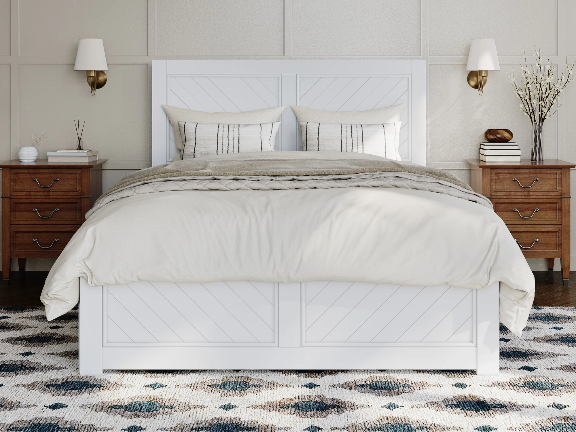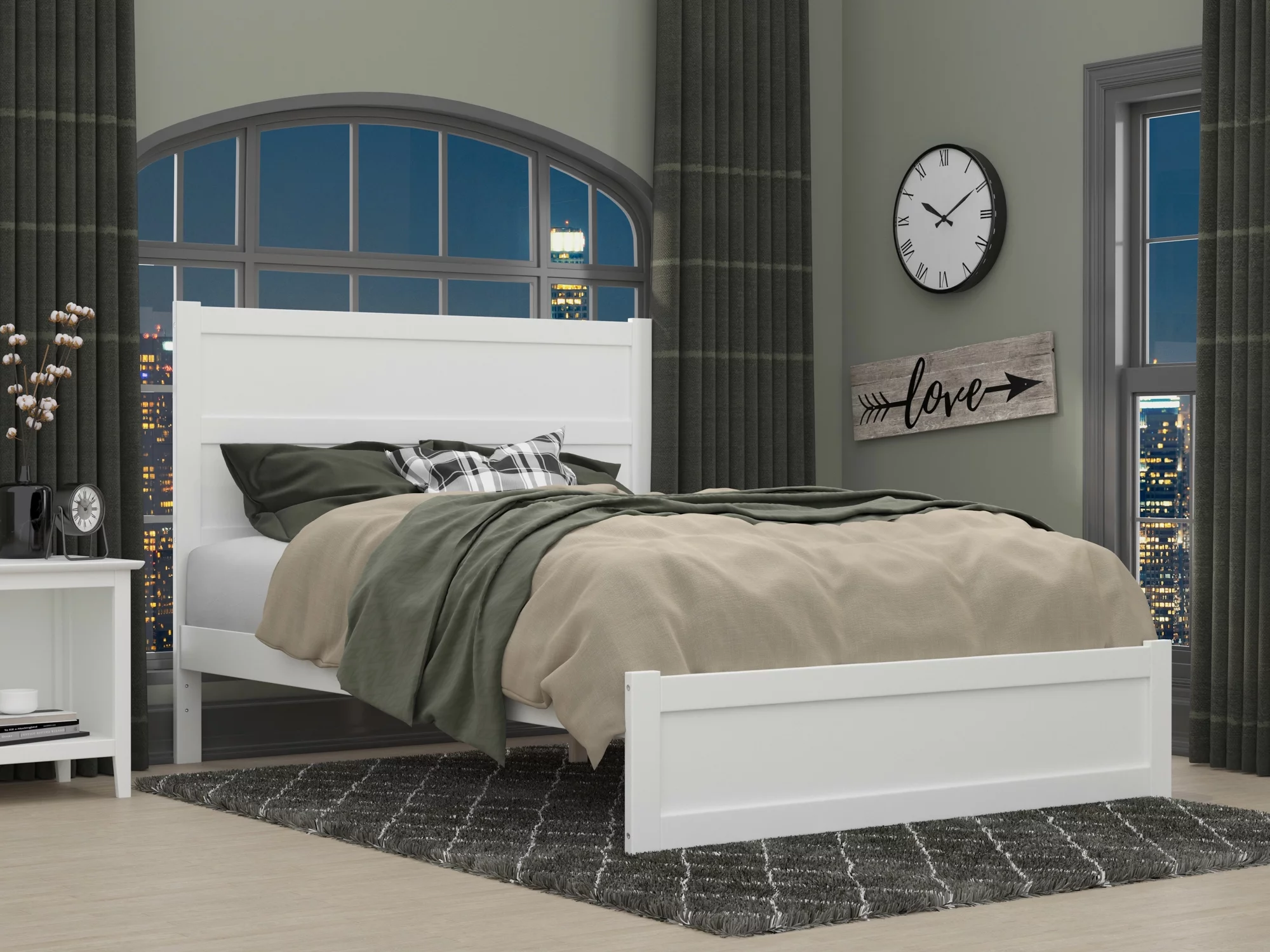 AFI NoHo 14" Queen Wood Platform Bed with Modern Panel Headboard and Footboard, White