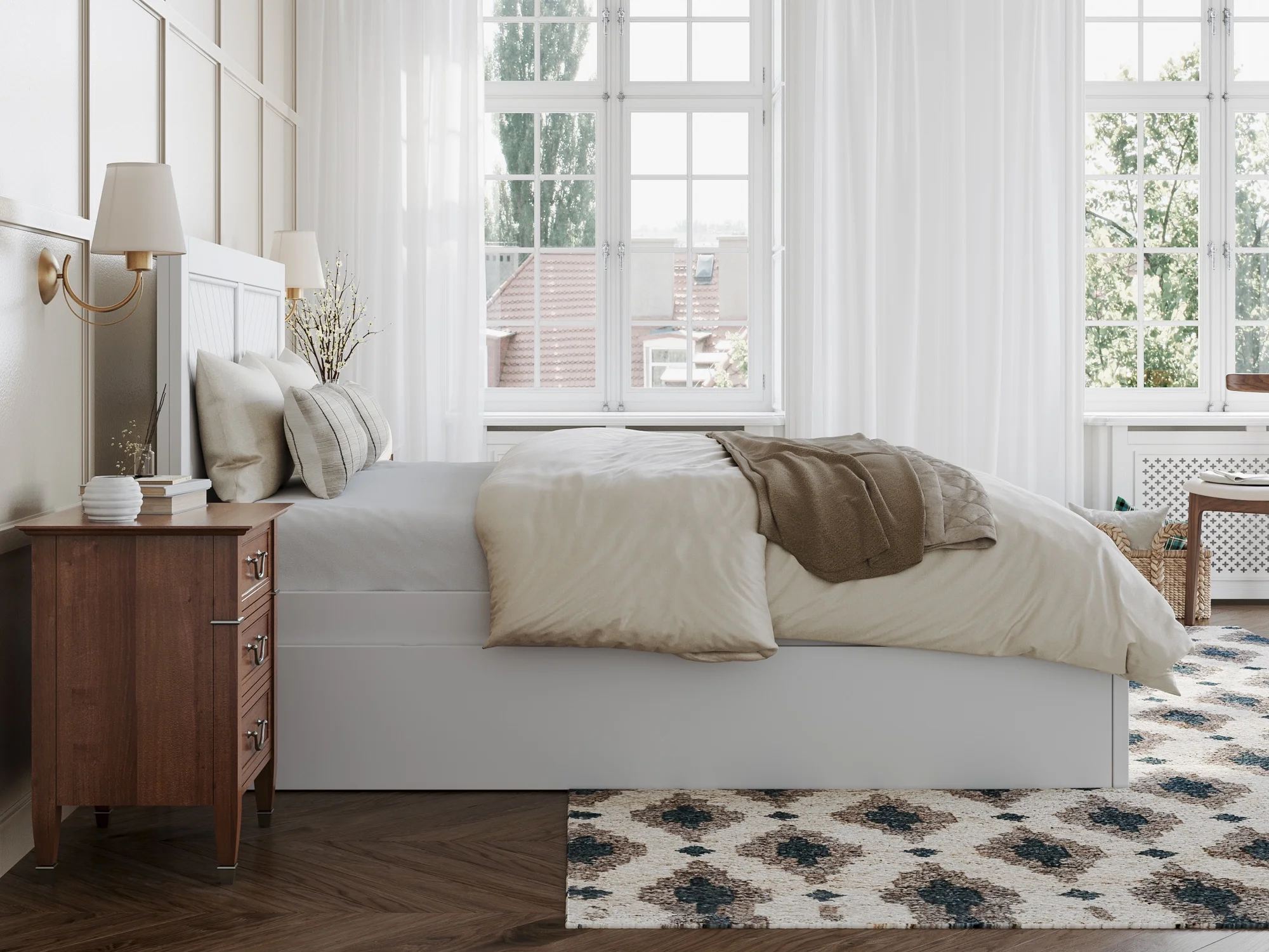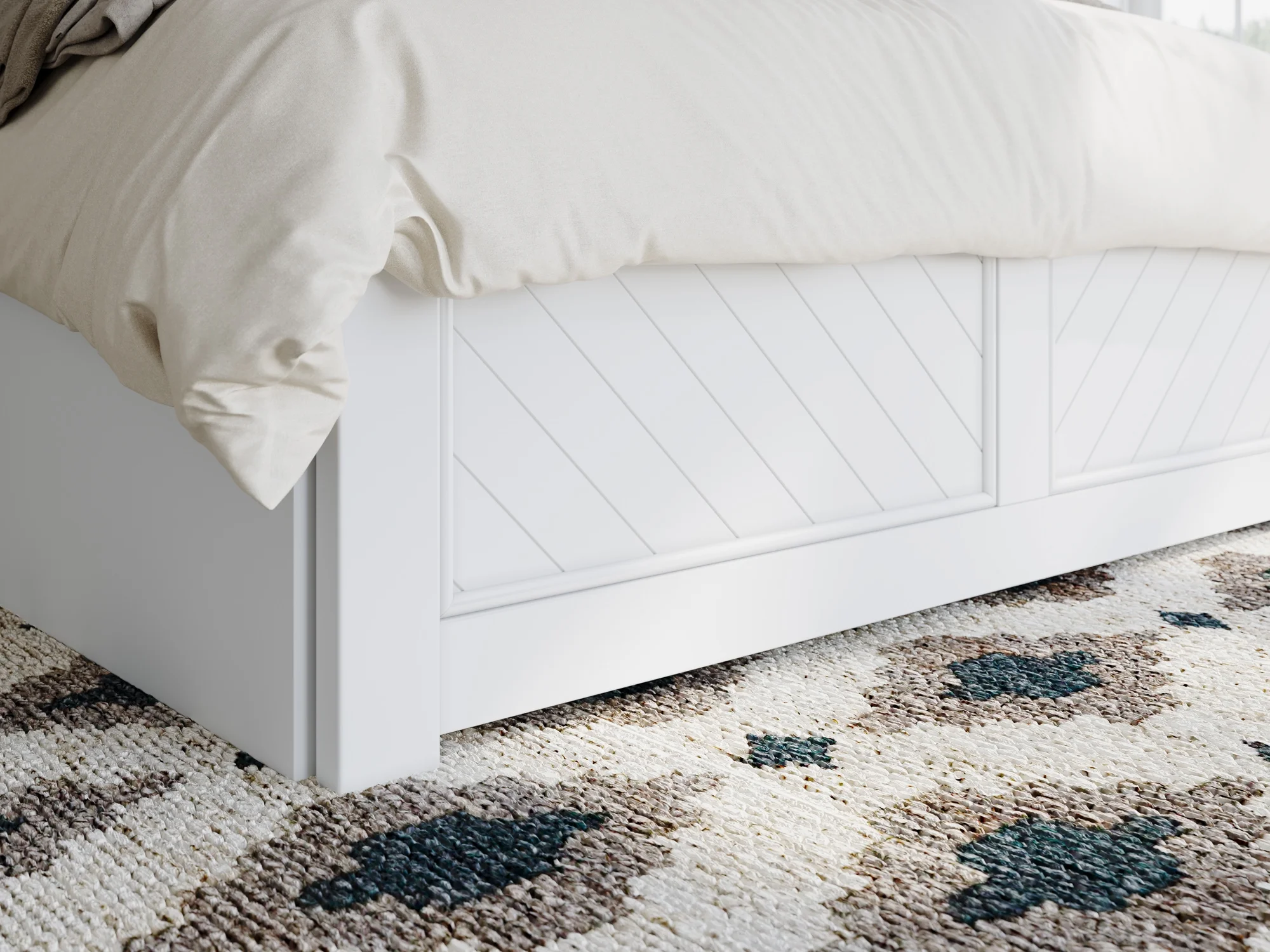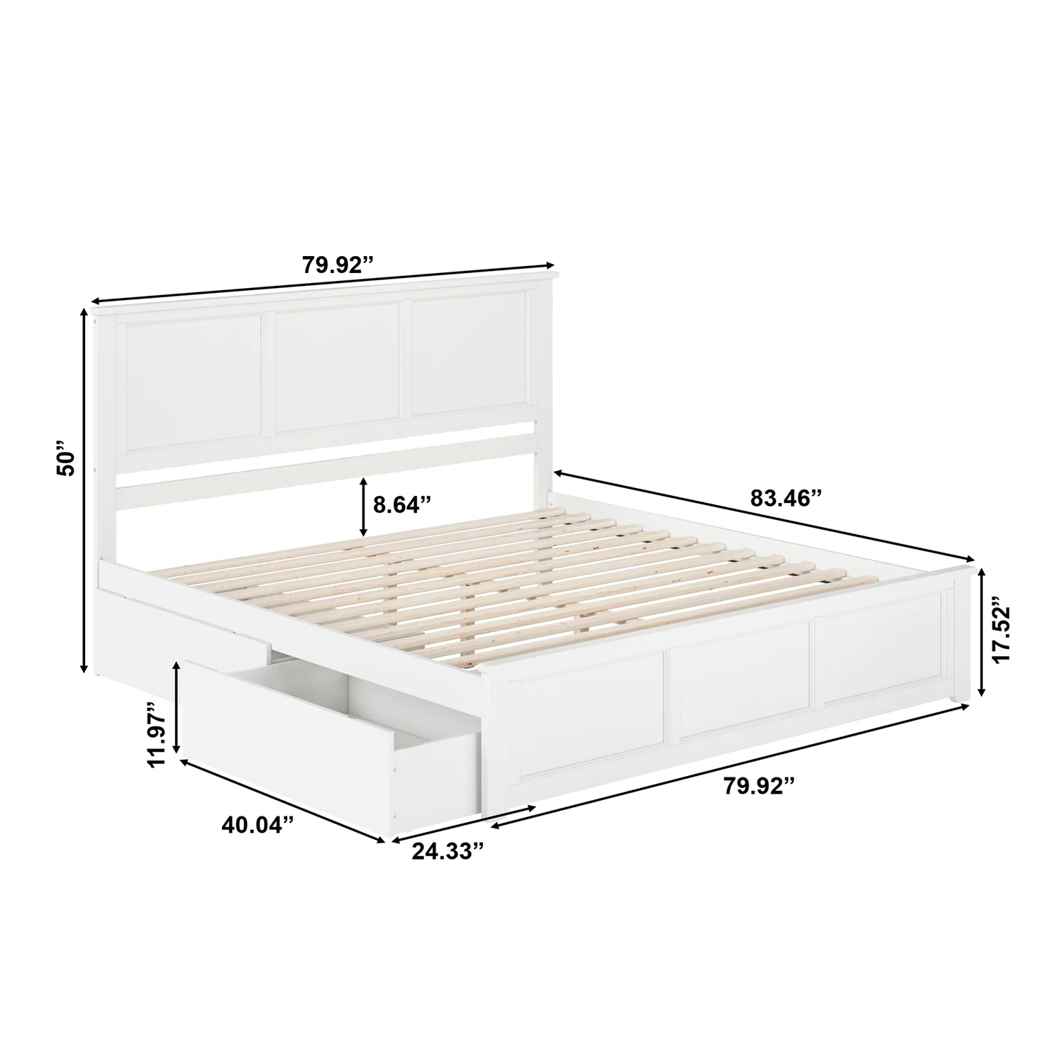 Madison King Wood Platform Bed with Matching Footboard and Drawers in White