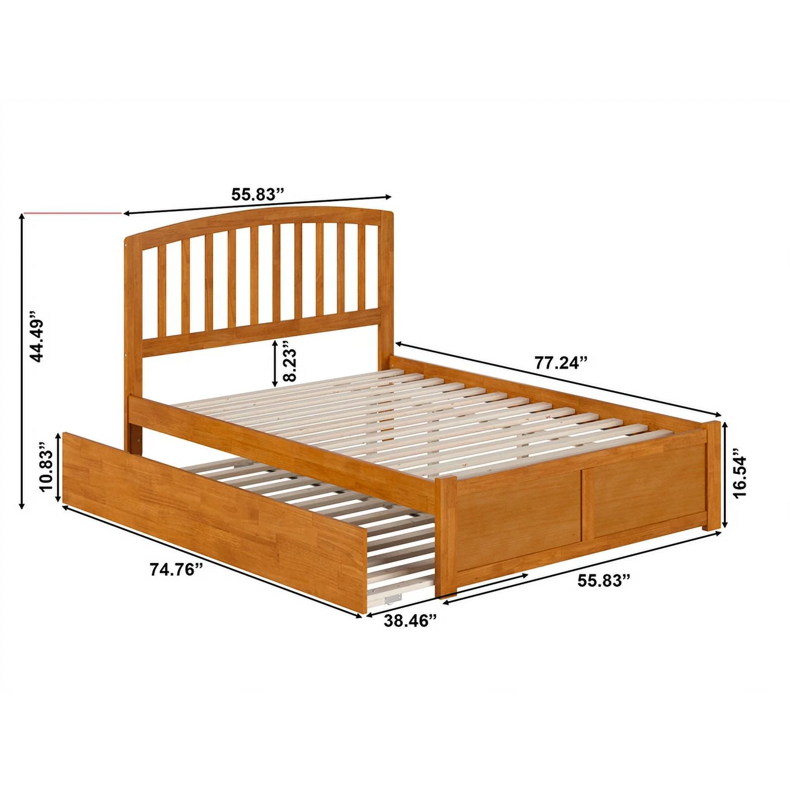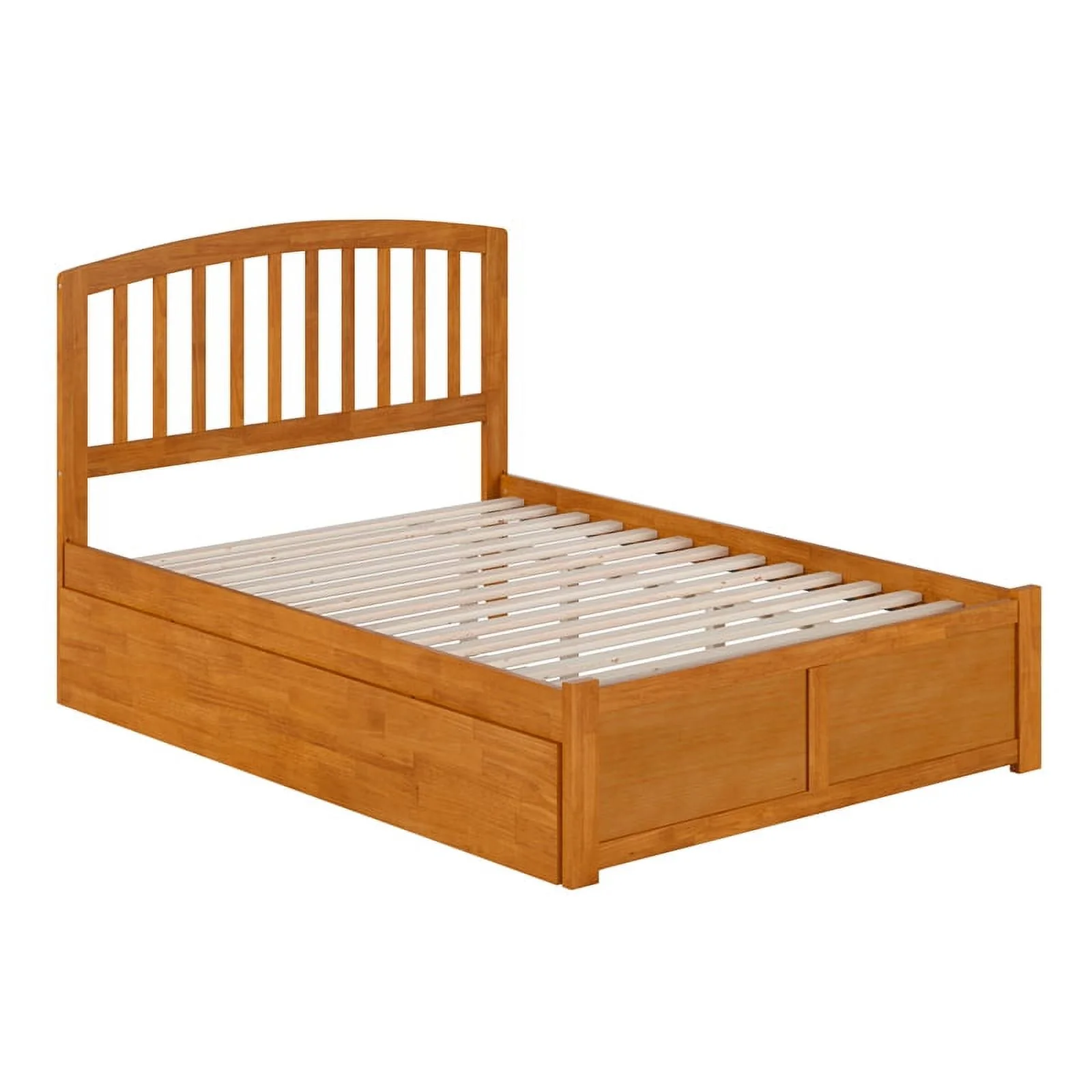 Richmond Full Wood Platform Bed with Footboard and Twin Trundle in Light Toffee
