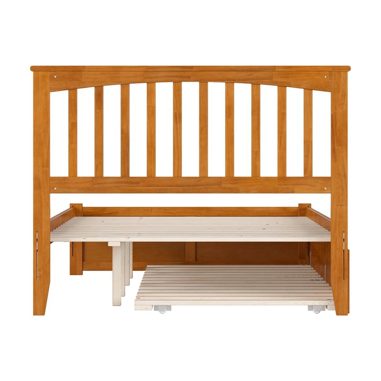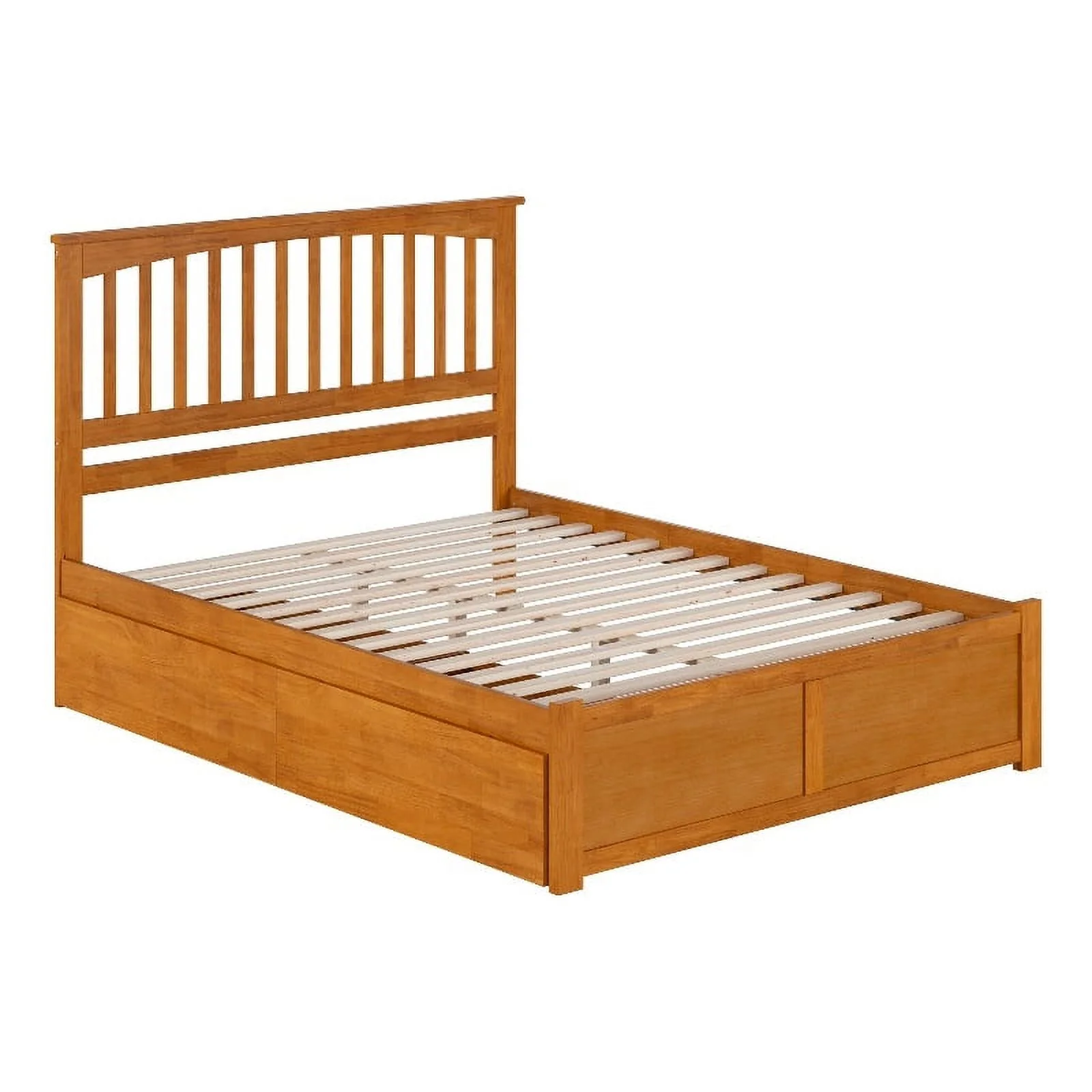 Mission Full Wood Platform Bed with Footboard and Twin Trundle in Light Toffee