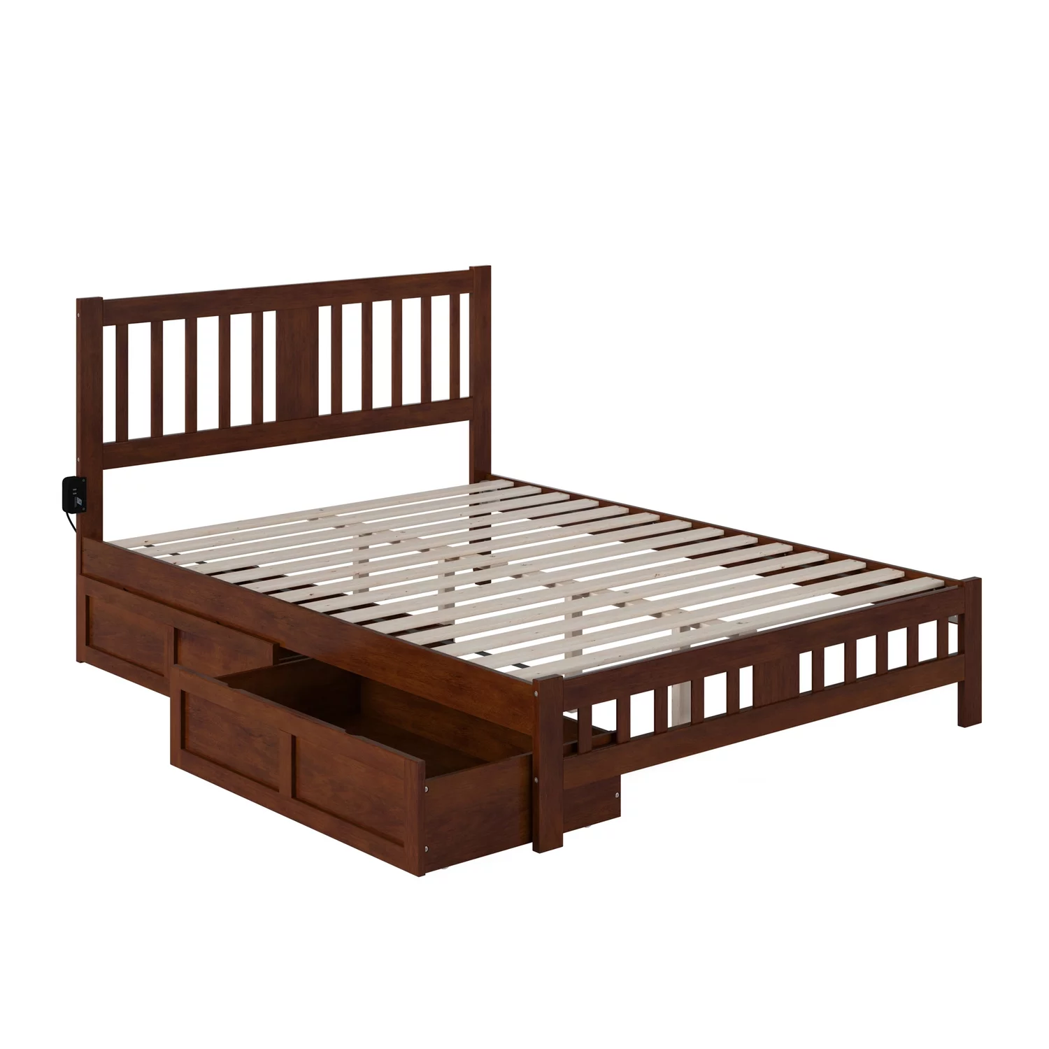 Nantucket Full Wood Platform Bed with Matching Footboard and Drawers in Walnut