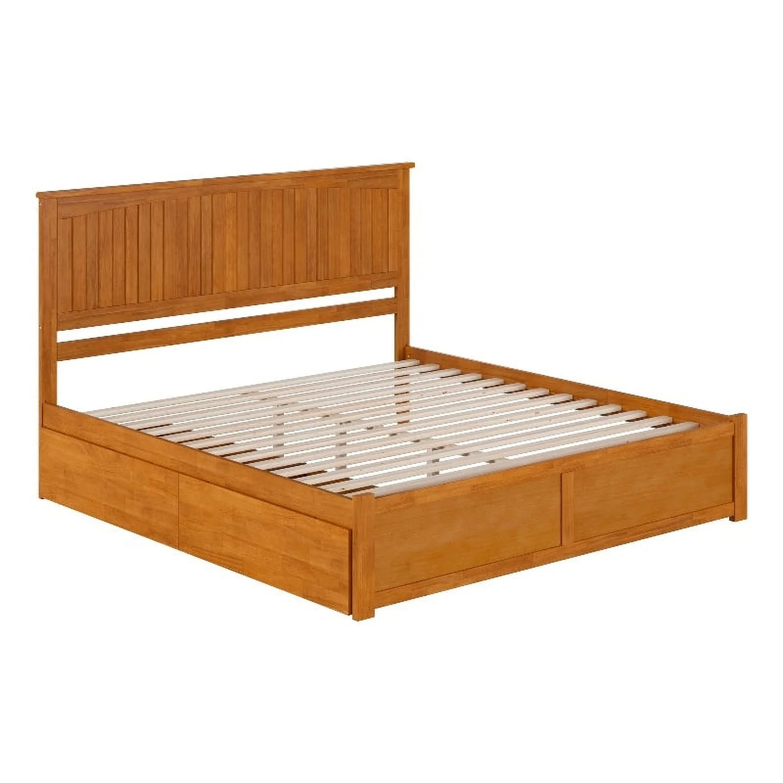 Nantucket King Wood Platform Bed with Footboard and Drawers in Light Toffee