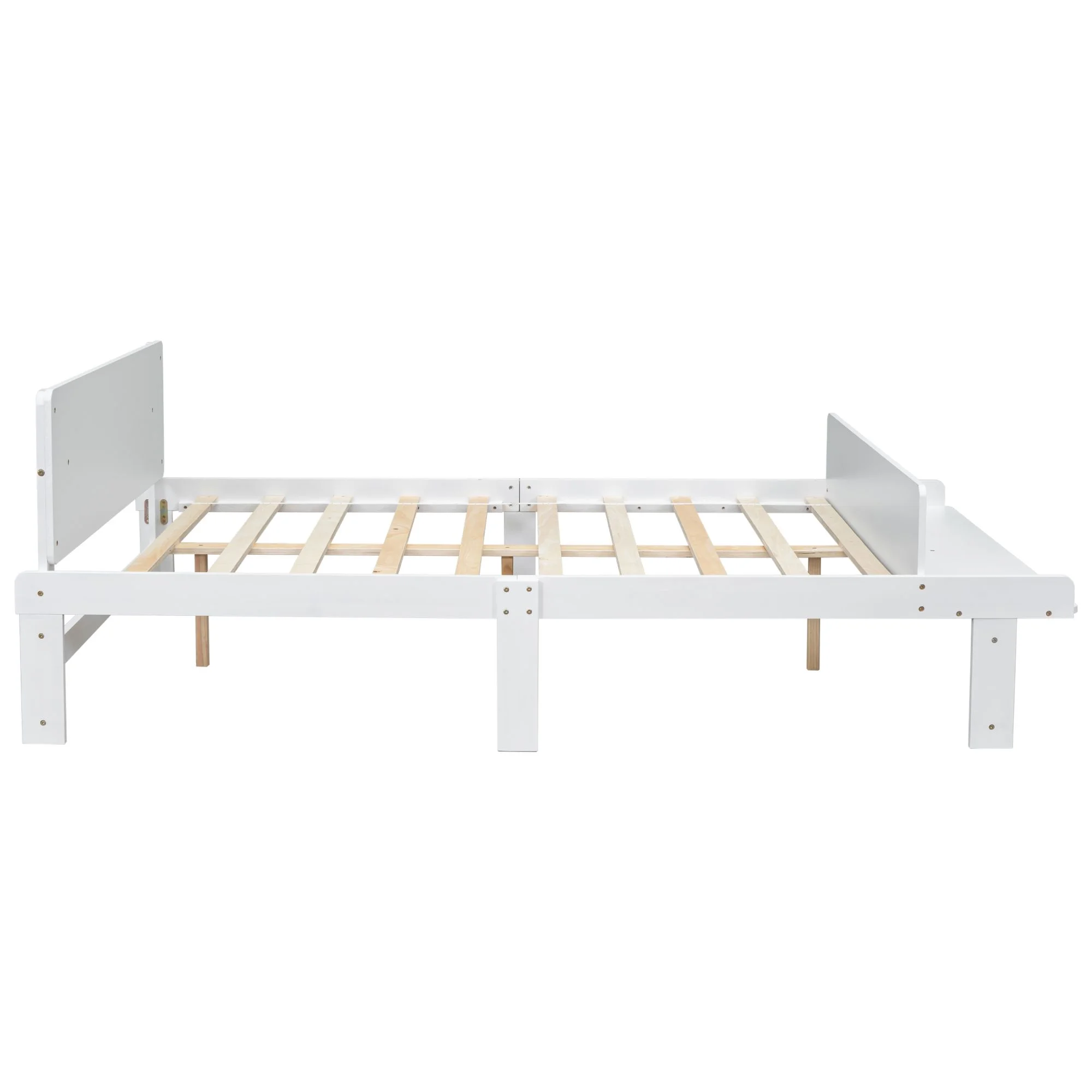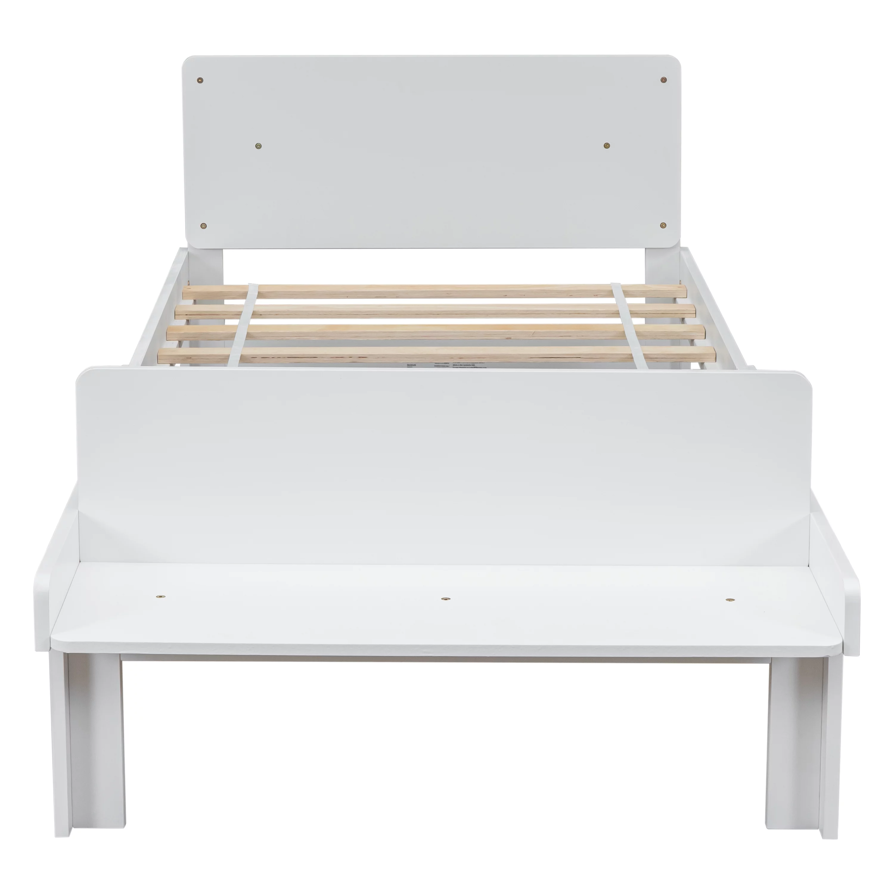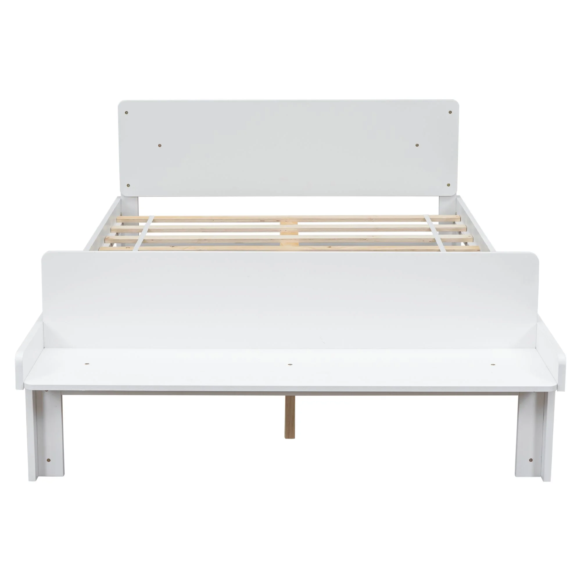 Gewnee Wood Twin Size Platform Bed with Headboard and Footboard Bench for Kids Room,White