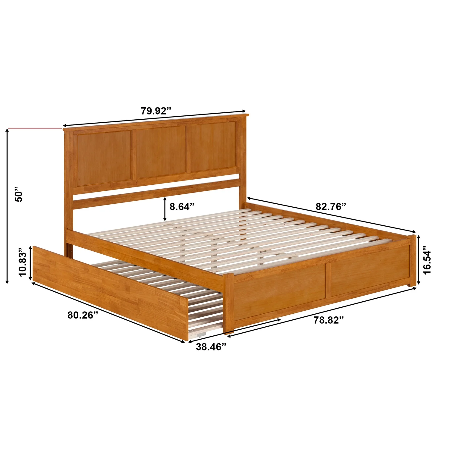 Madison King Wood Platform Bed with Footboard and TXL Trundle in Light Toffee