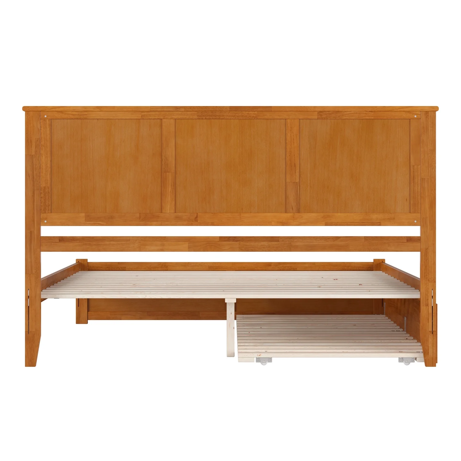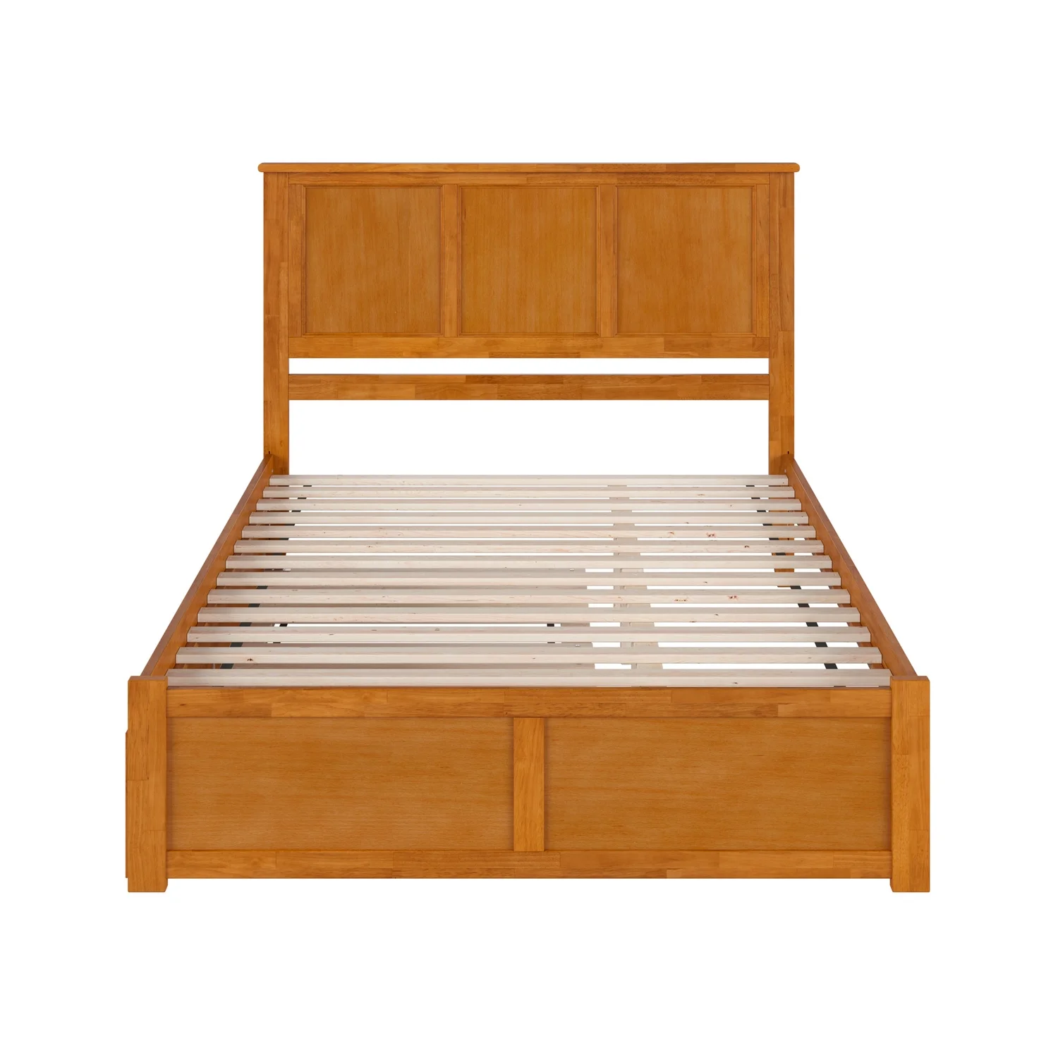 Madison Queen Wood Platform Bed with Footboard and TXL Trundle in Light Toffee
