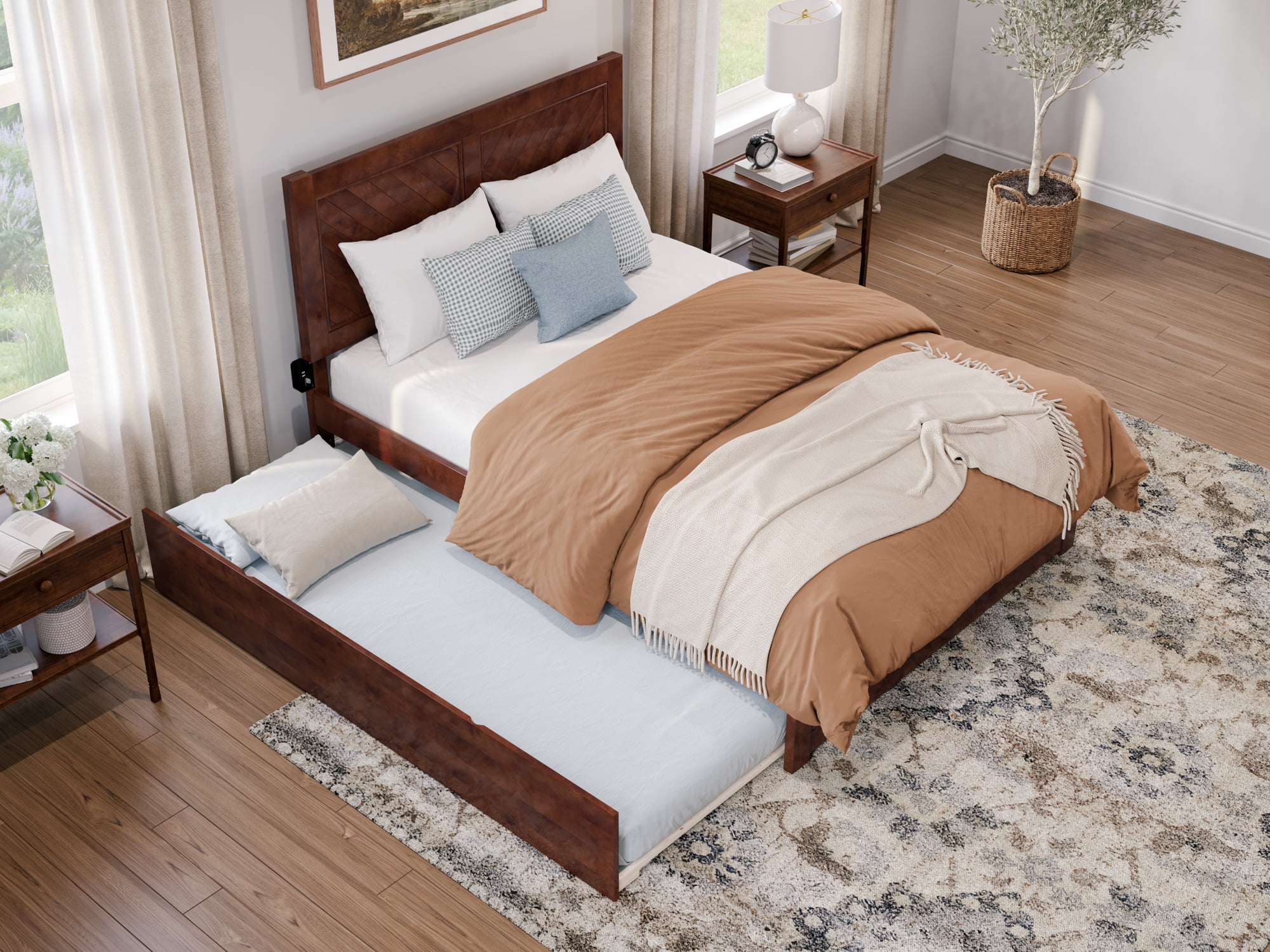 AFI Canyon Walnut Solid Wood Platform Bed with Matching Footboard & Twin Trundle, Full