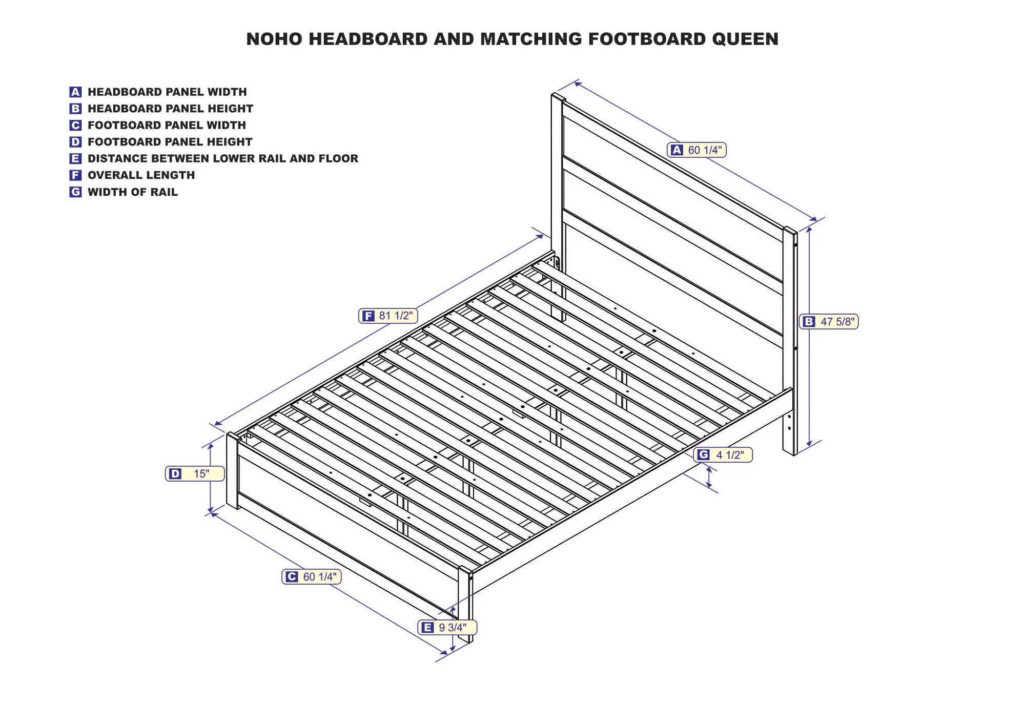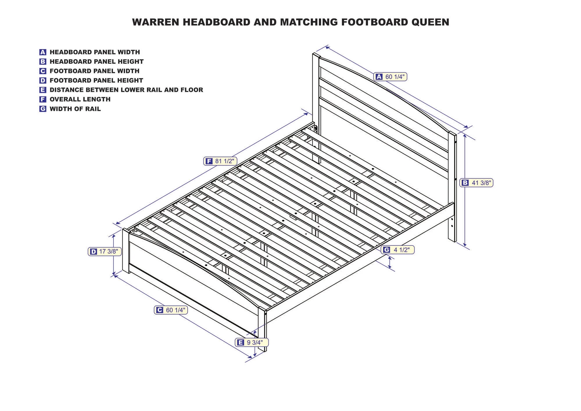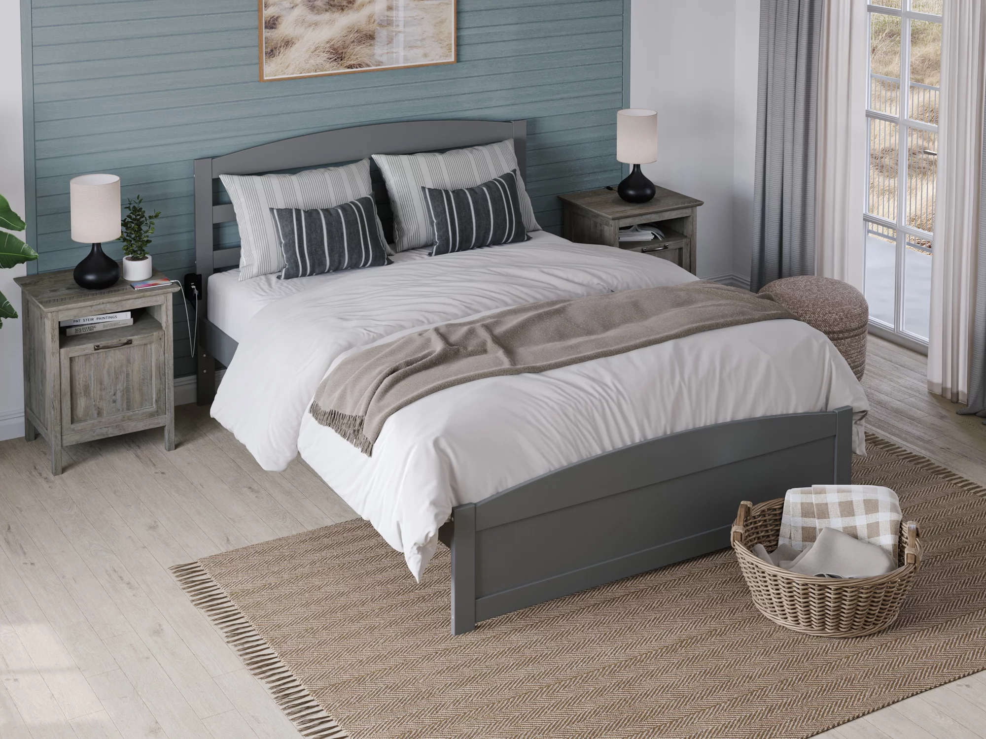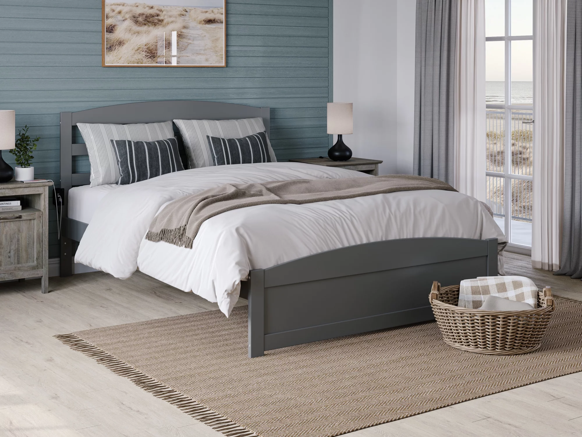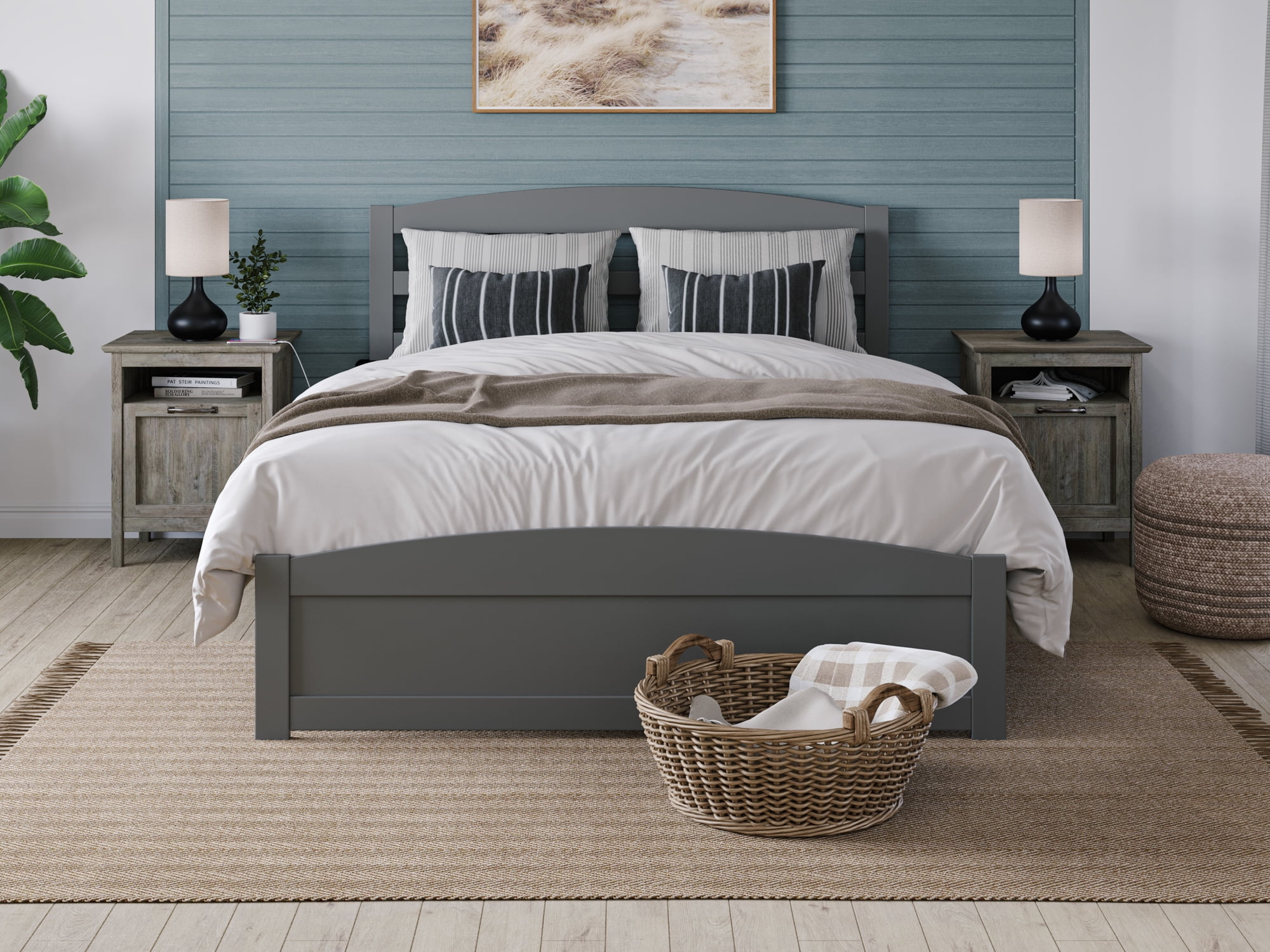 AFI Warren 14" Queen Wood Platform Bed Frame with Headboard and Footboard, Grey