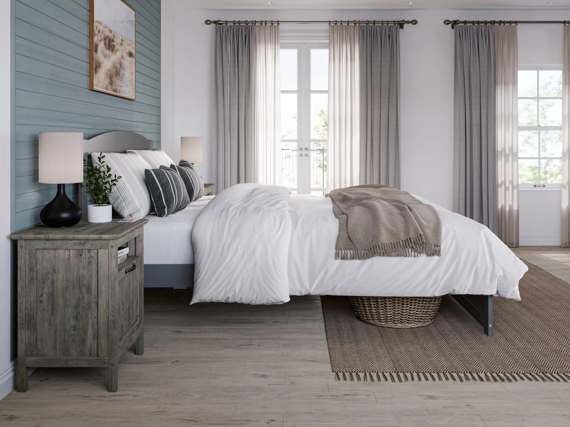 AFI NoHo 14" Queen Wood Platform Bed with Modern Panel Headboard and Footboard, Grey