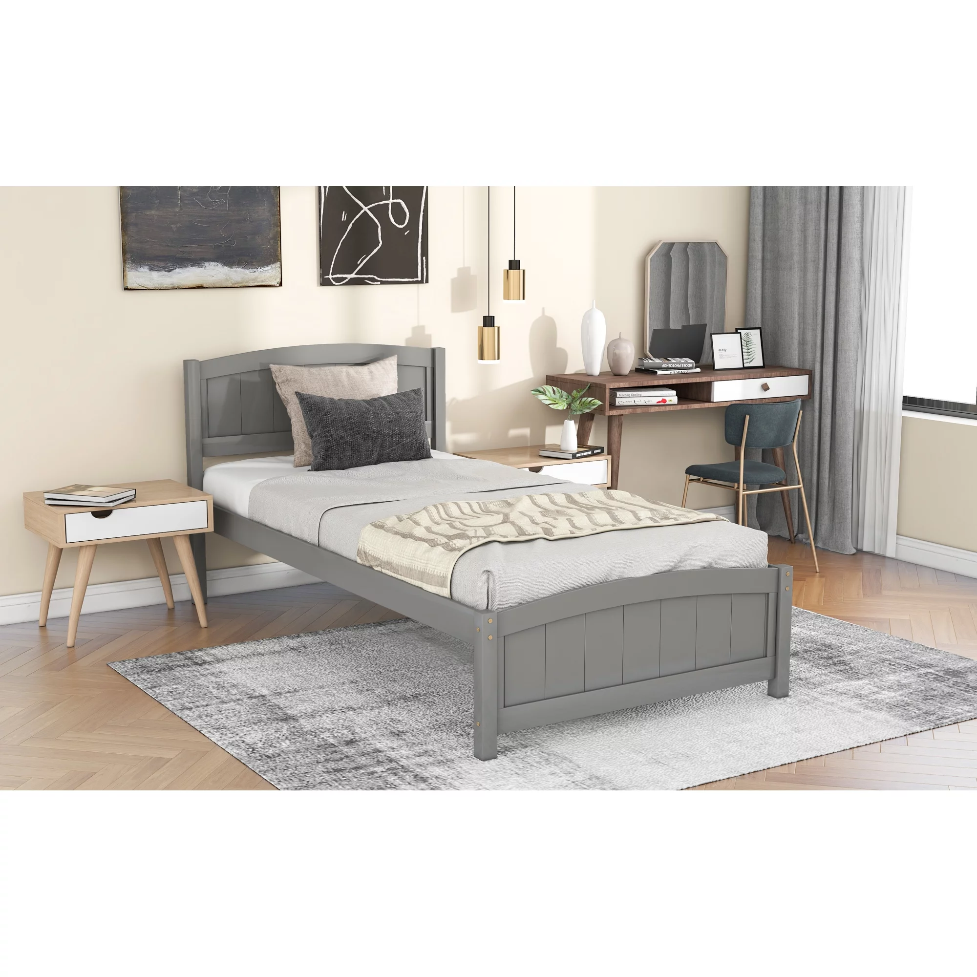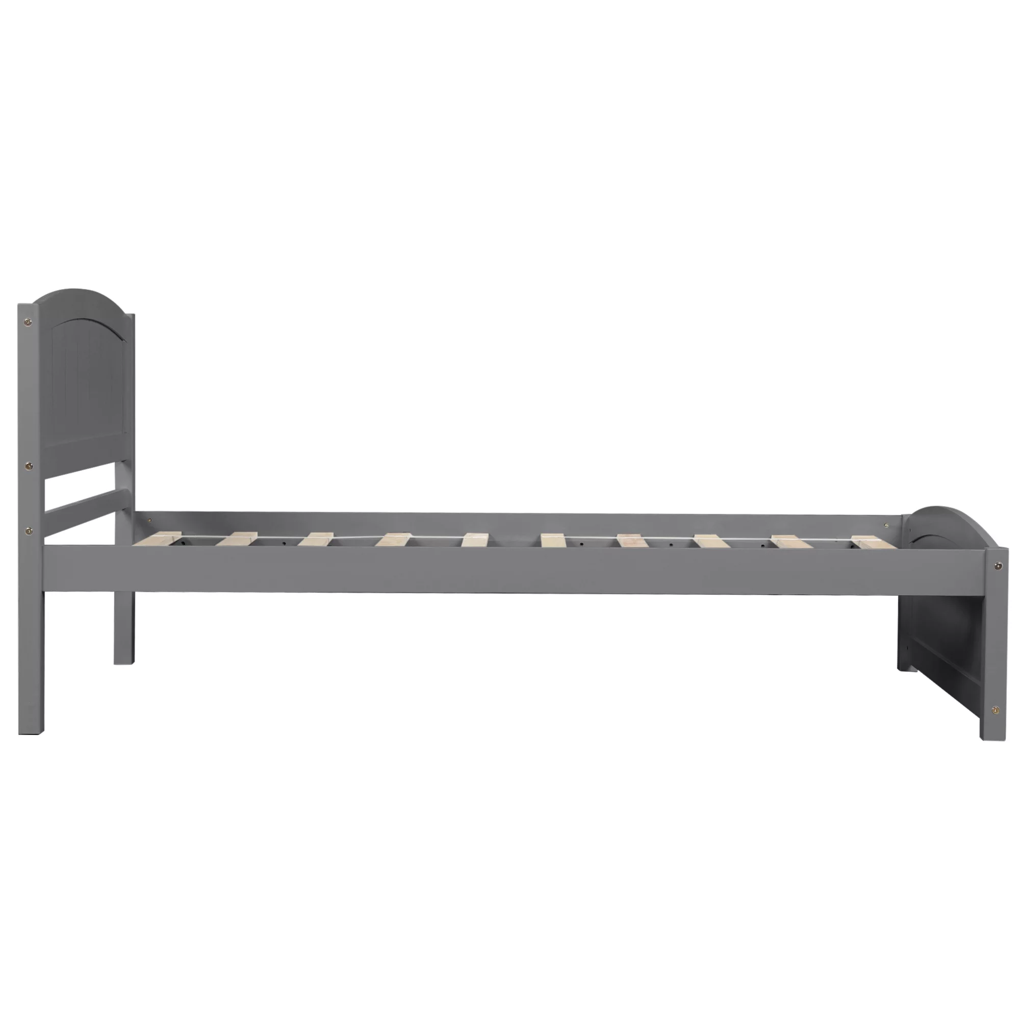 Wood Platform Bed with Headboard,Footboard and Wood Slat Support, Gray