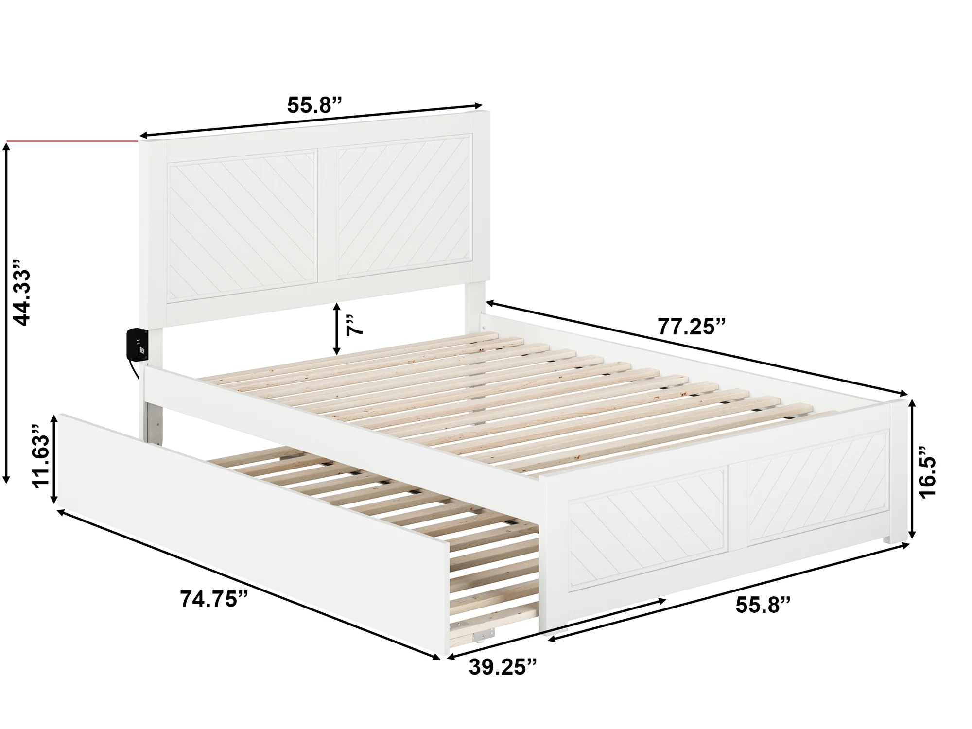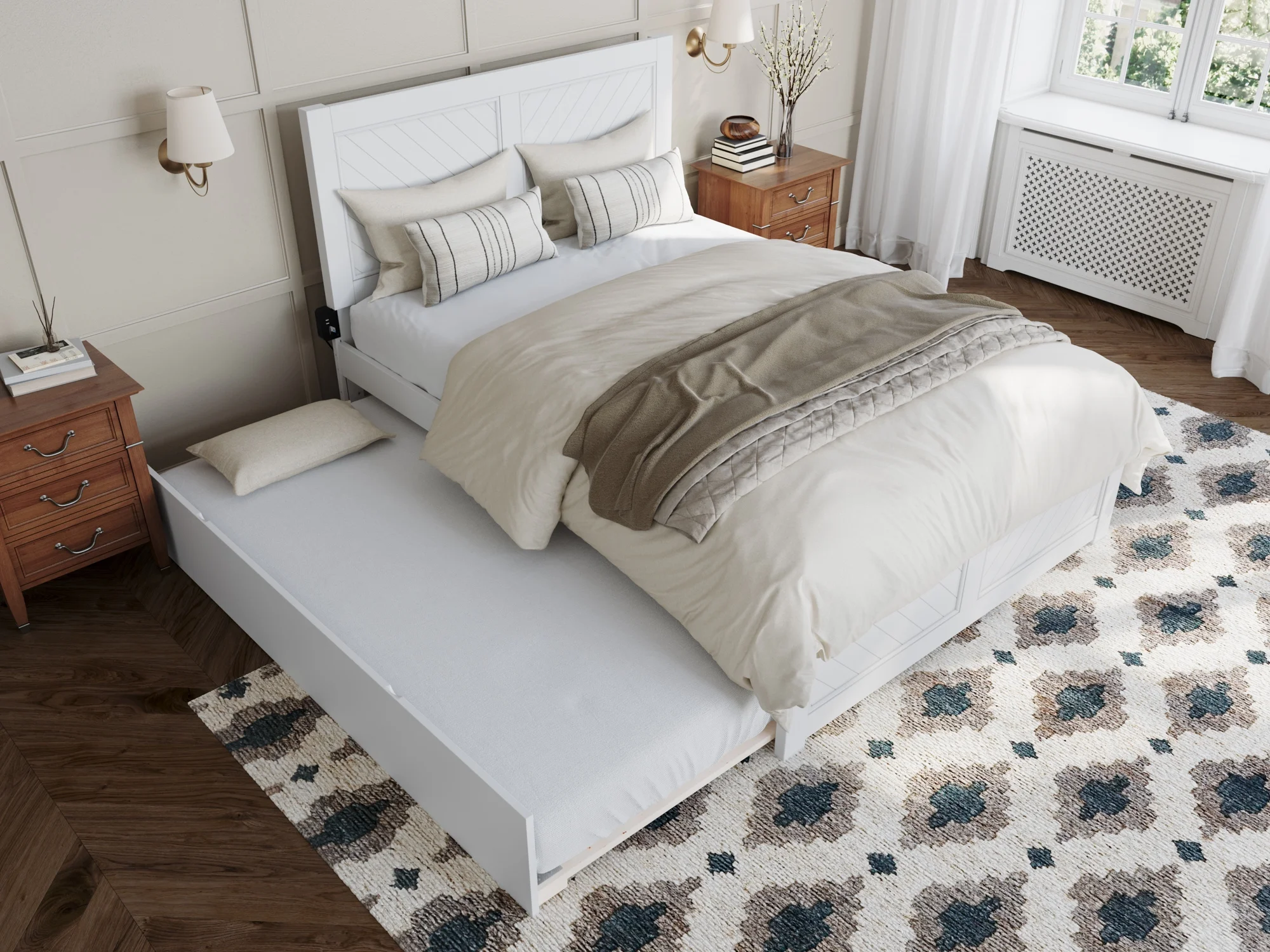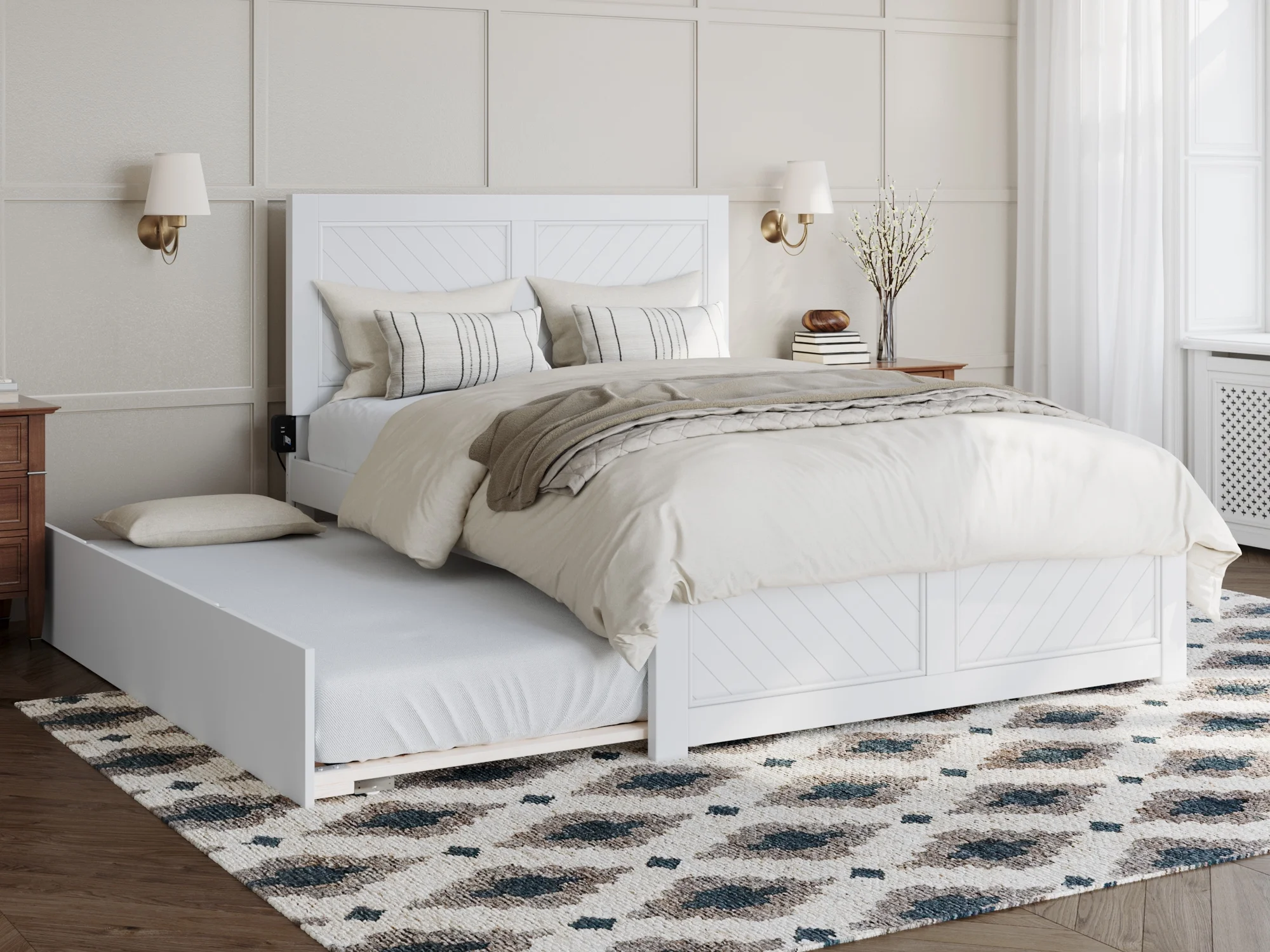 AFI Canyon White Solid Wood Platform Bed with Matching Footboard & Twin Trundle, Full