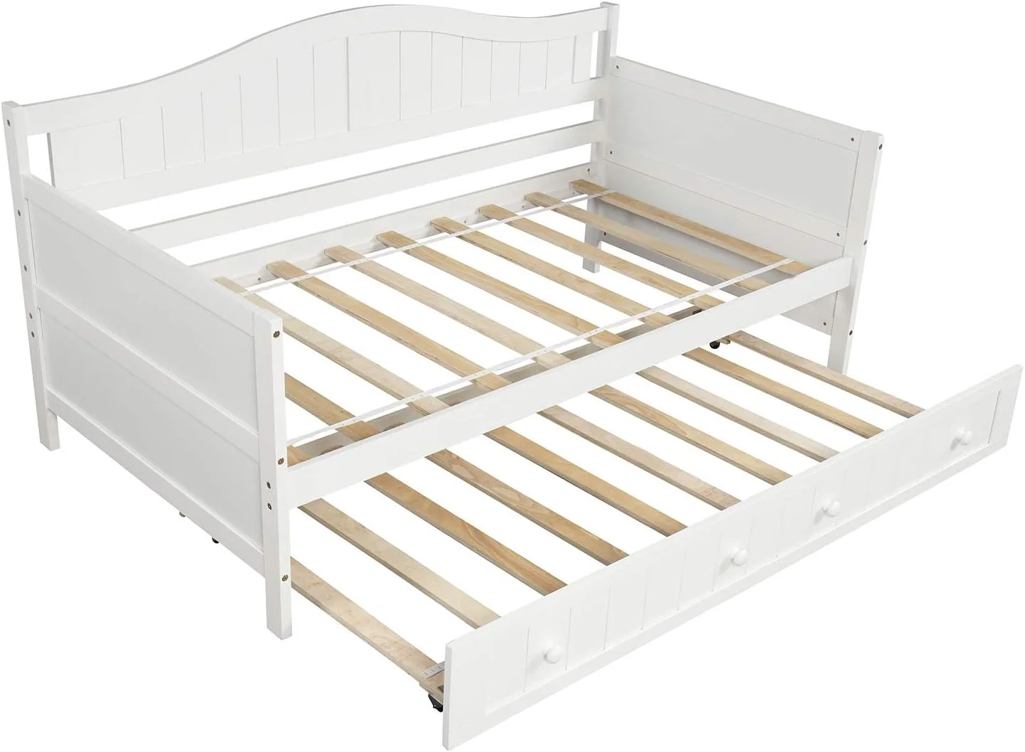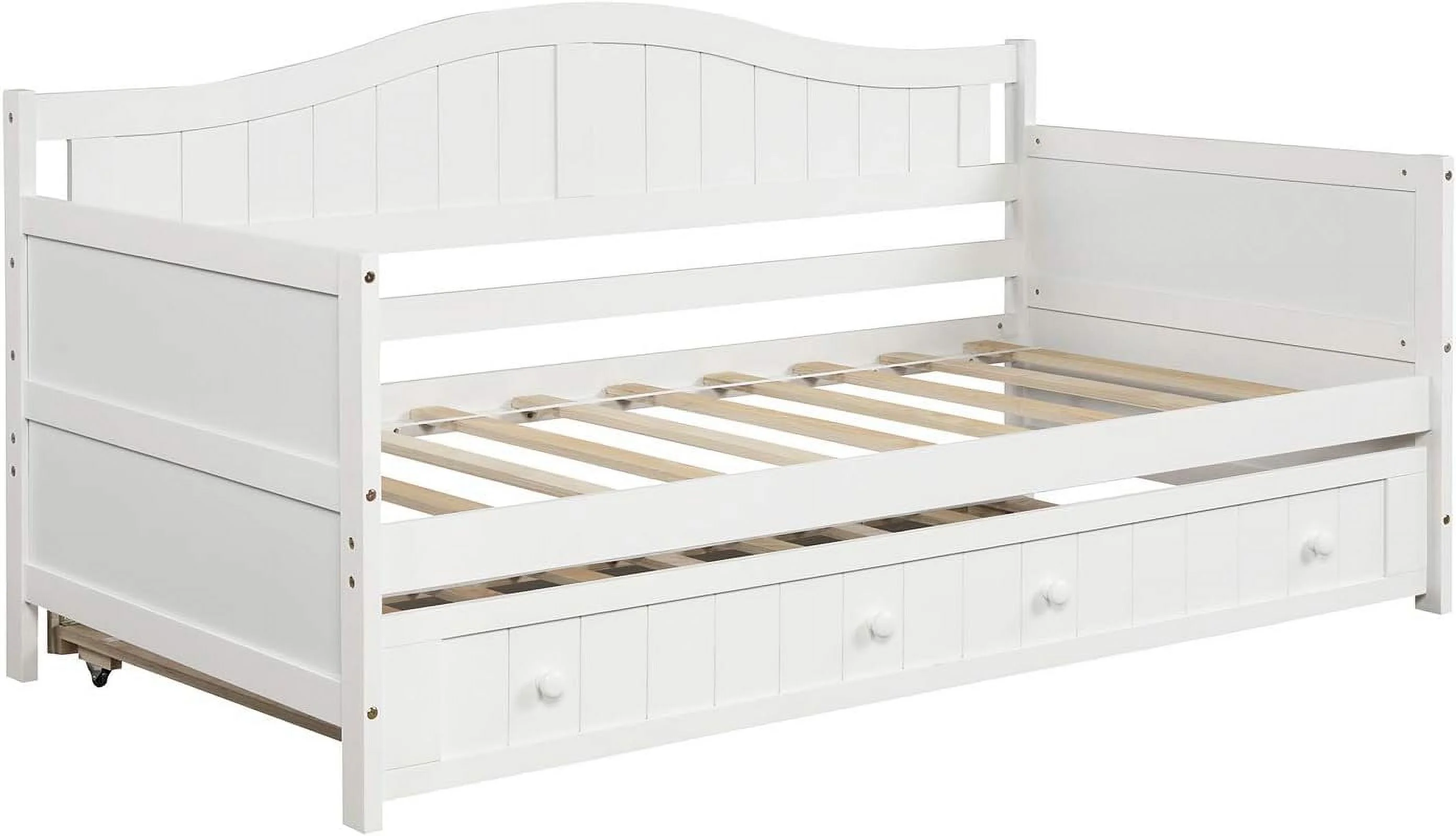 Daybed With Trundle Bed, Wood Bed Sofa Bed Frame For Bedroom, Guest Room, Living Room (, White)