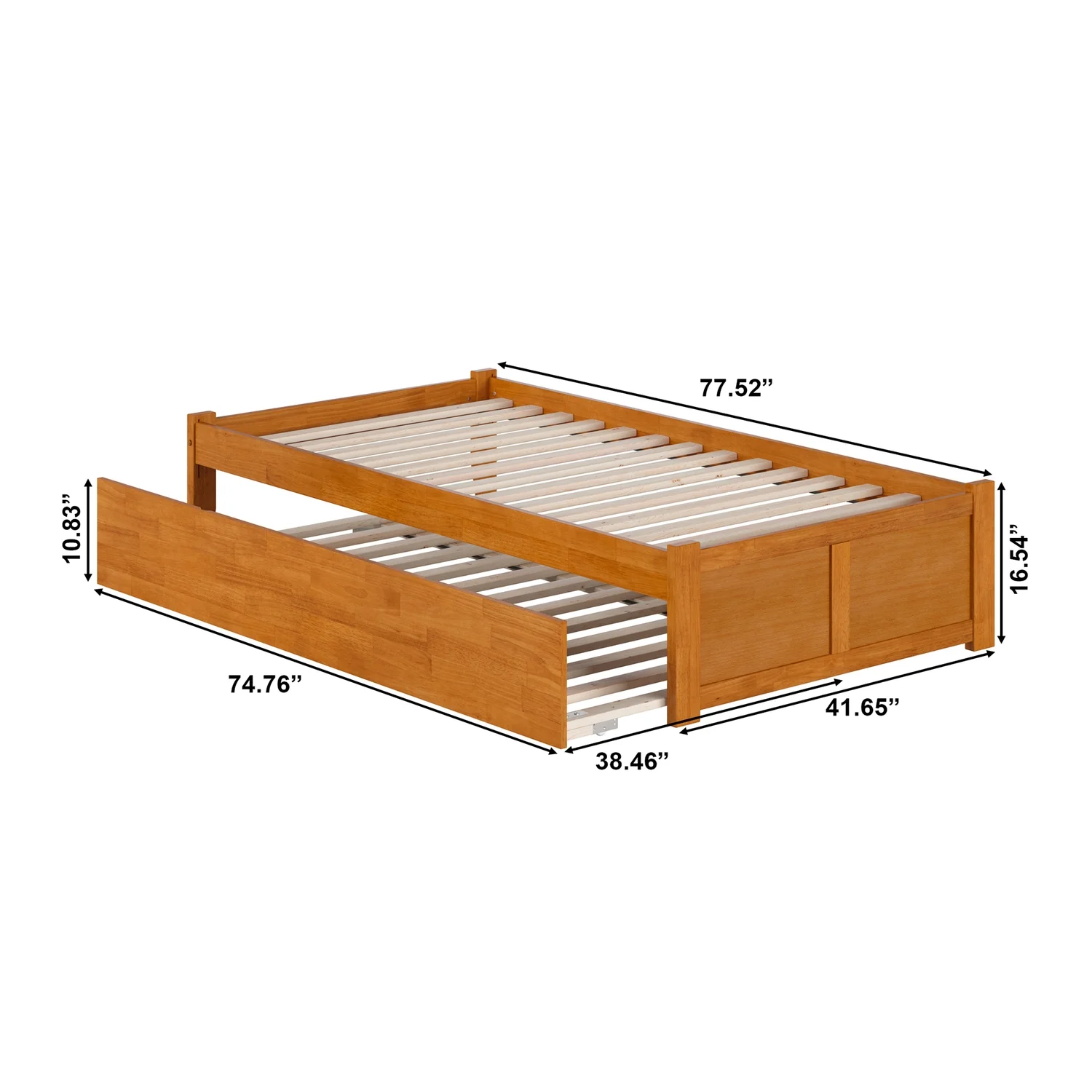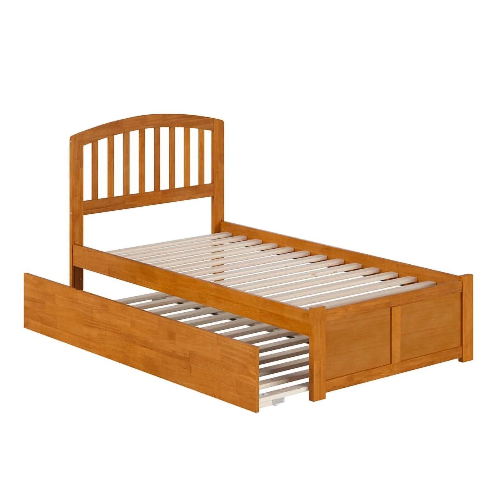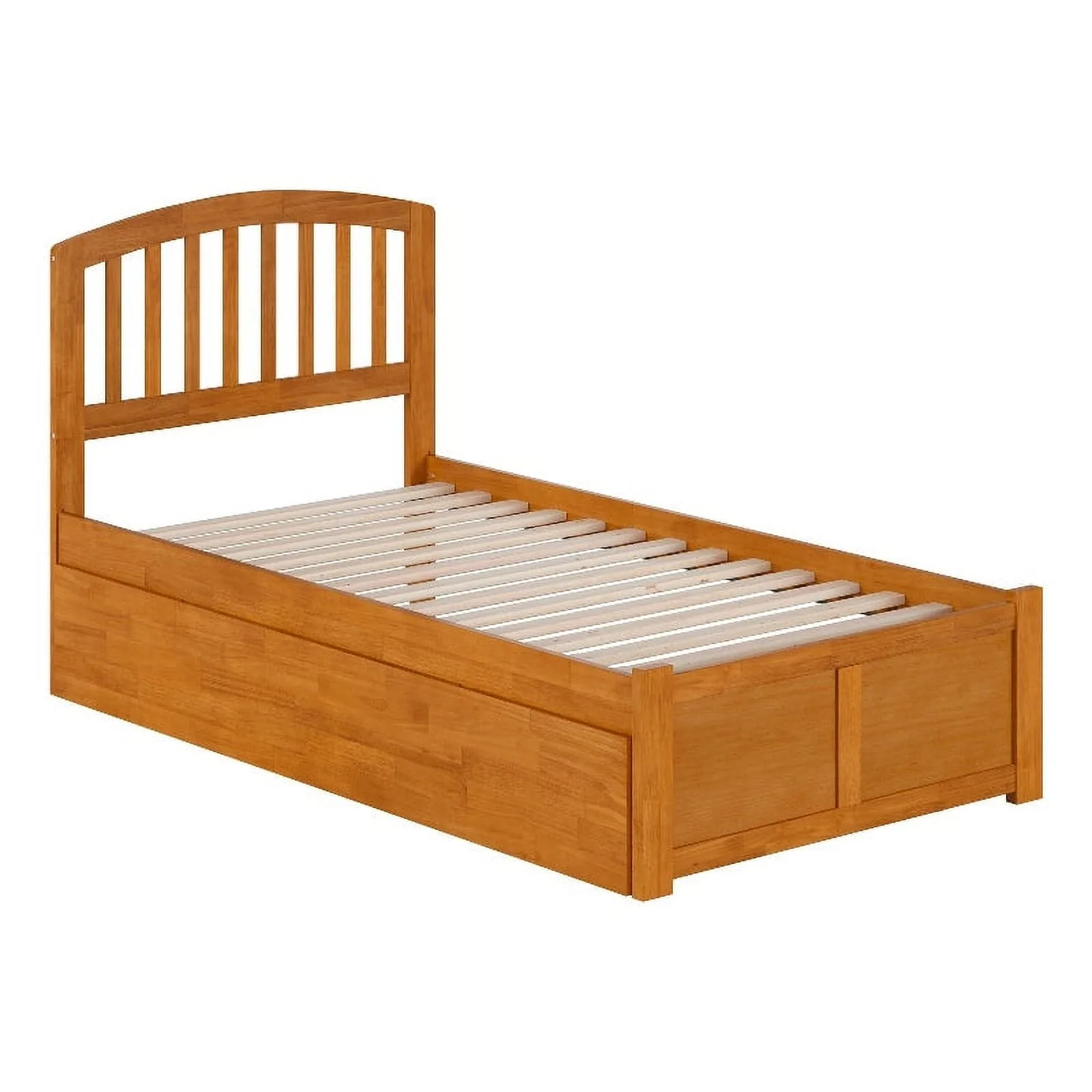 Concord Twin Wood Platform Bed with Footboard and Twin Trundle in Light Toffee