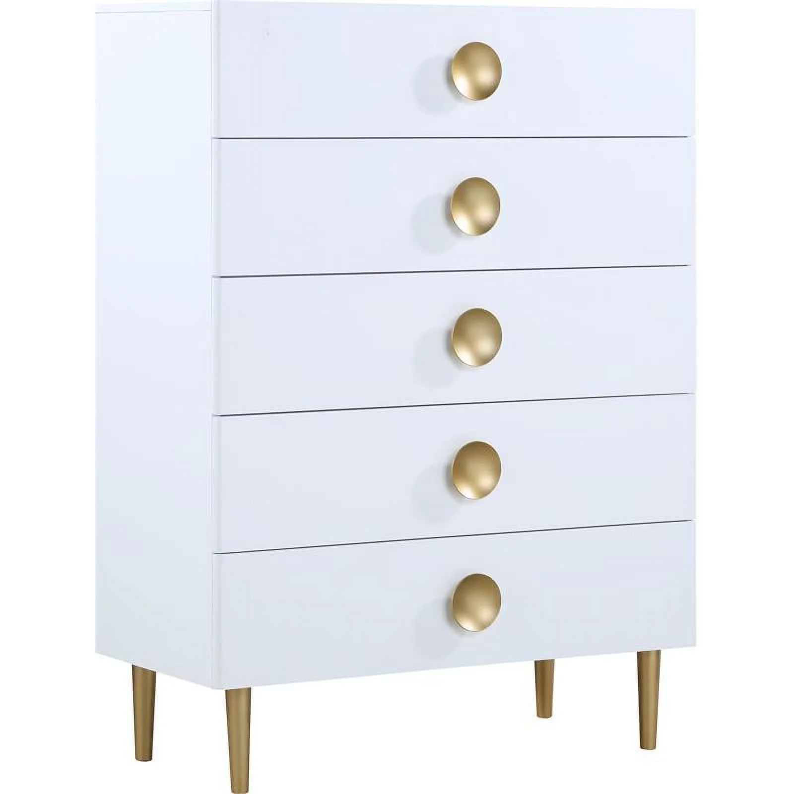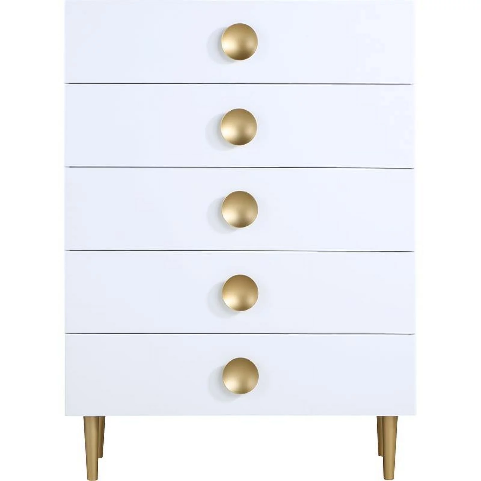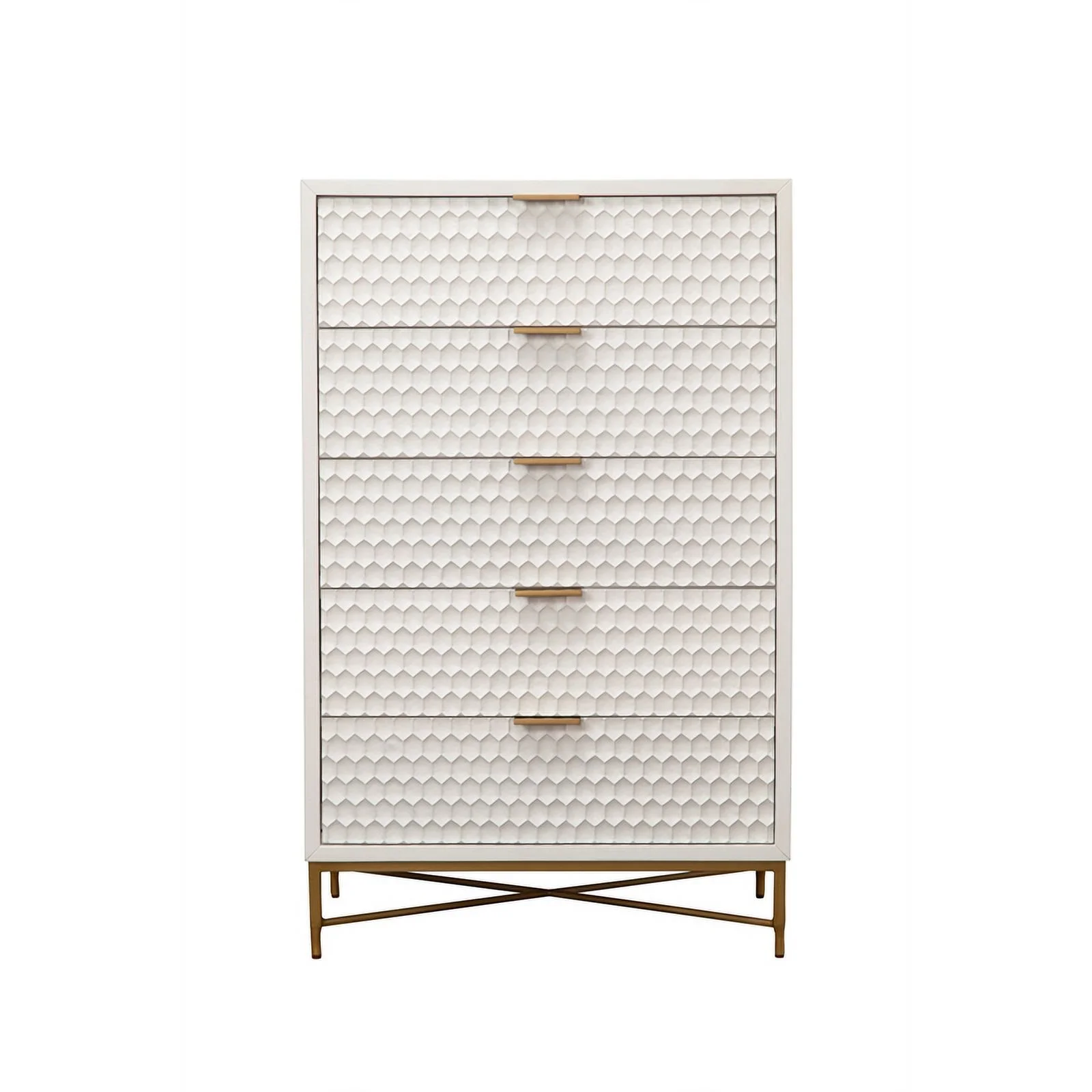 Maklaine 5 Drawers Contemporary Metal Chest in Rich White/Brushed Gold