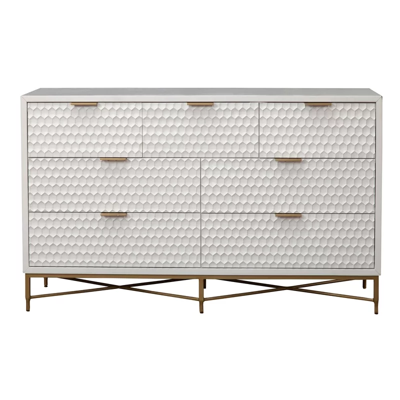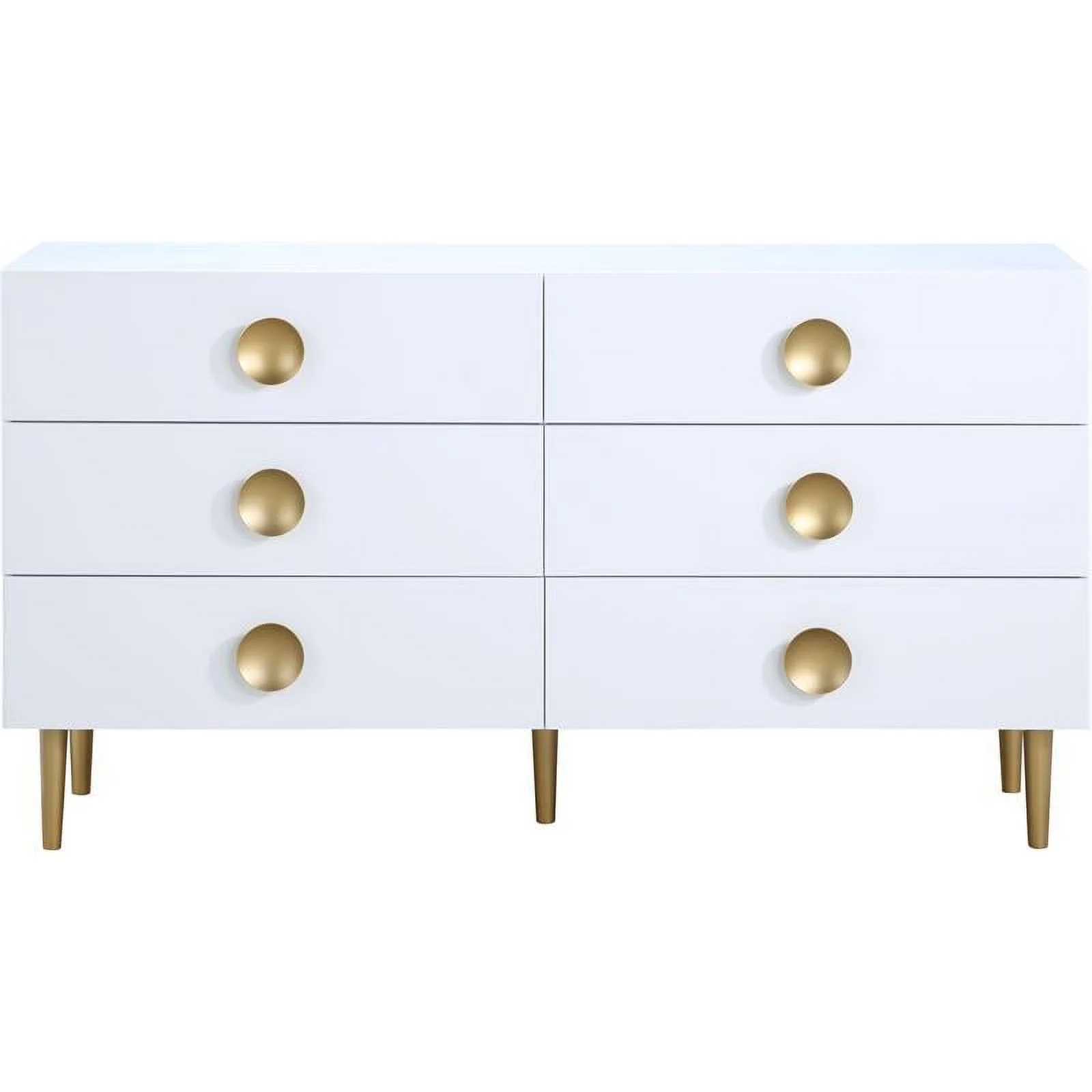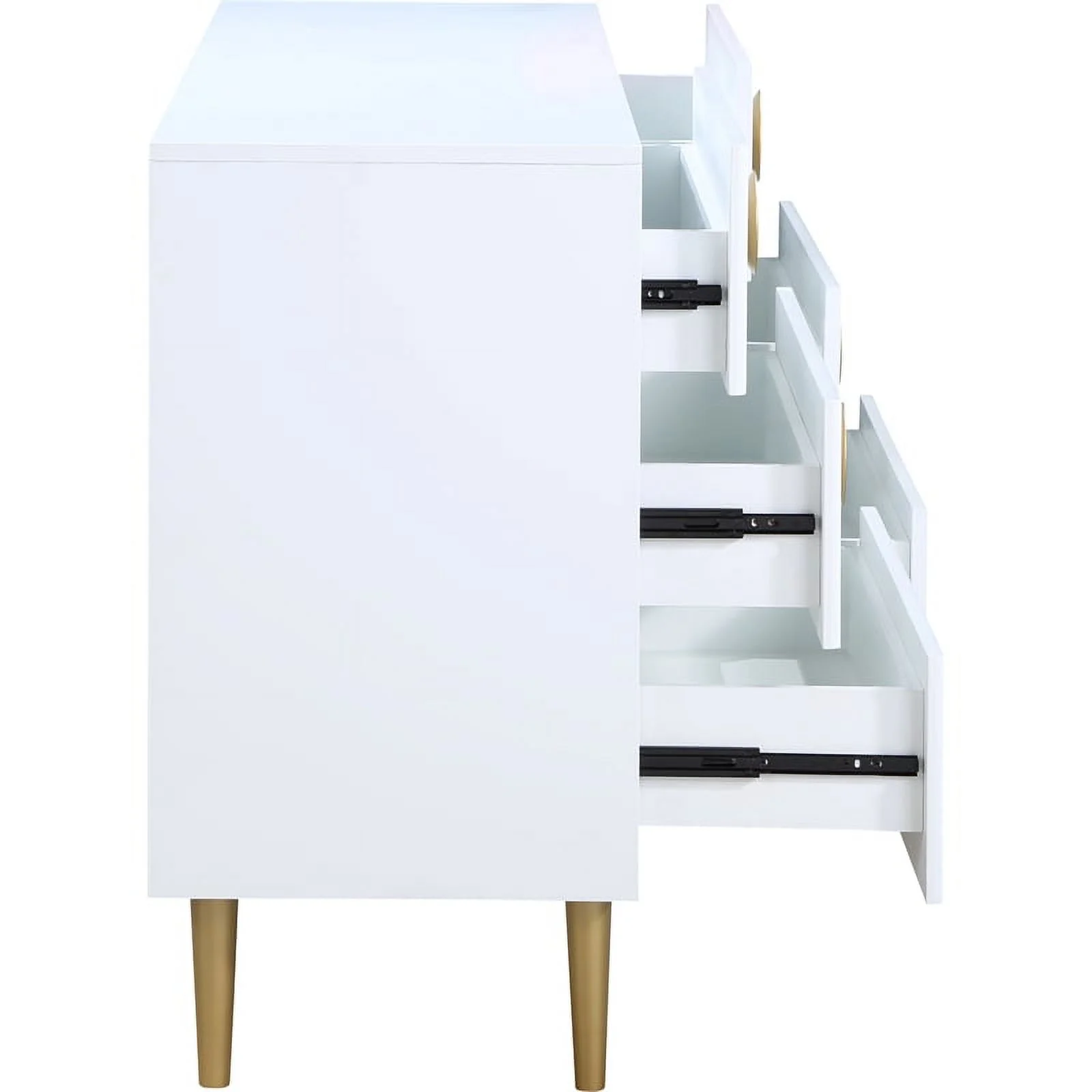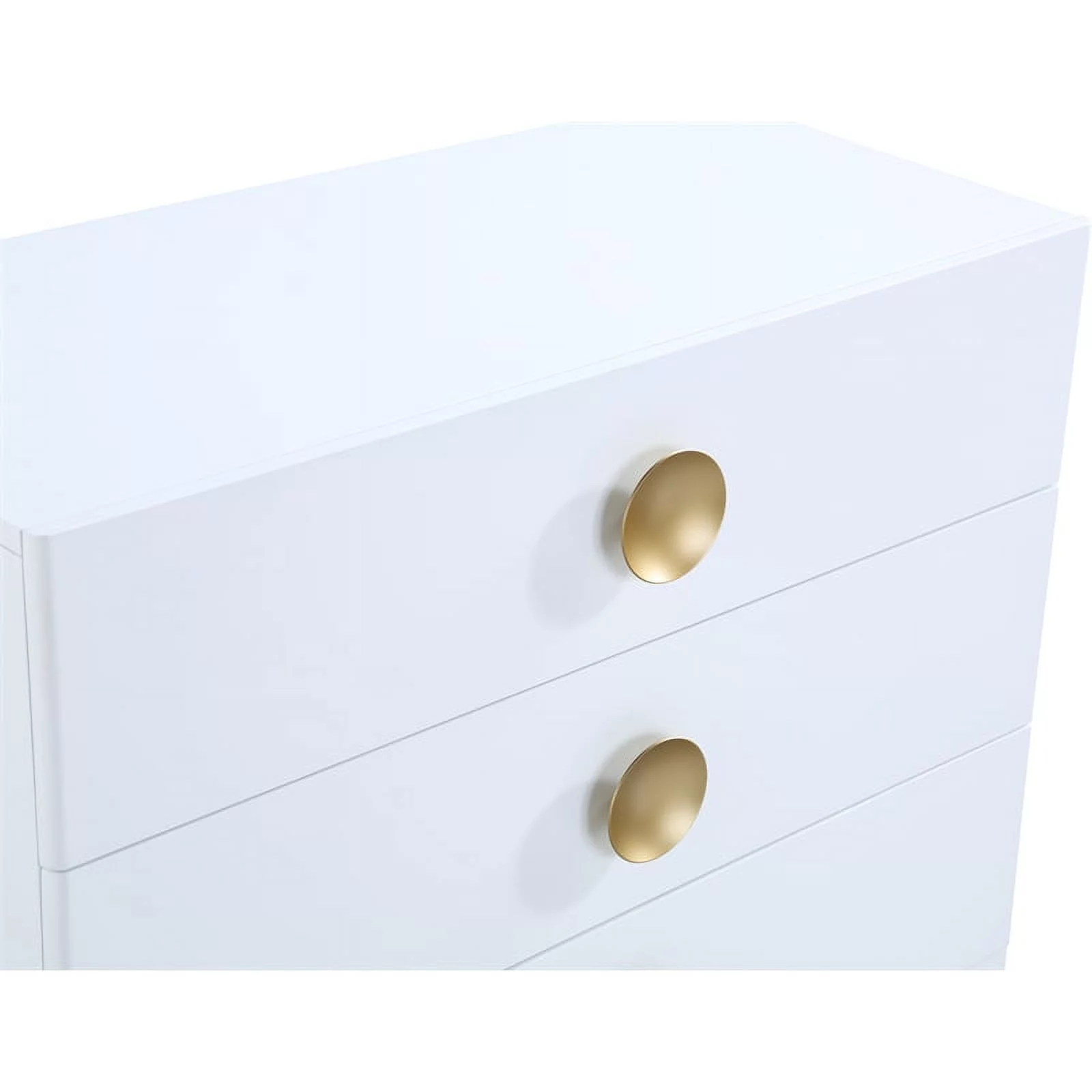 Maklaine 5 Drawers Contemporary Metal Chest in Rich White/Brushed Gold