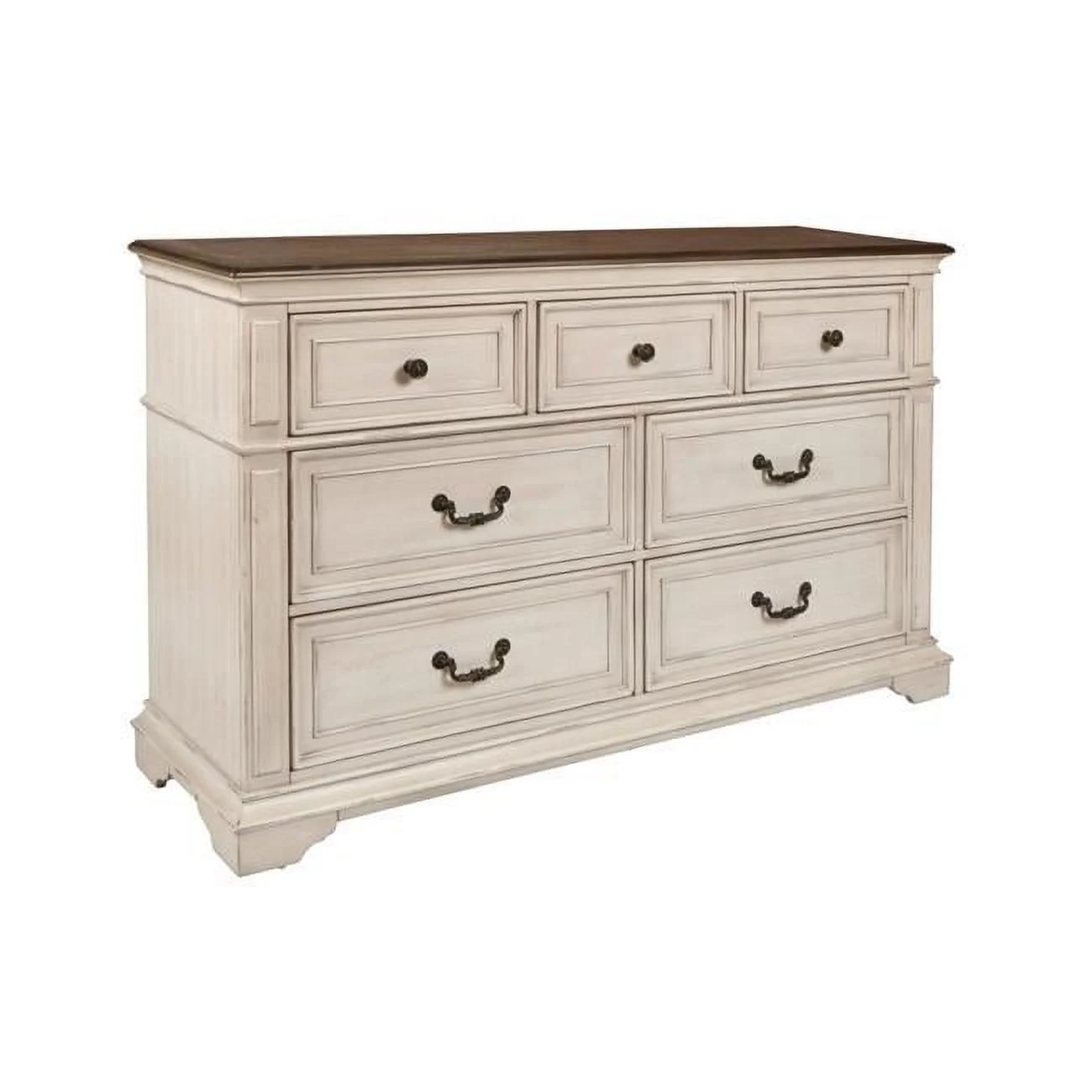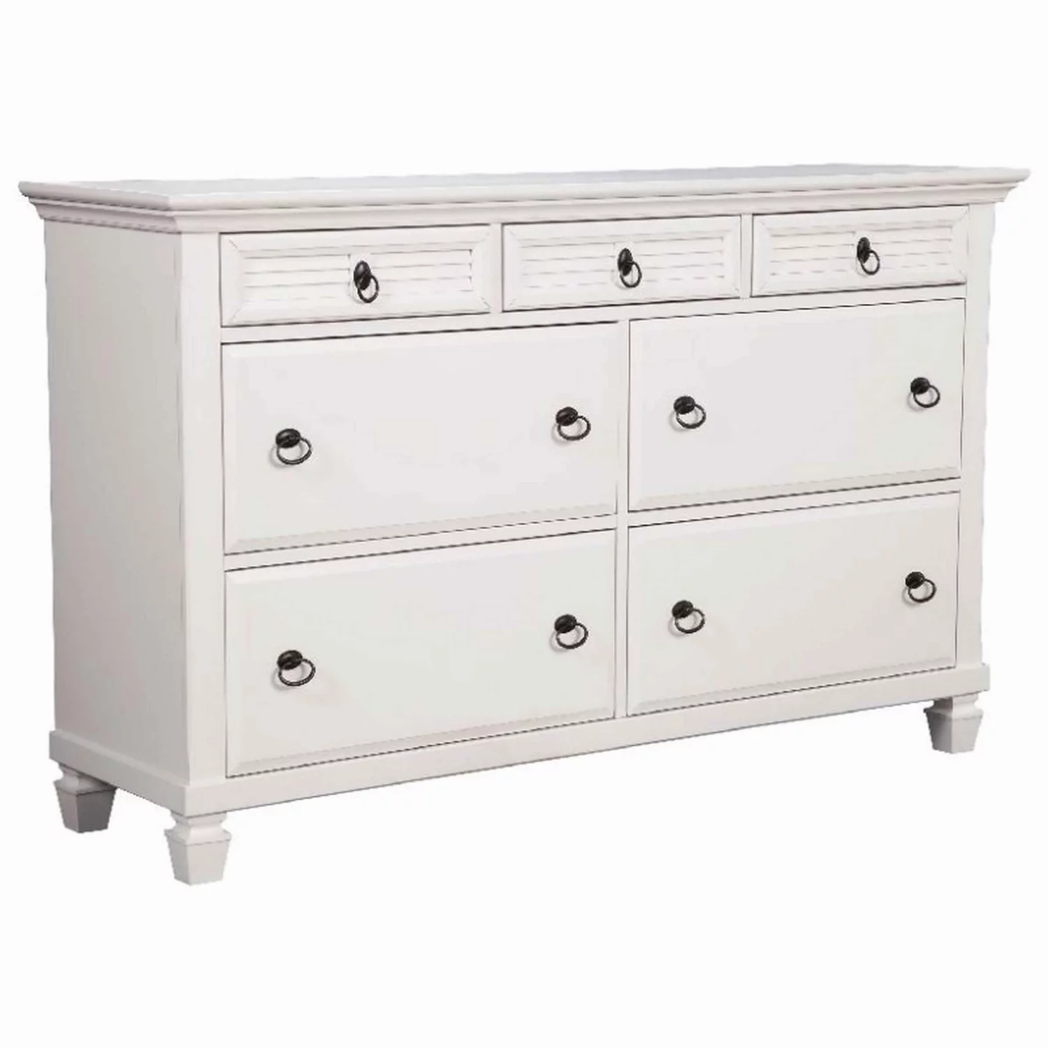 Benjara 7 Drawer Wooden Dresser with Ring Pulls and Molded Top, White