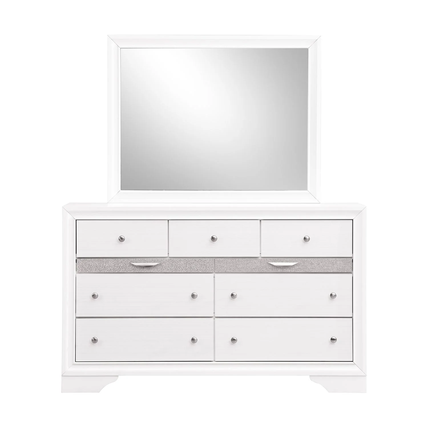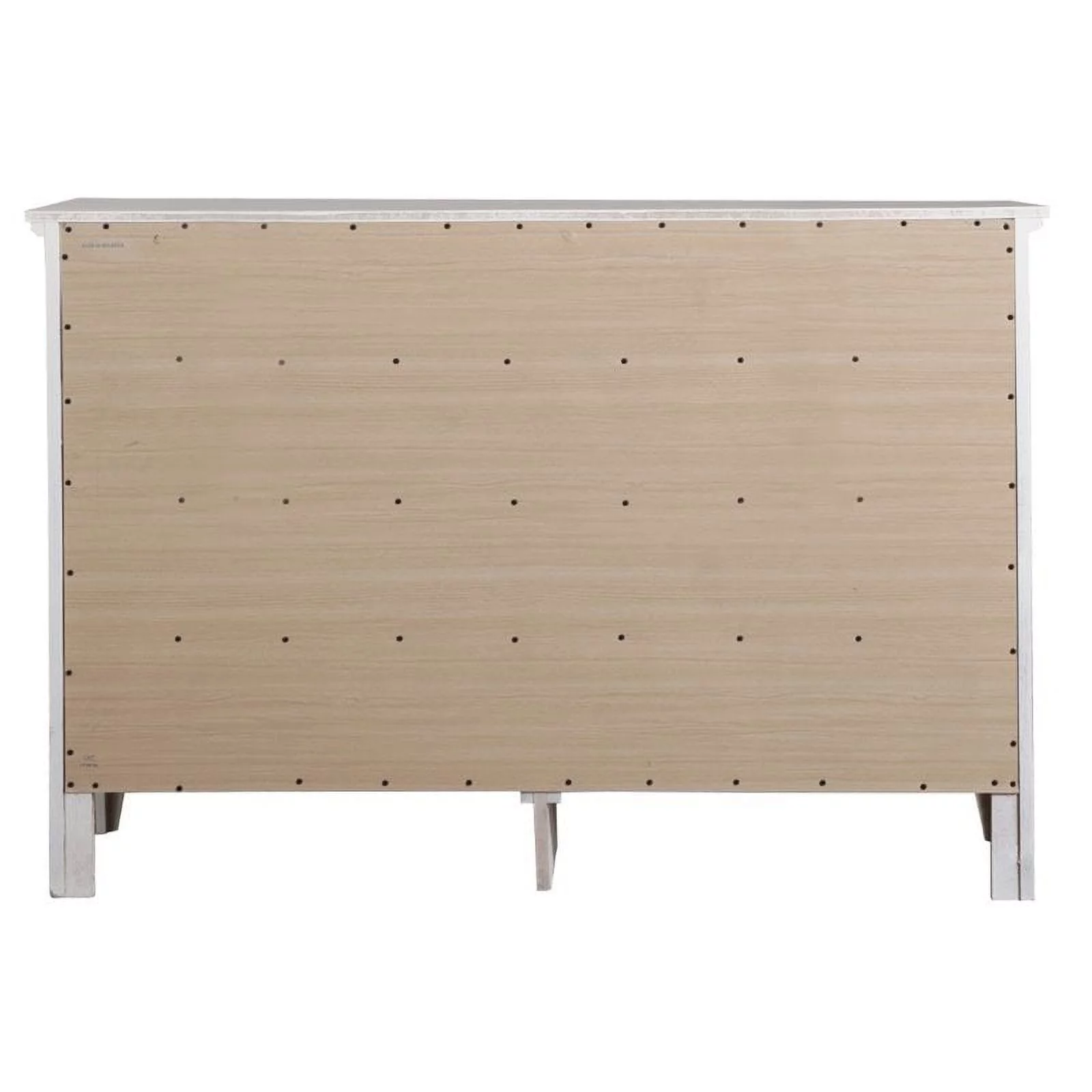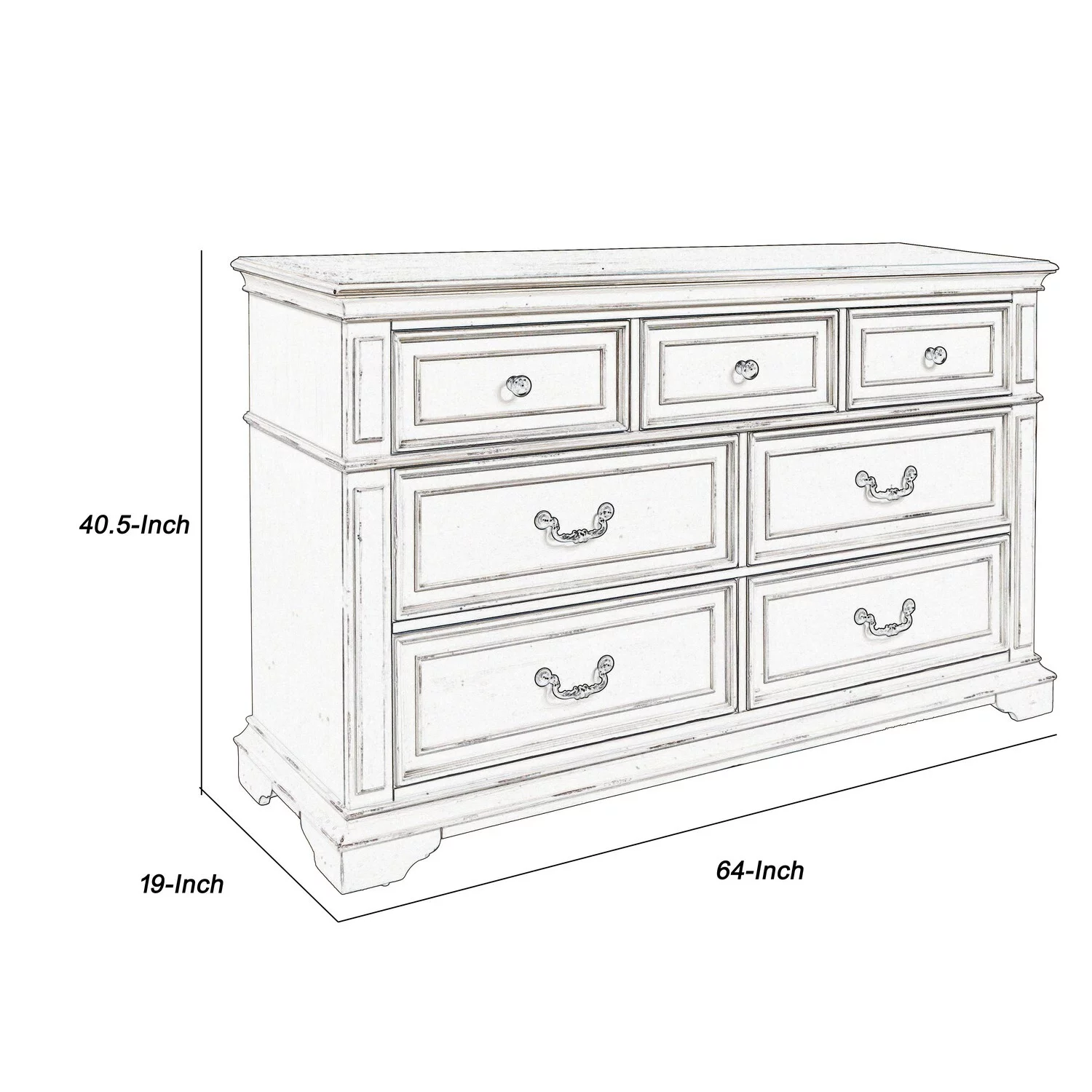 Benjara BM218013 7 Drawer Wooden Dresser with Metal Handles & Molded Details, White