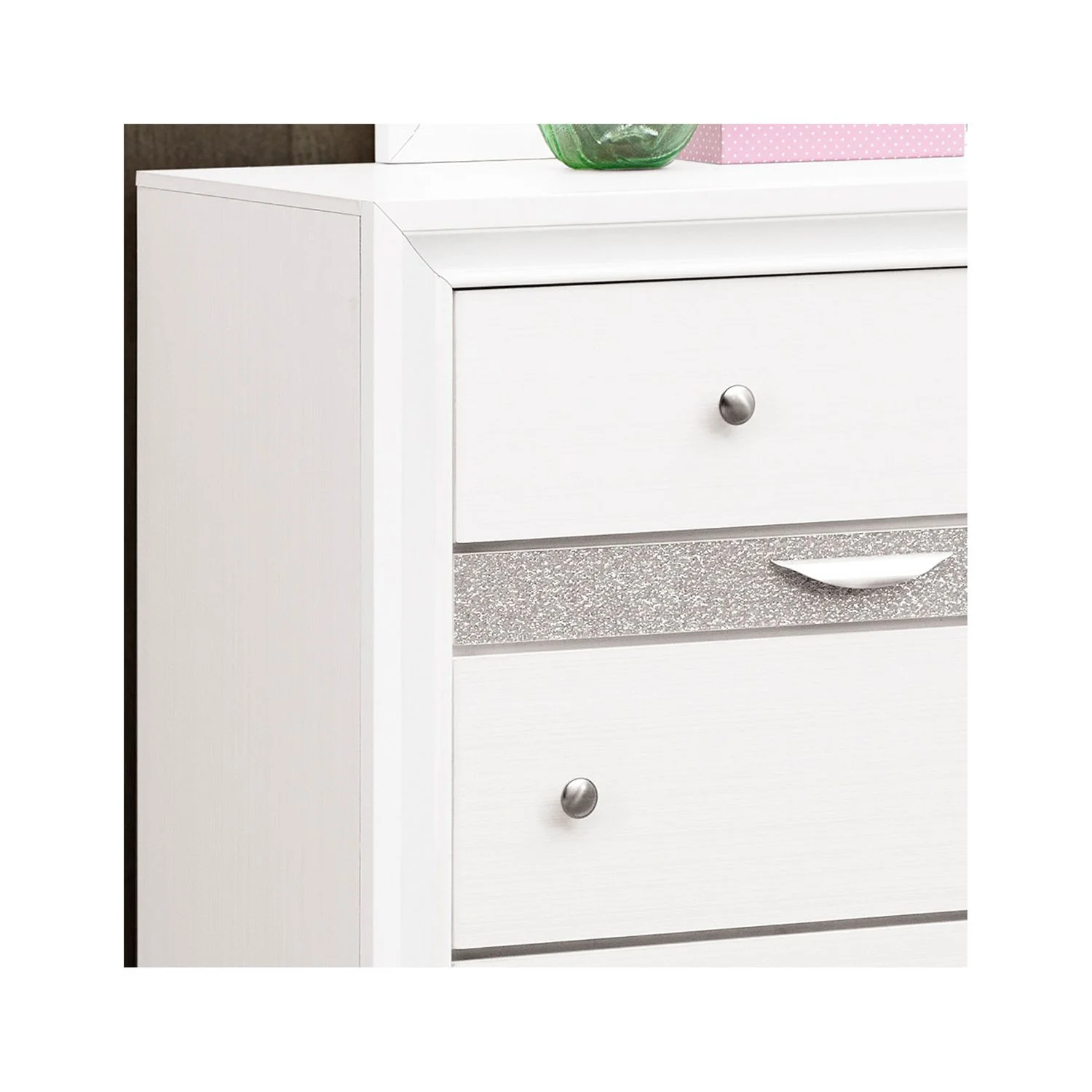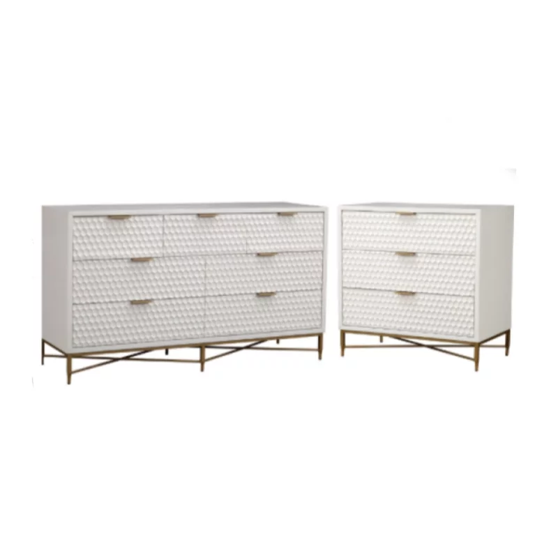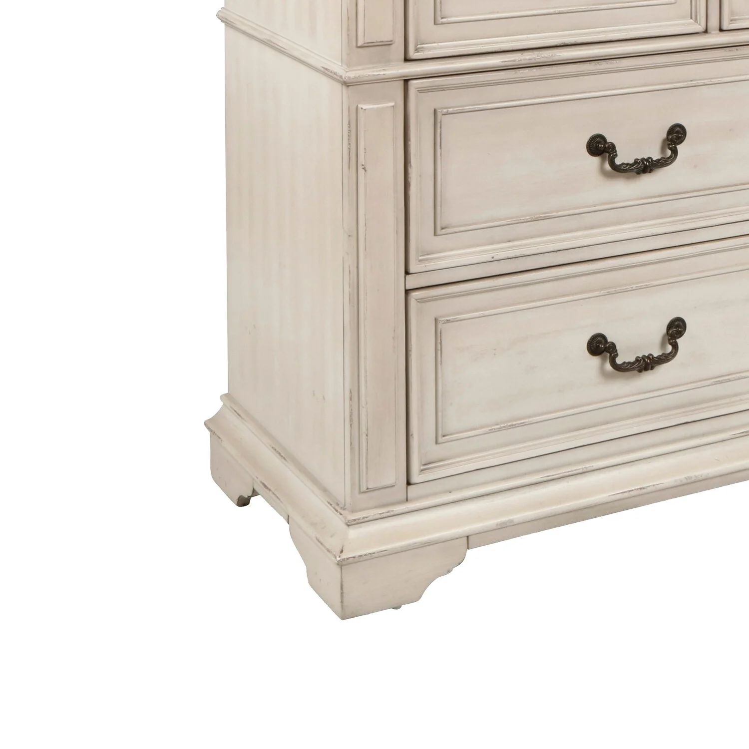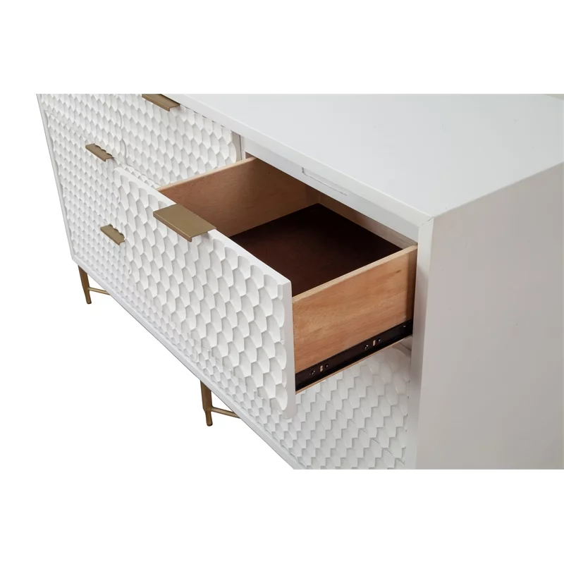 Benjara BM218013 7 Drawer Wooden Dresser with Metal Handles & Molded Details, White