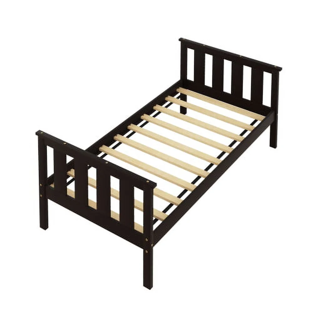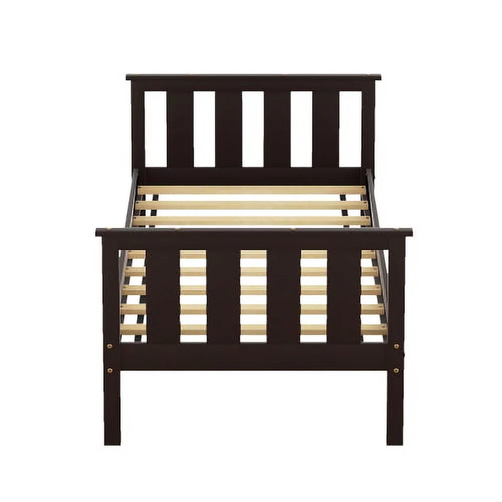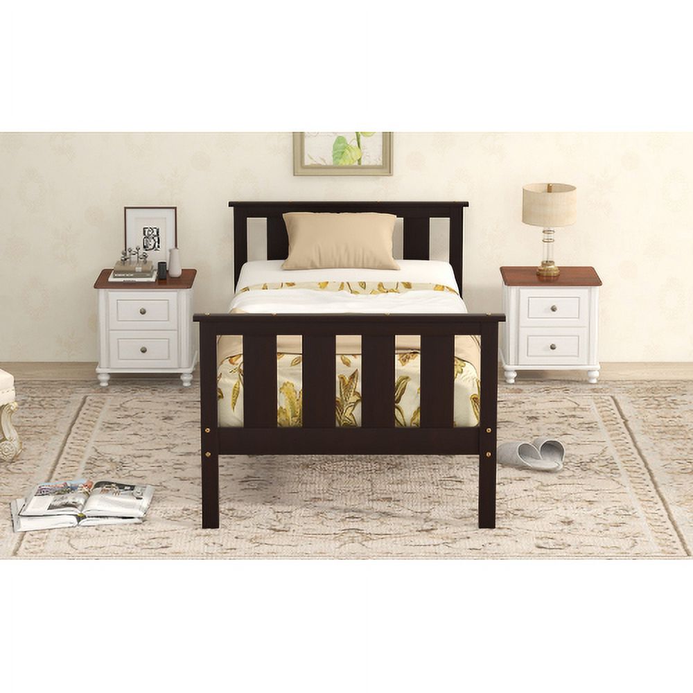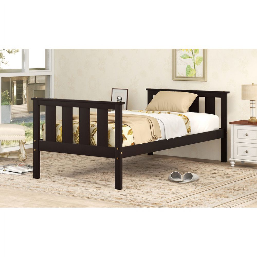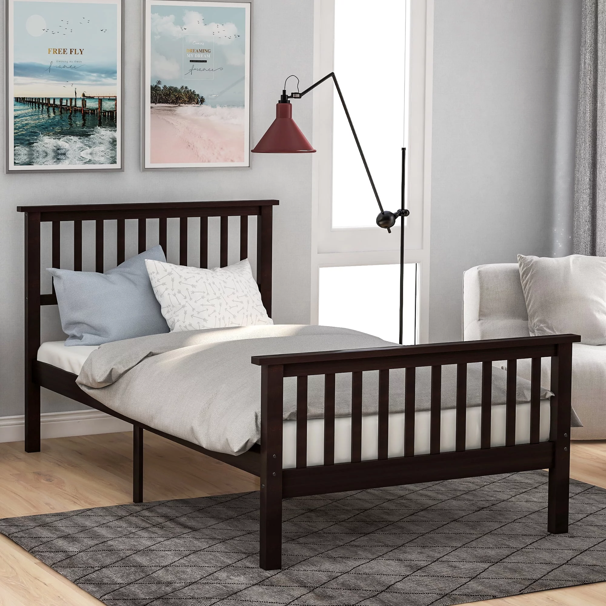 Anself Wood Platform Bed Twin Bed with Headboard and Footboard (Espresso)