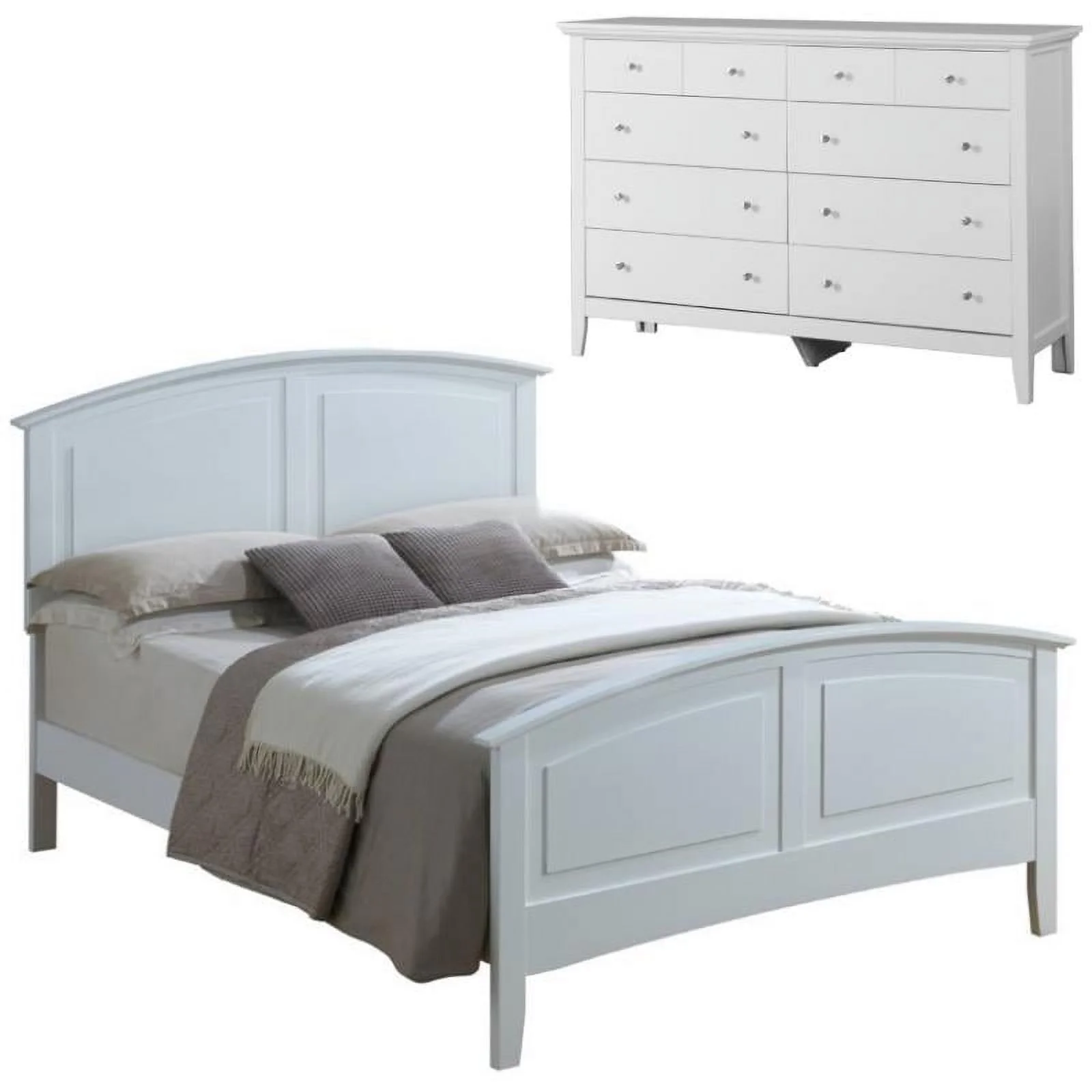 Home Square 2-Piece Set with Queen Panel Bed and 8-Drawer Dresser in White