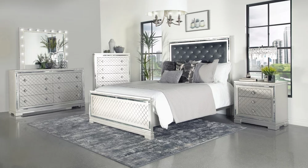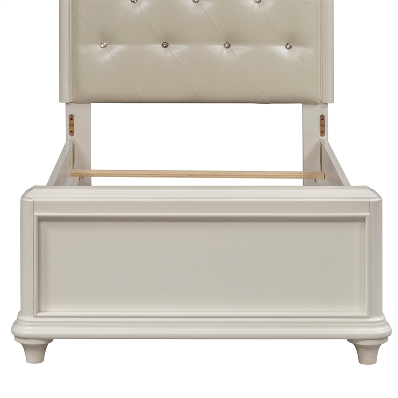 Pemberly Row Contemporary Metal Twin Panel Bed Dresser & Mirror in White