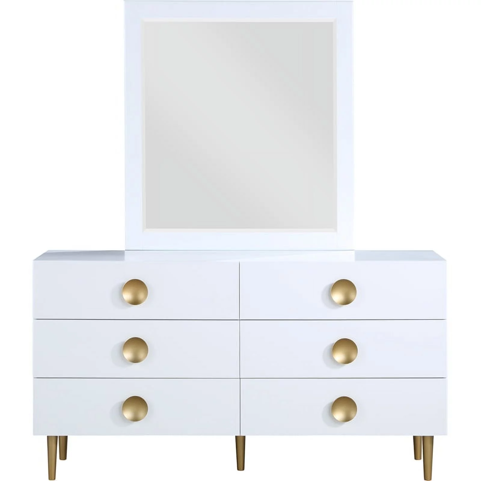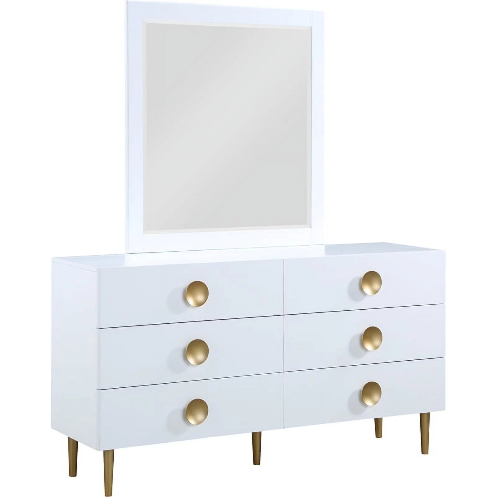 Picket House Furnishings Charlotte 6-Drawer Wood Dresser with Mirror in White
