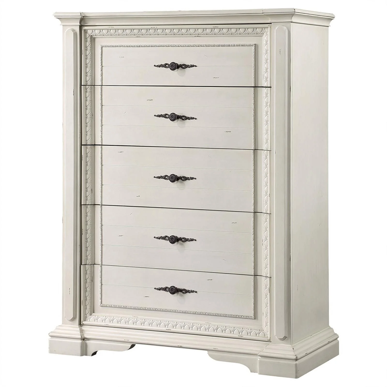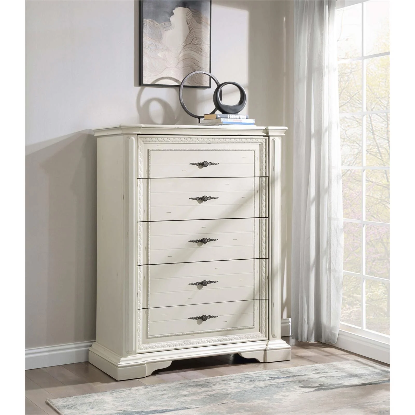 Benjara Jess 55 Inch Classic Tall Dresser Chest, 5 Drawers, Drop Handles, White
