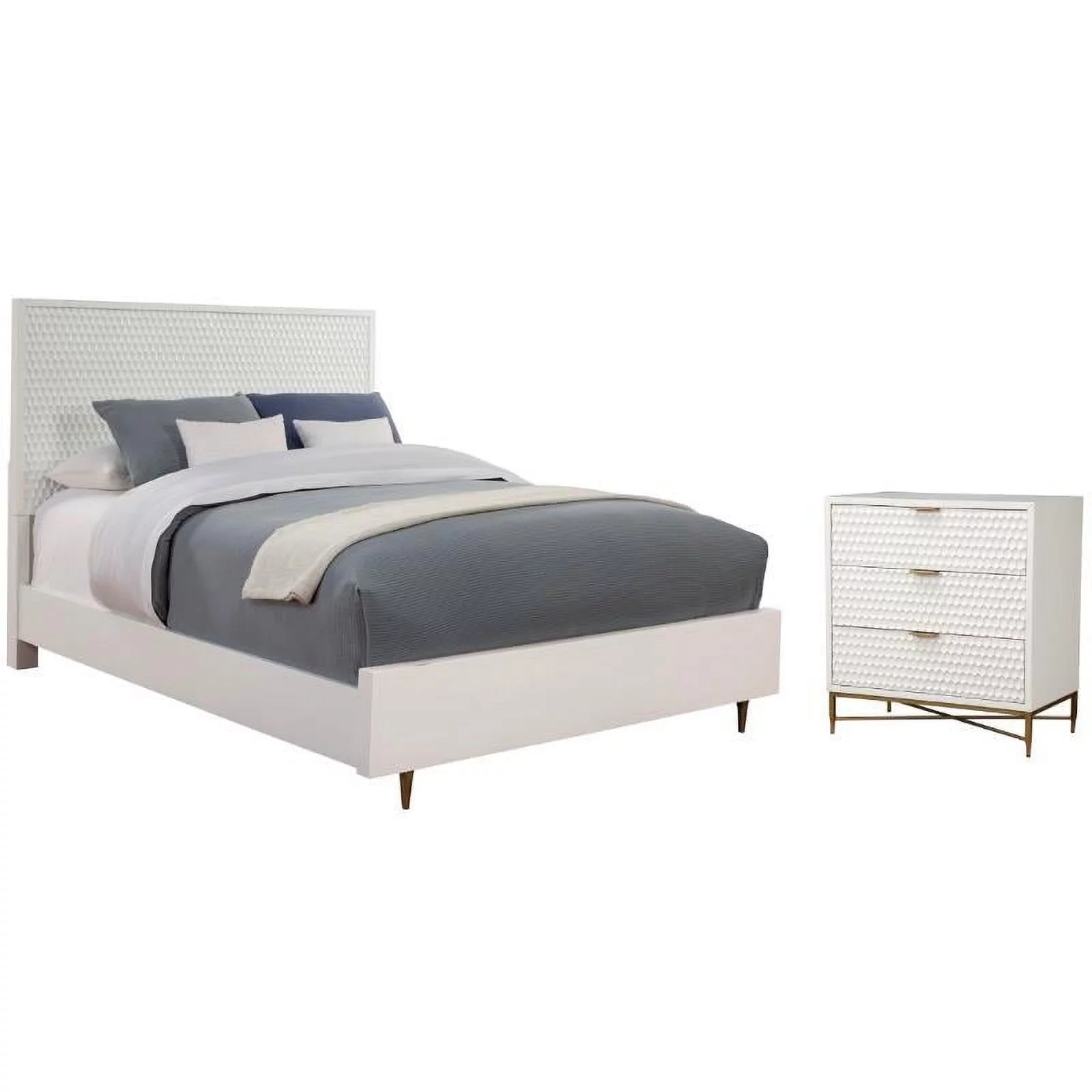 Home Square 2-Piece Set with King Panel Bed & 3 Drawer Accent Chest in White