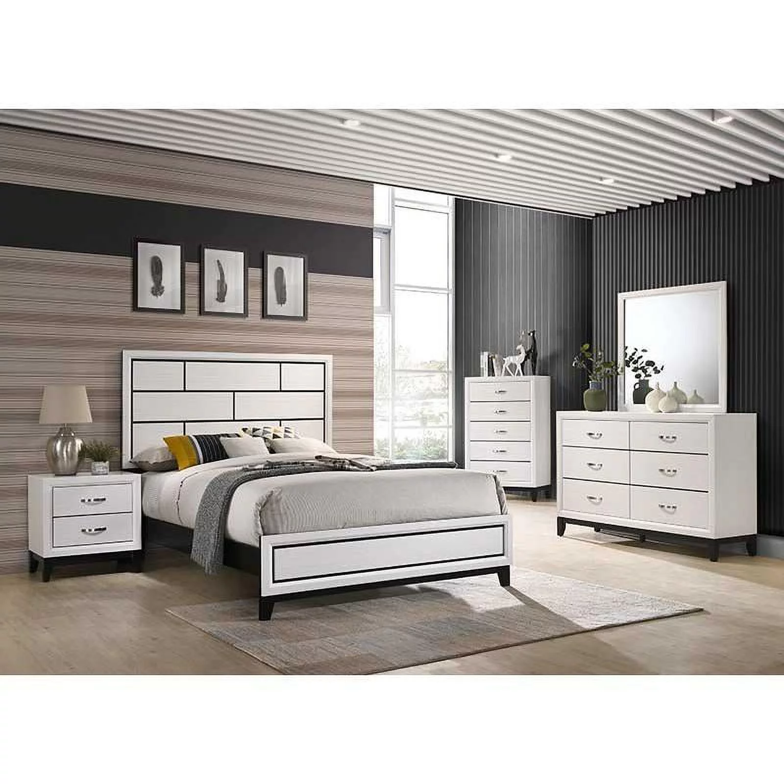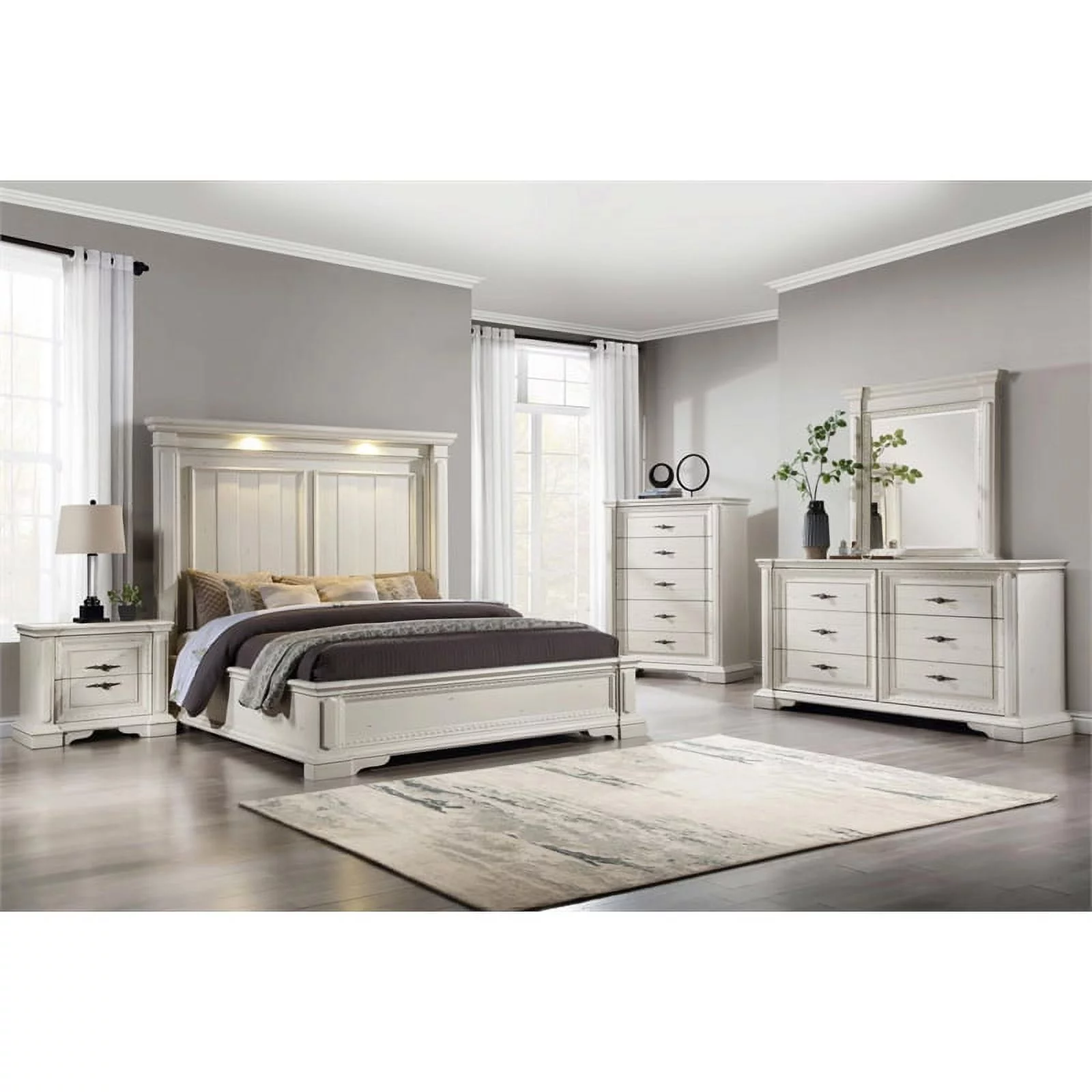 Traditionally Styled Panel Bed Dresser Mirror Nightstand Set 4Pc King Size White Hardwood