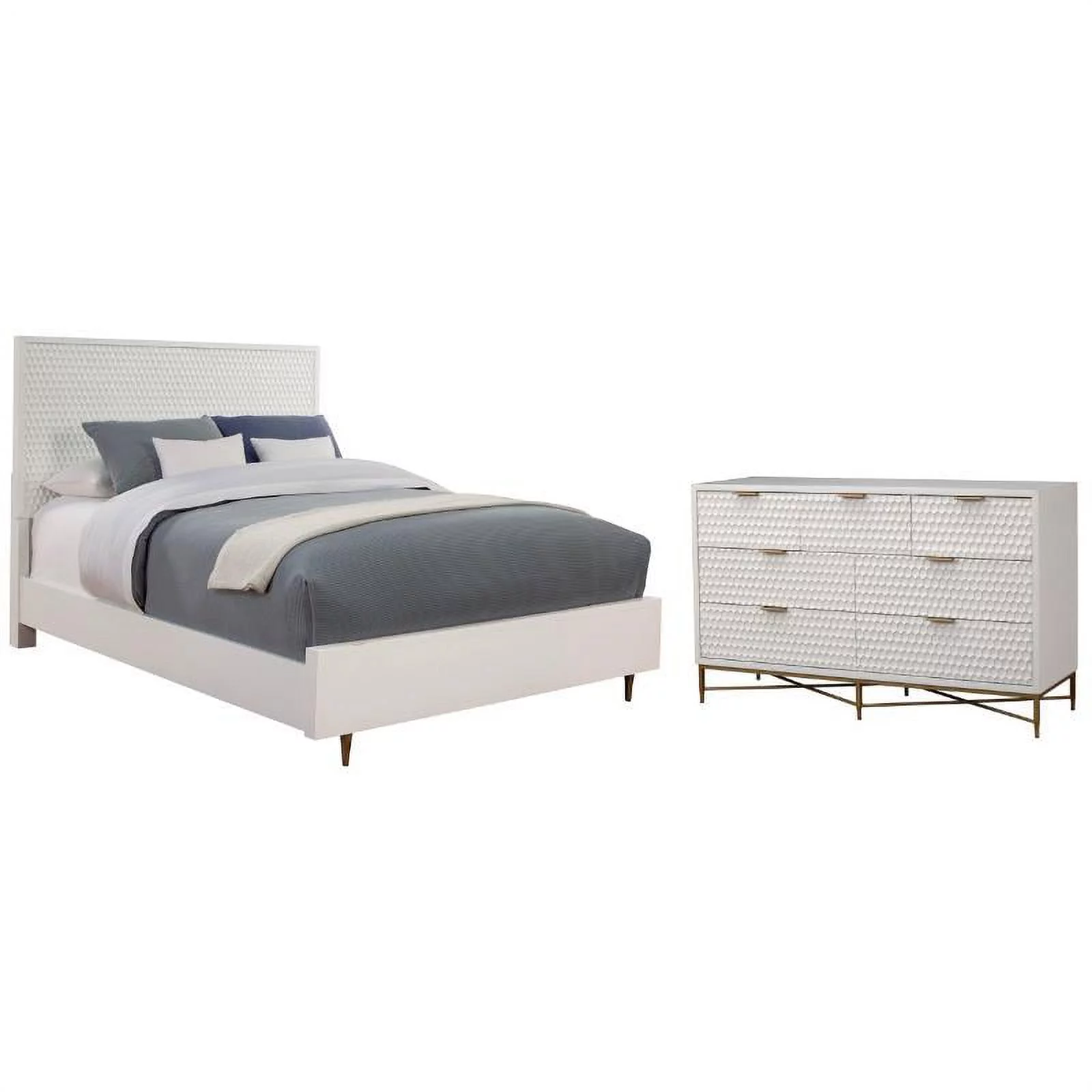 Home Square 2-Piece Set with King Panel Bed and 8-Drawer Dresser in White