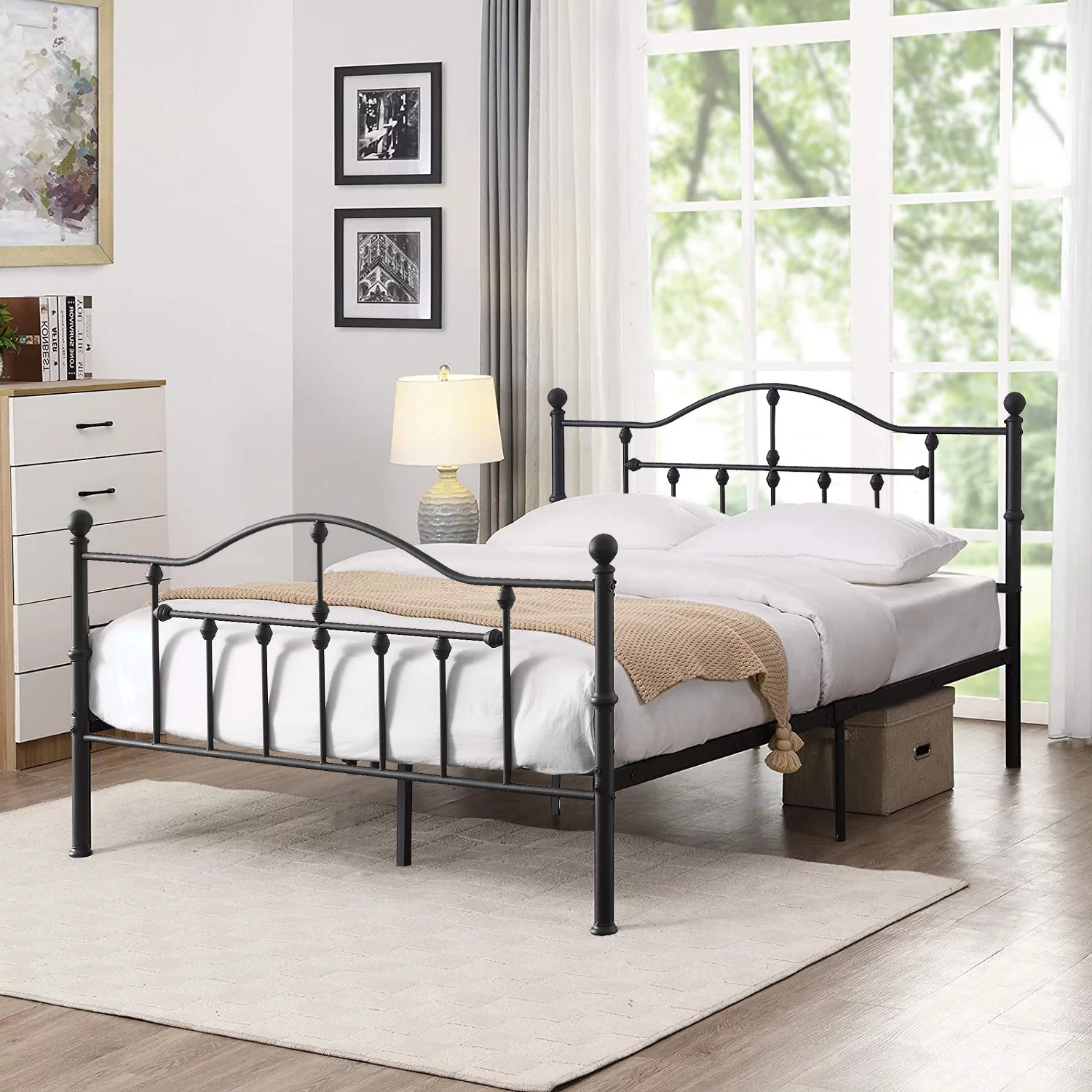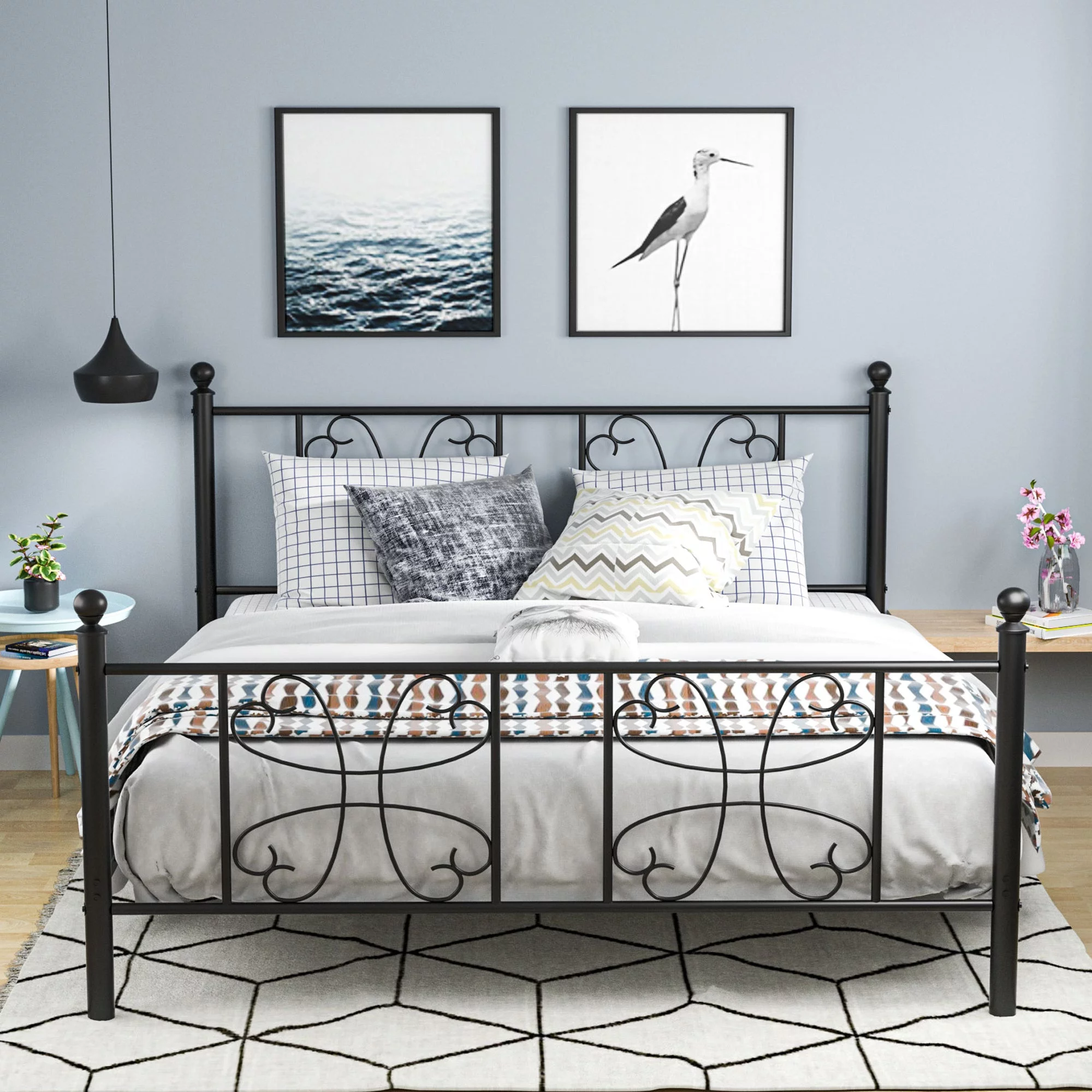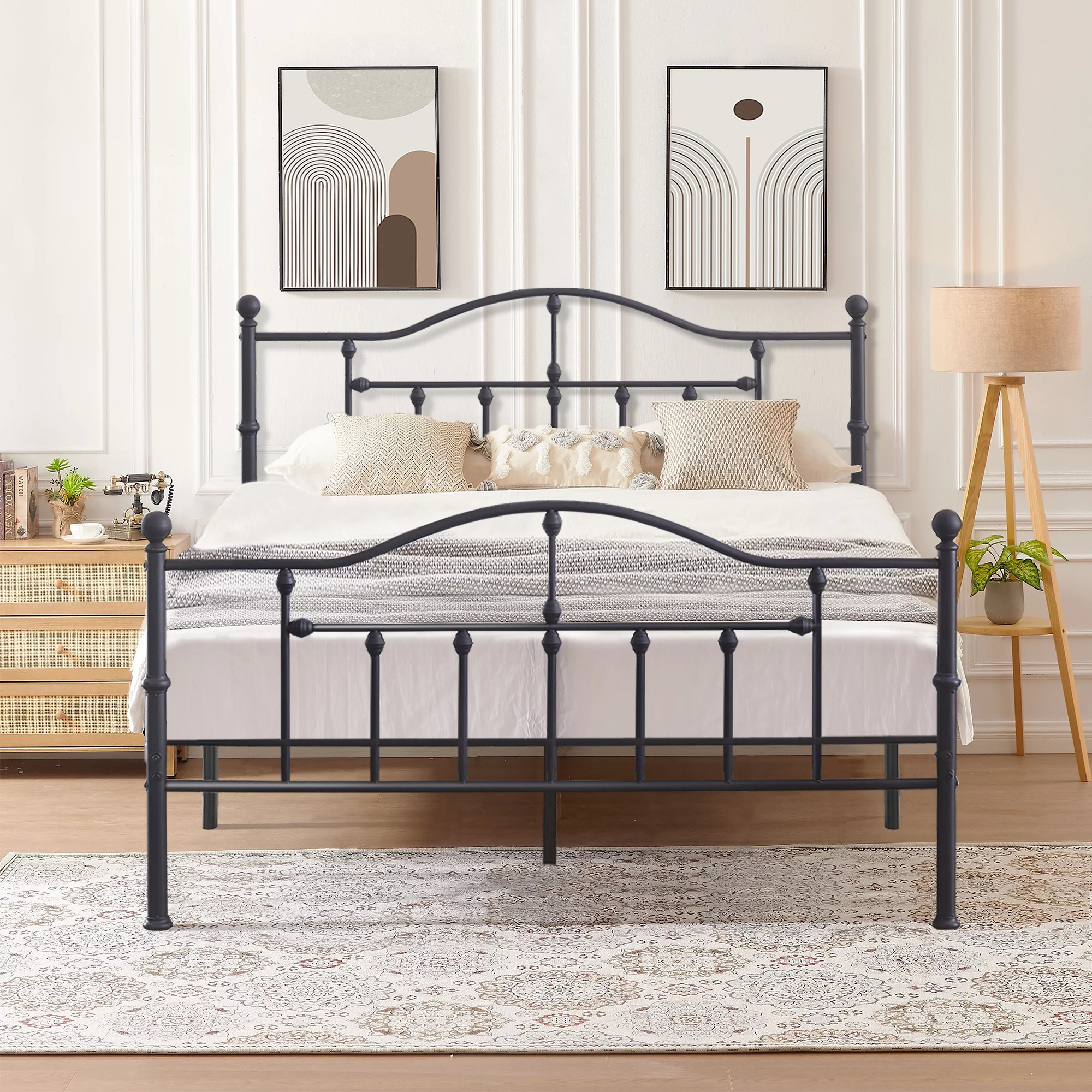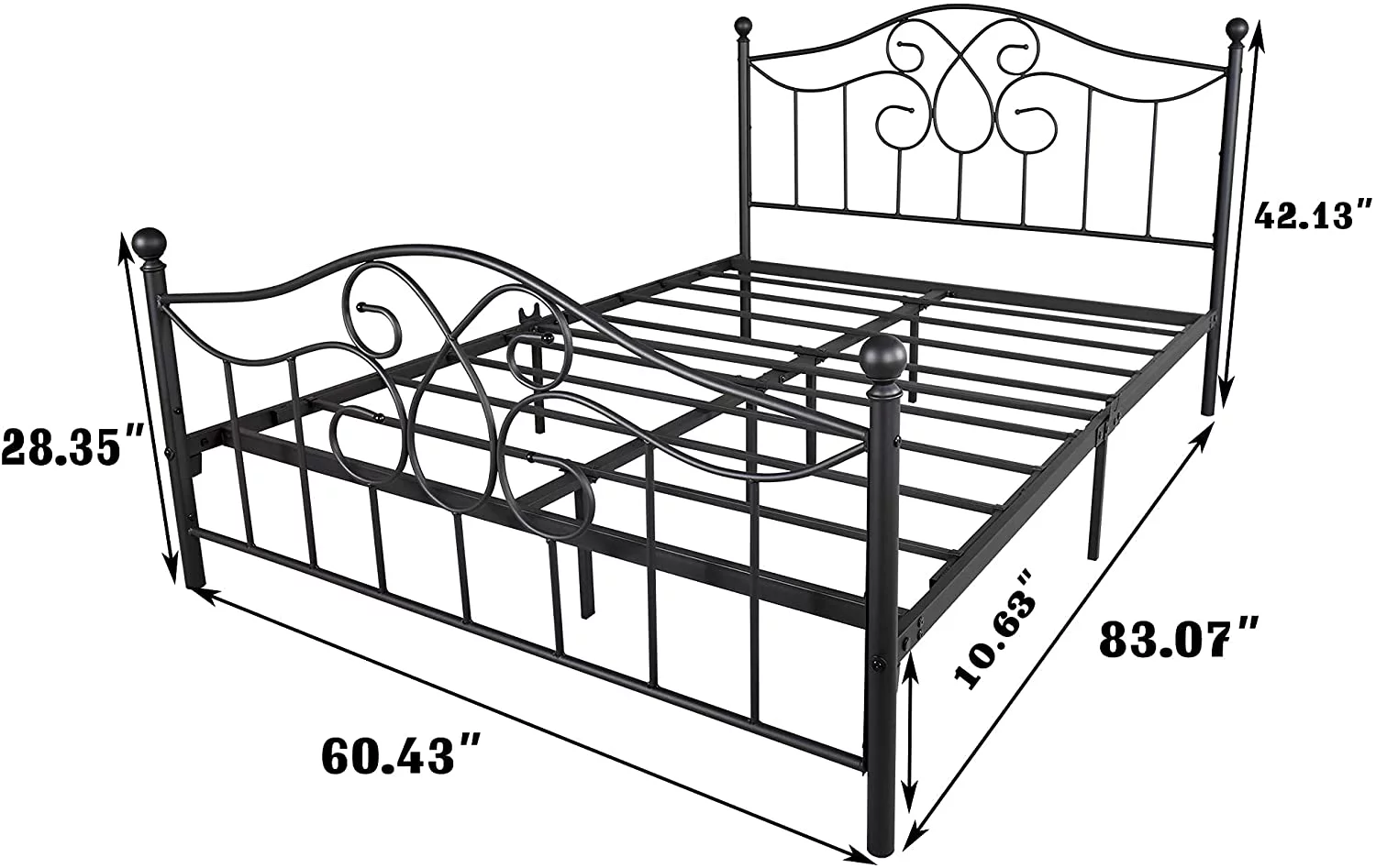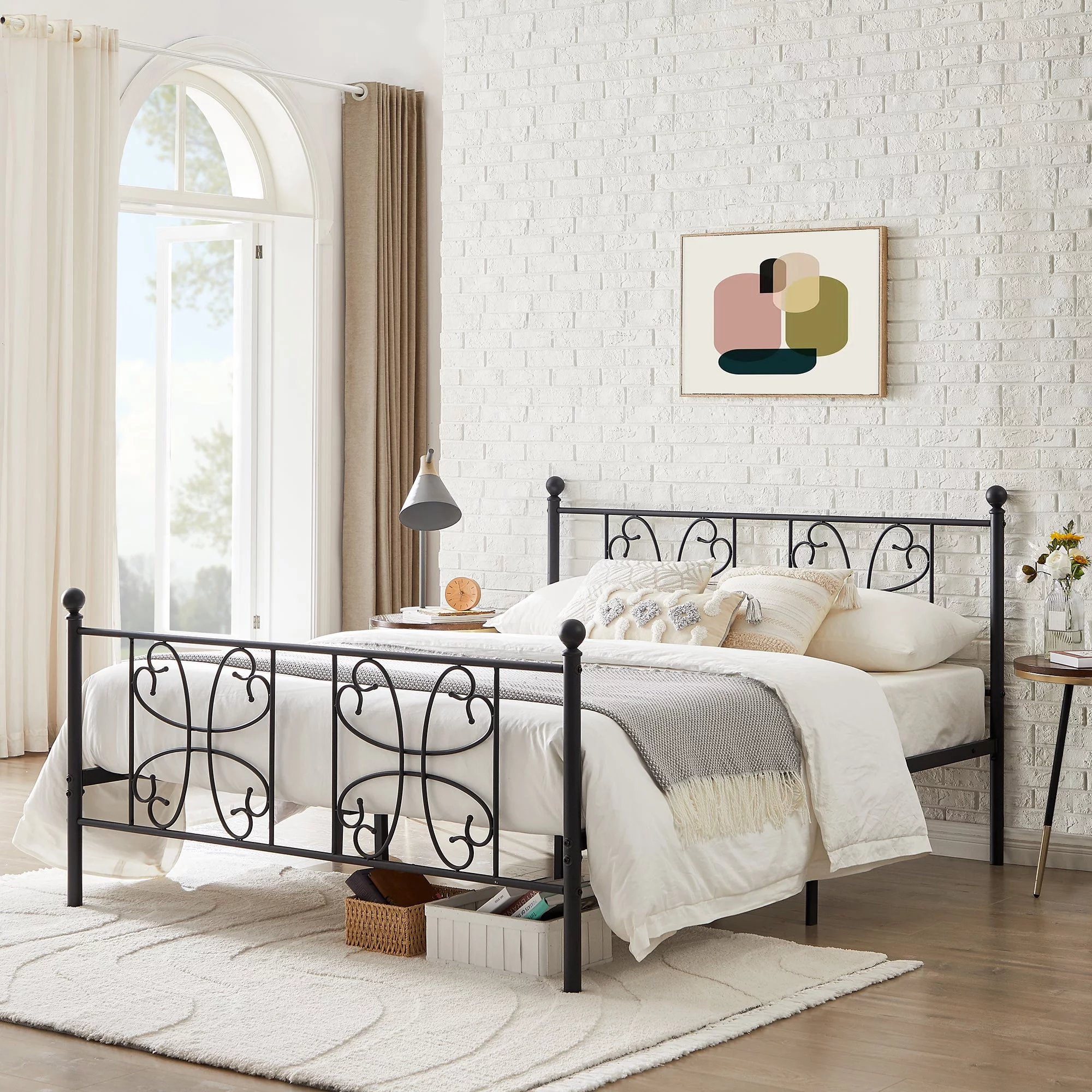 VECELO Metal Platform Bed Frame with Victorian Headboard and Footboard, No Box Spring Needed, Queen, Black