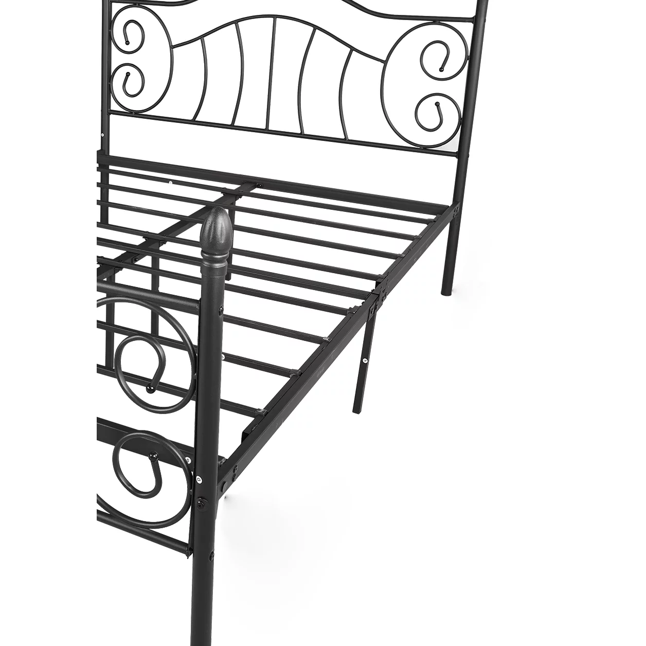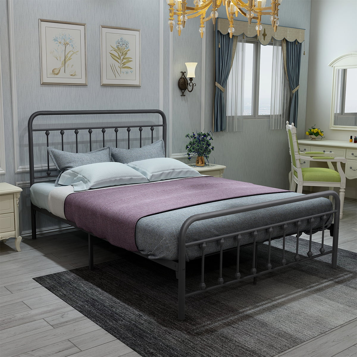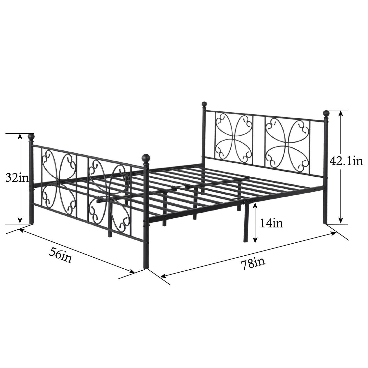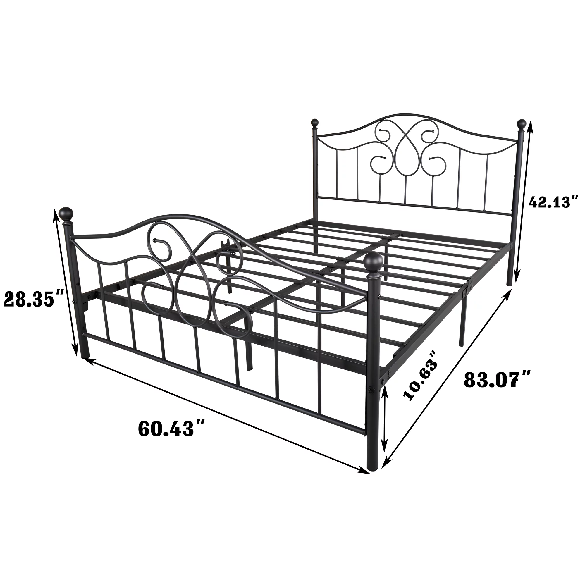 VECELO Metal Platform Bed Frame with Victorian Headboard and Footboard, No Box Spring Needed, Queen, Black