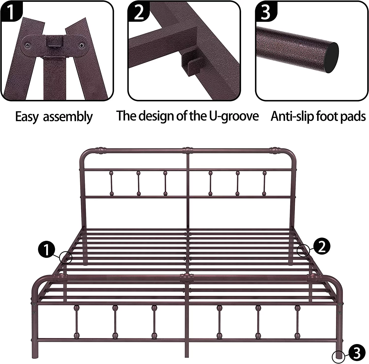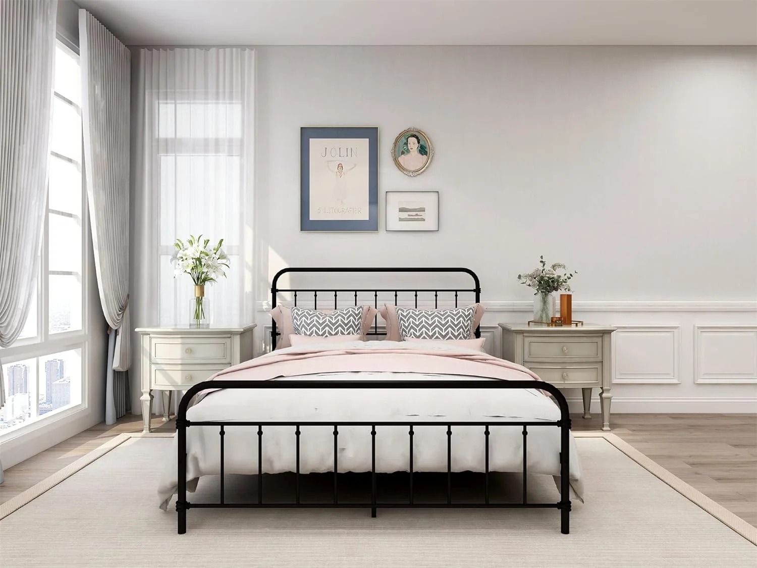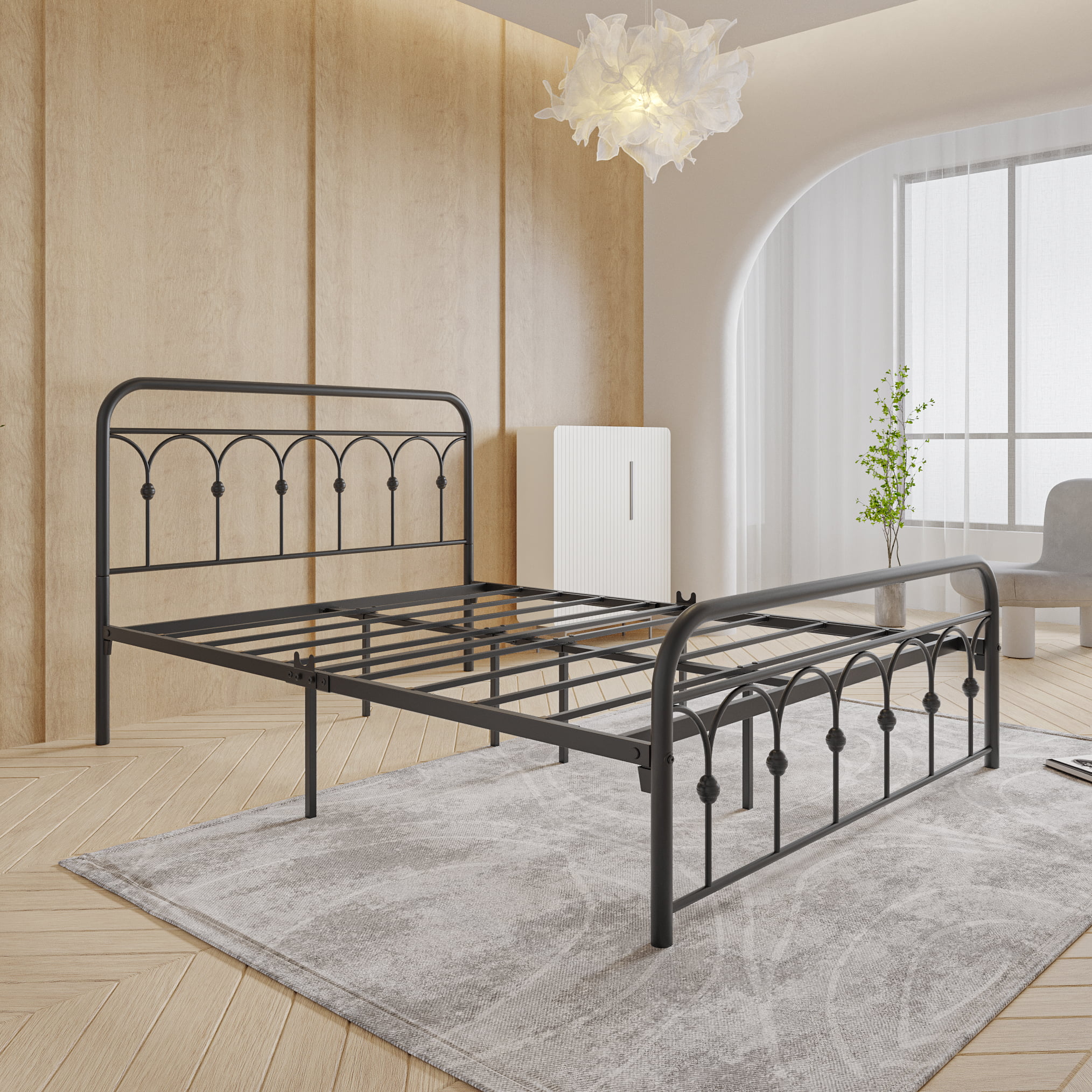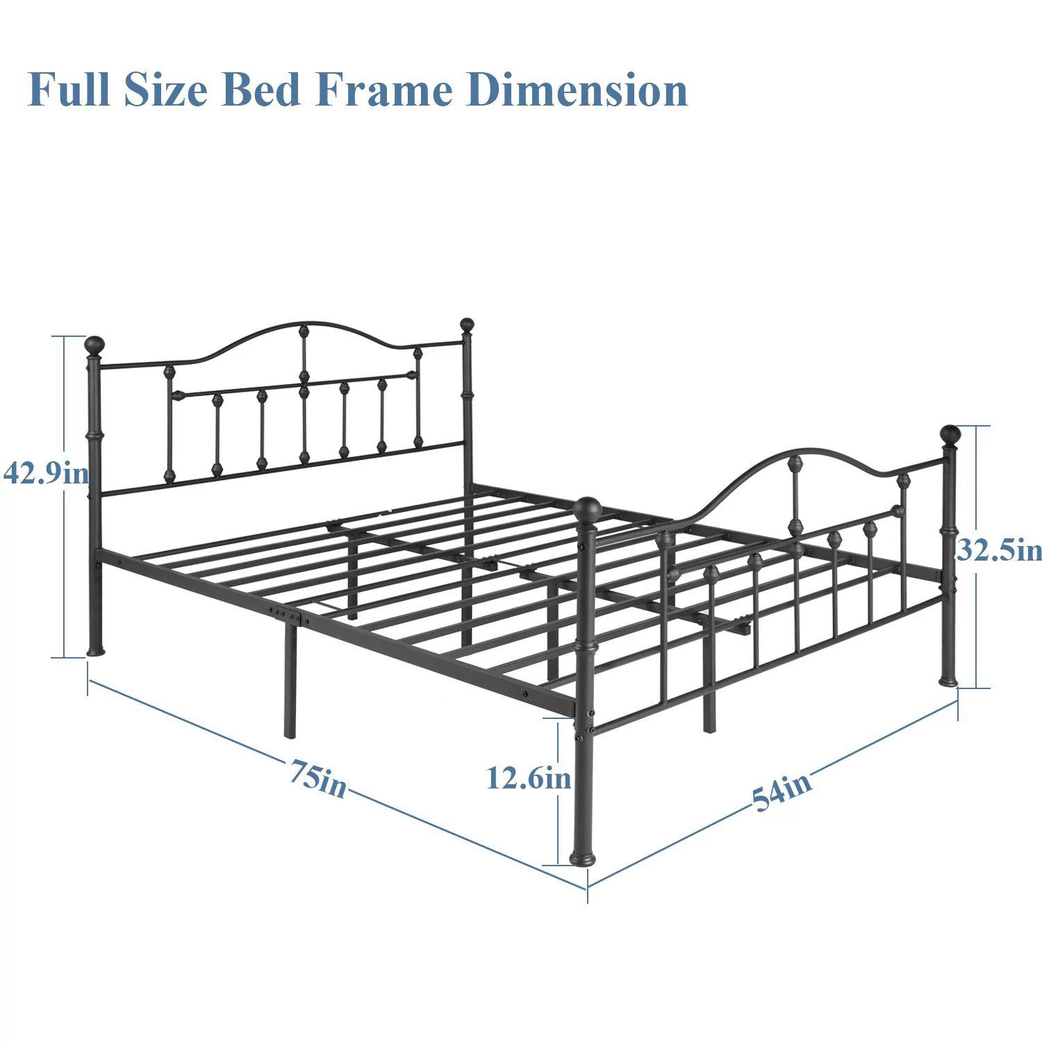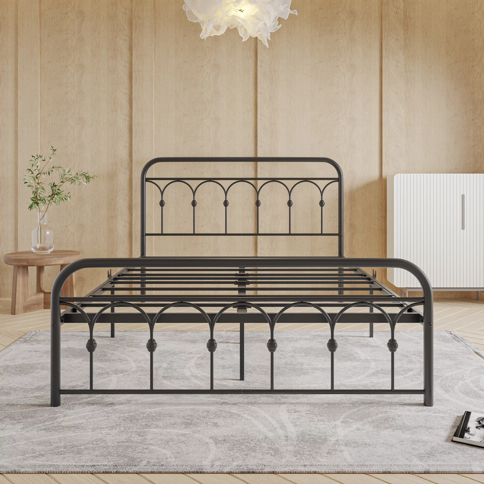 VECELO Metal Platform Bed Frame with Victorian Headboard and Footboard, No Box Spring Needed, Queen, Black