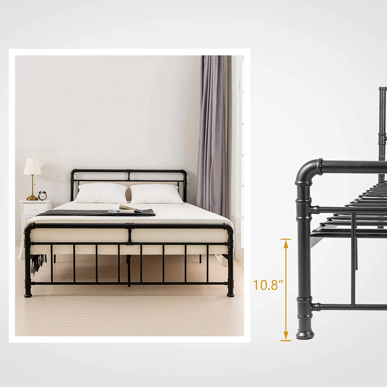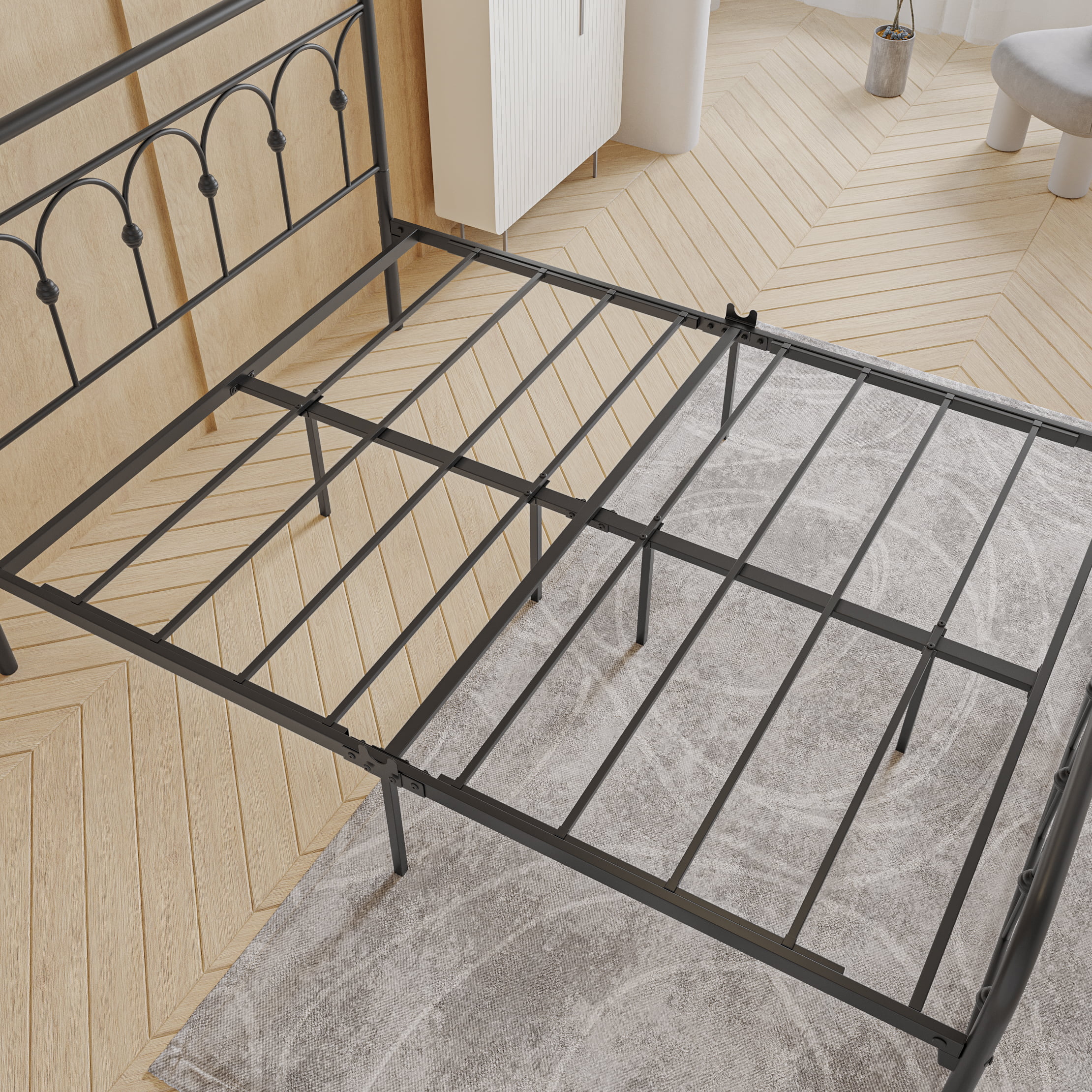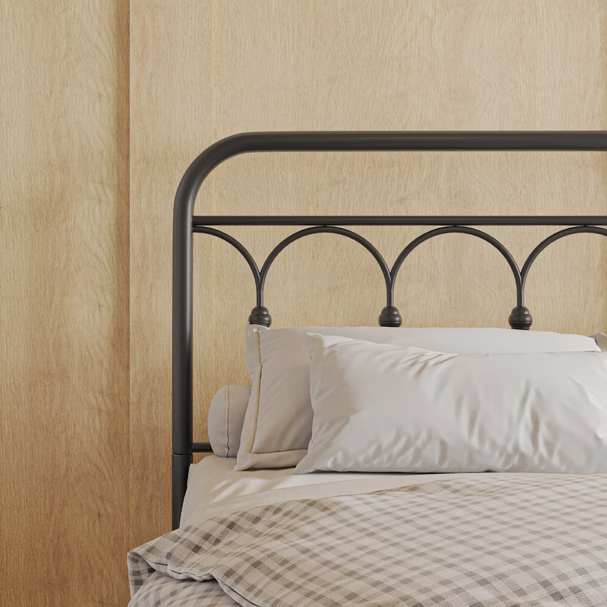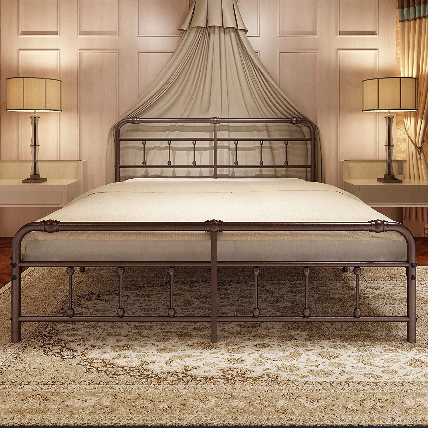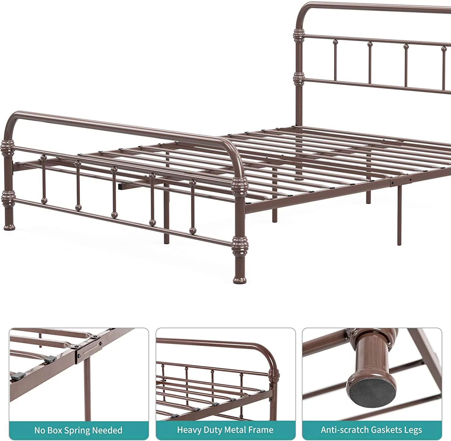 VECELO Metal Platform Bed Frame with Victorian Headboard and Footboard, No Box Spring Needed, Queen, Black