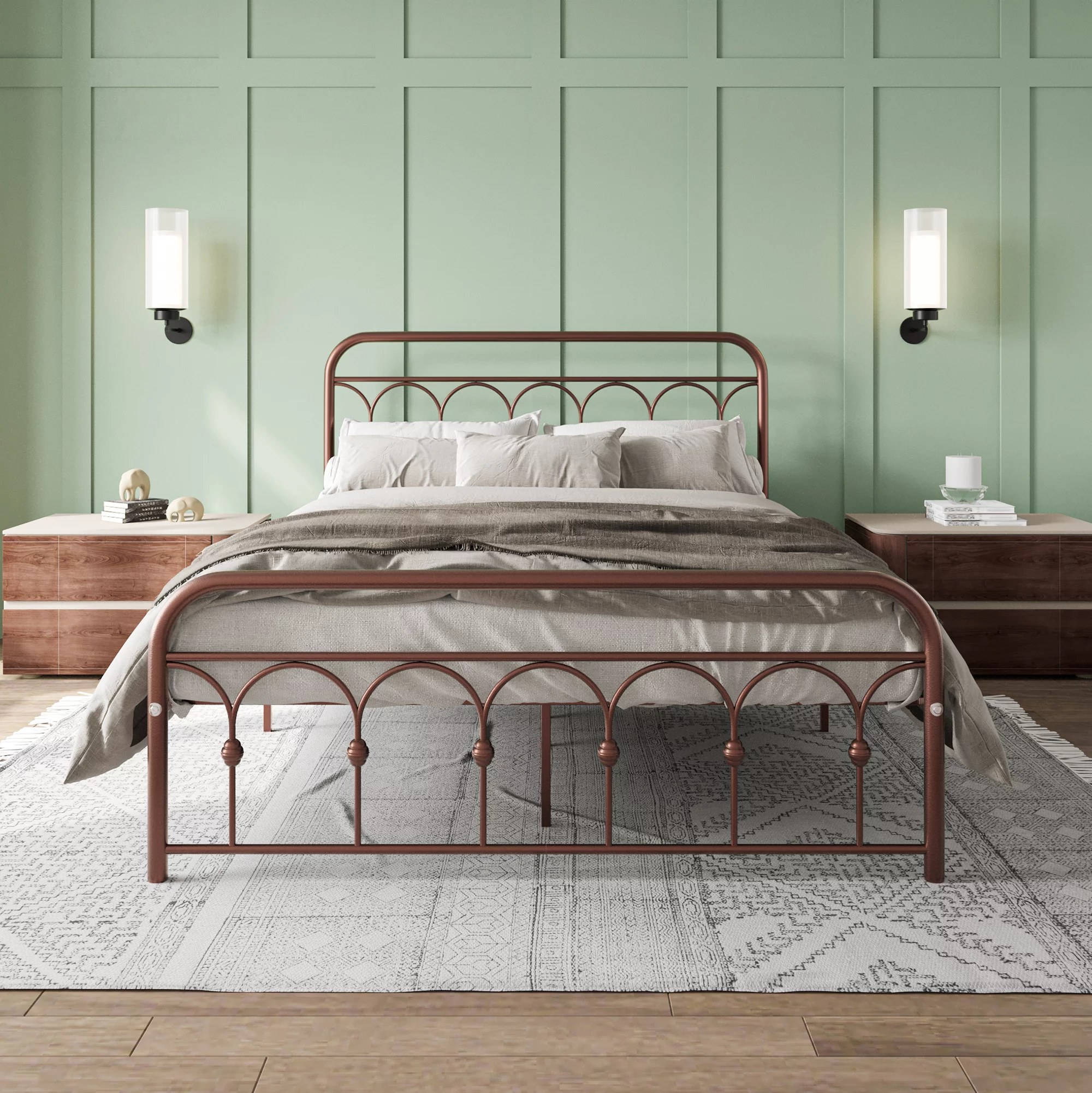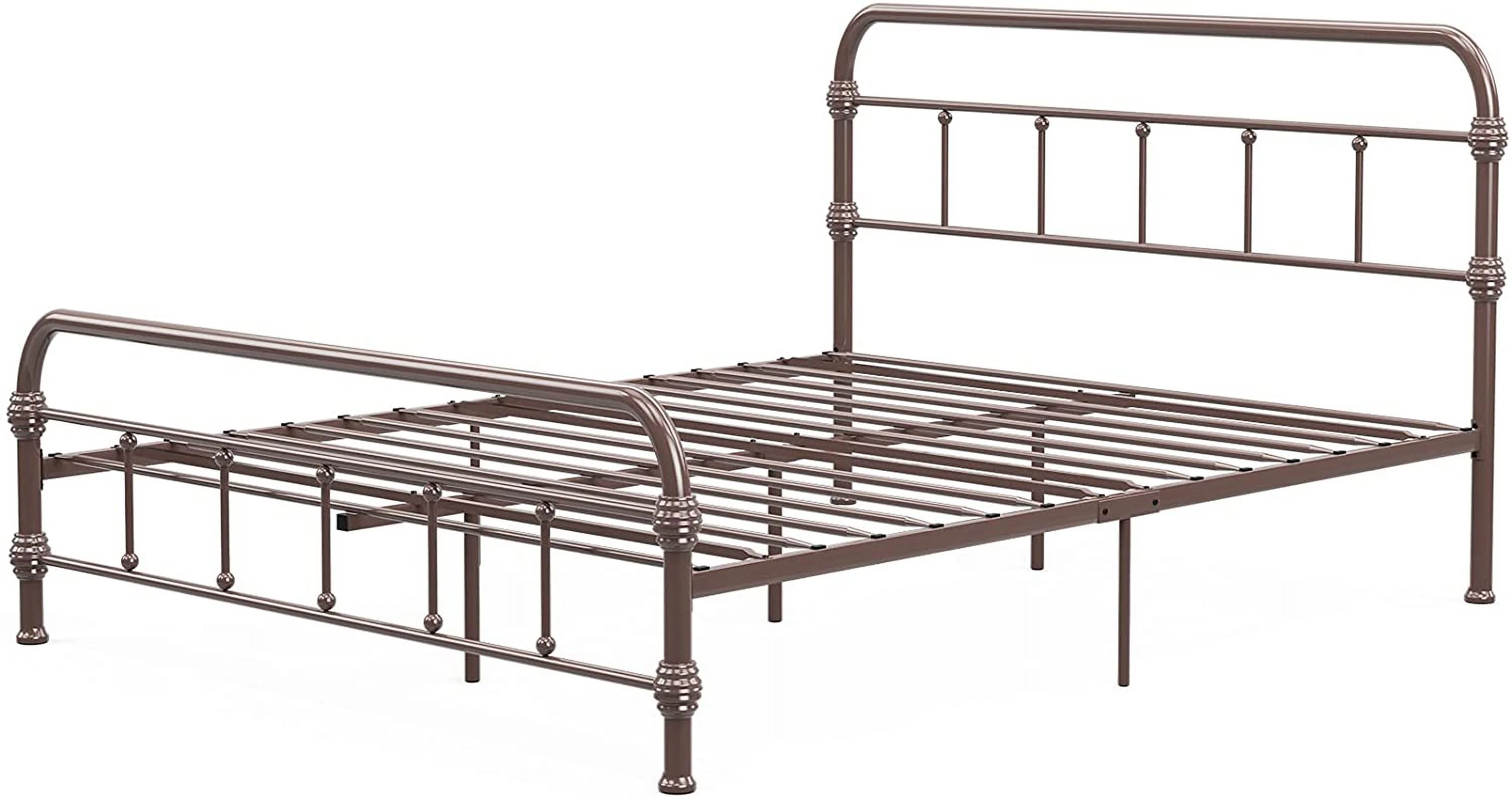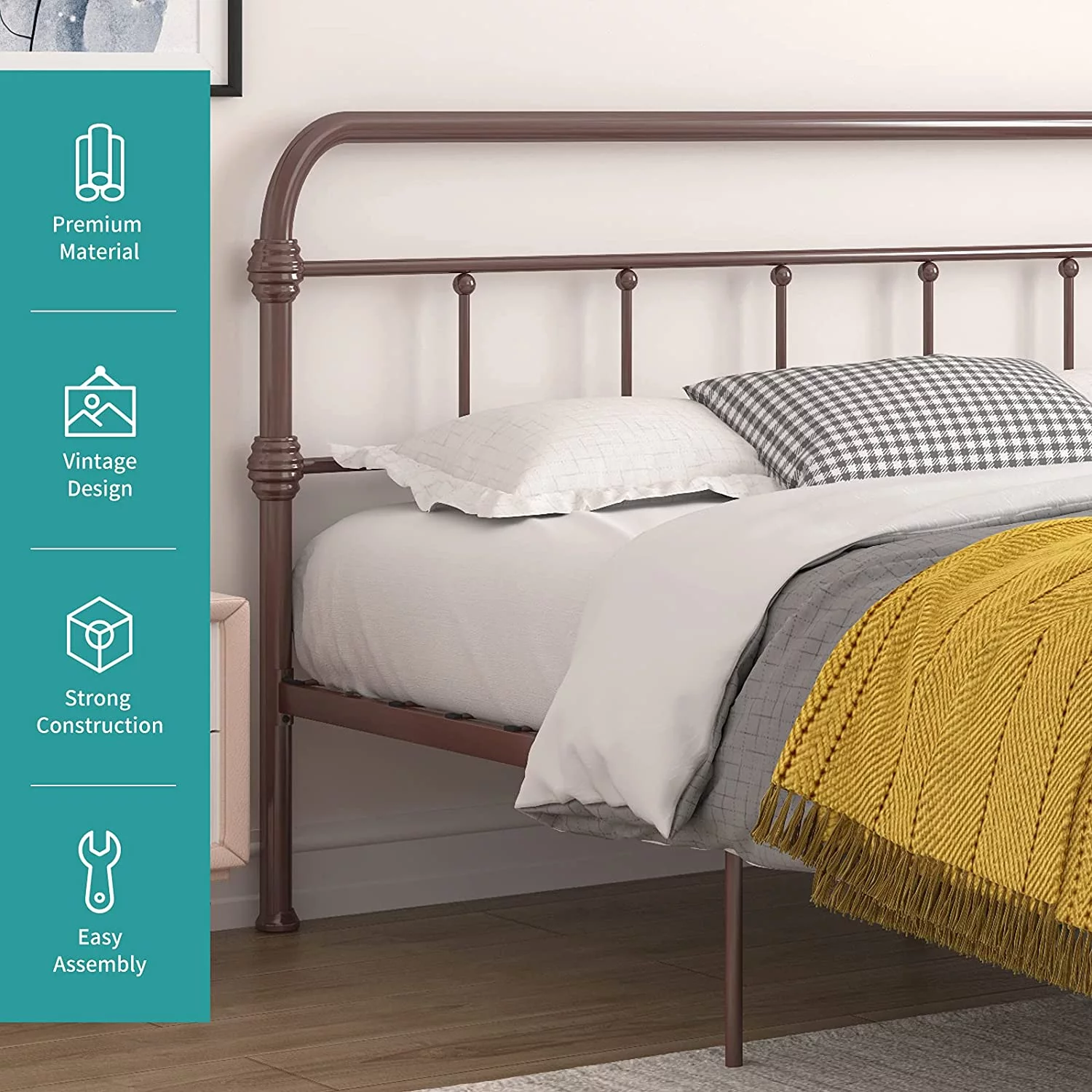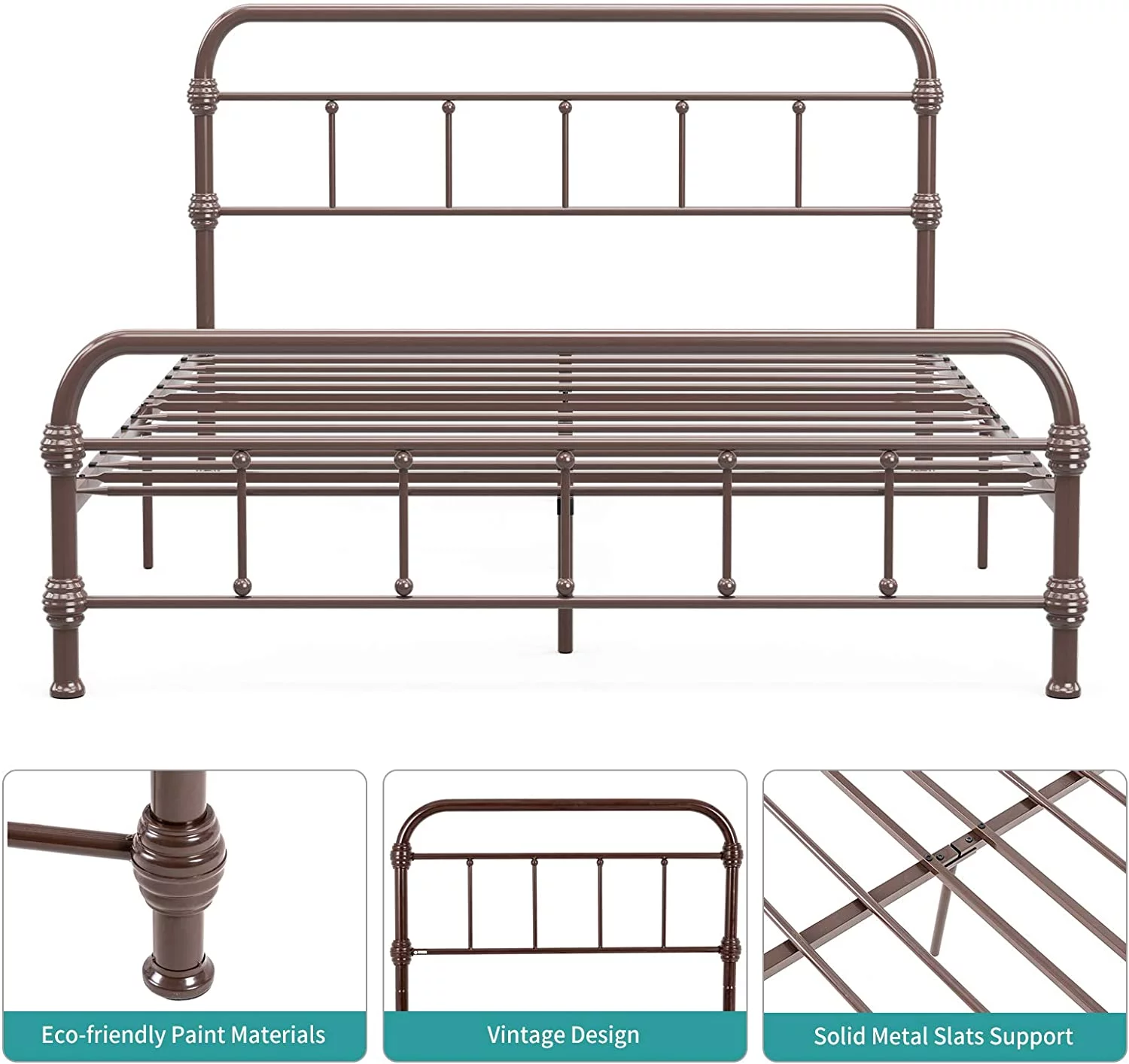 VECELO Metal Platform Bed Frame with Victorian Headboard and Footboard, No Box Spring Needed, Queen, Black
