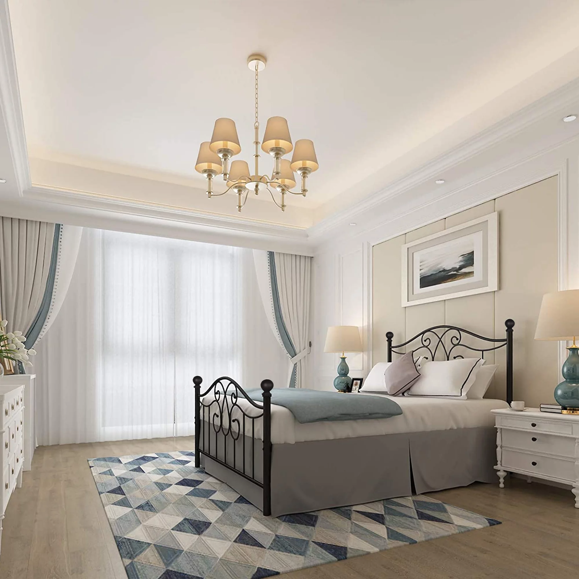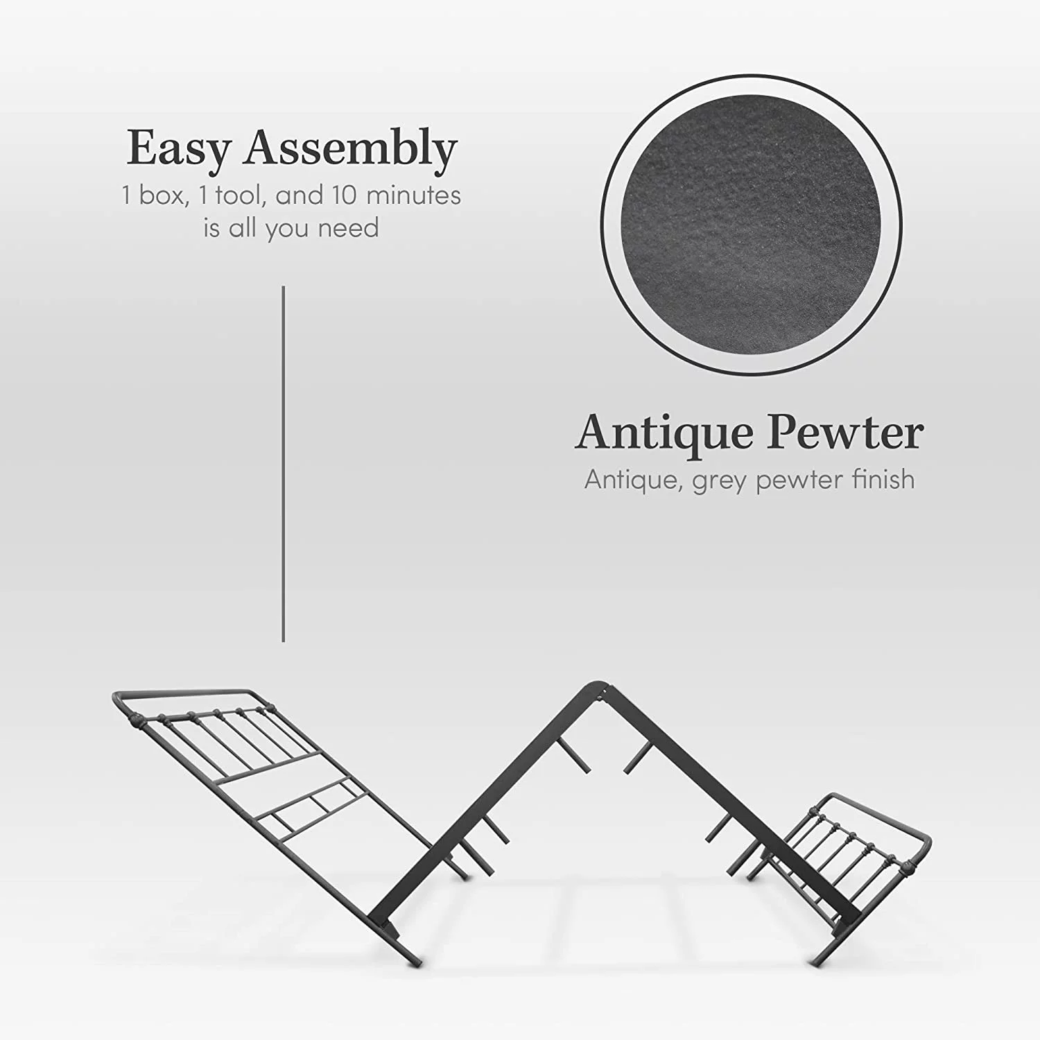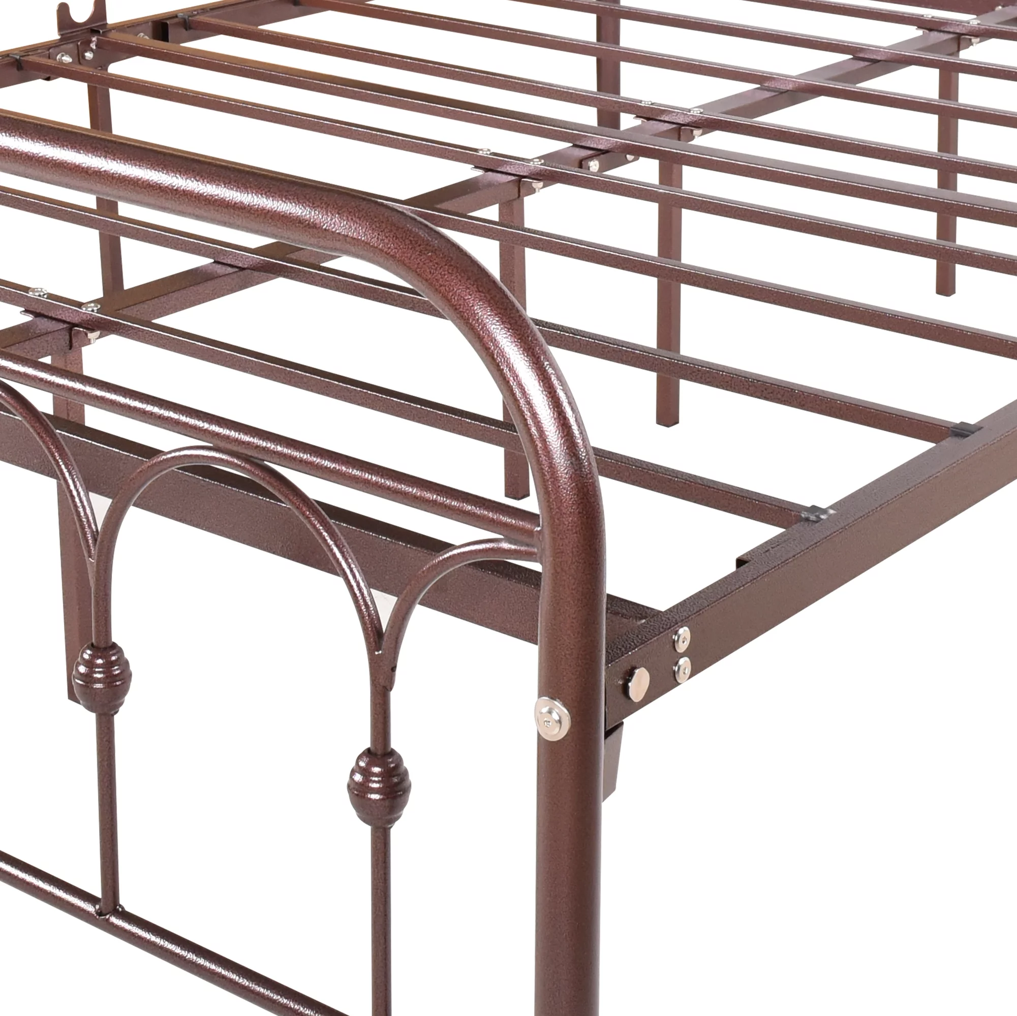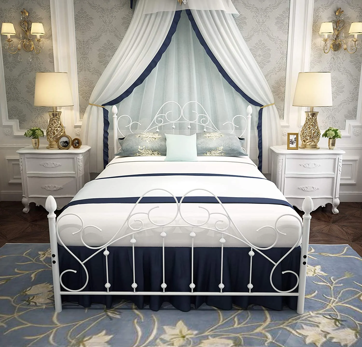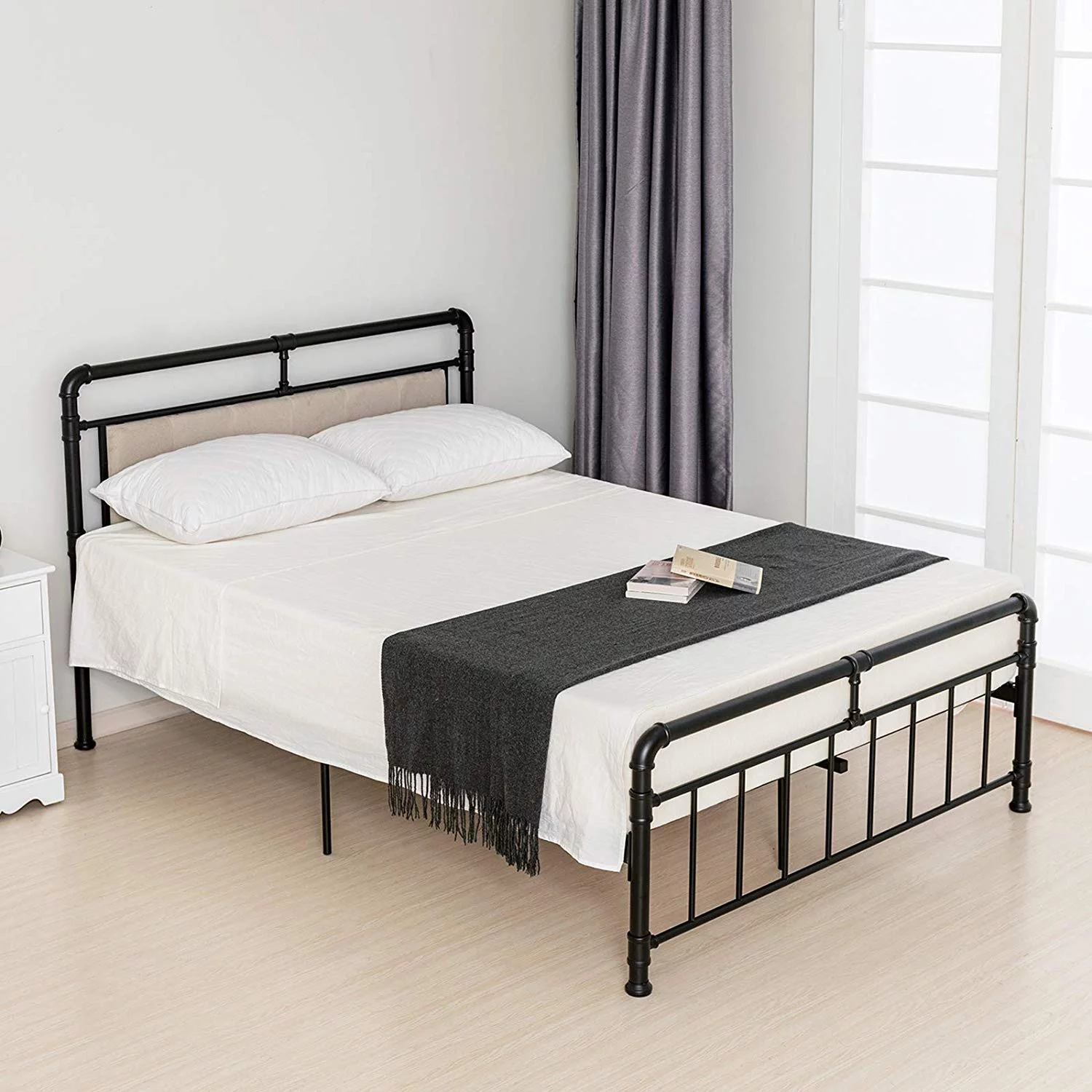 VECELO Metal Platform Bed Frame with Victorian Headboard and Footboard, No Box Spring Needed, Queen, Black