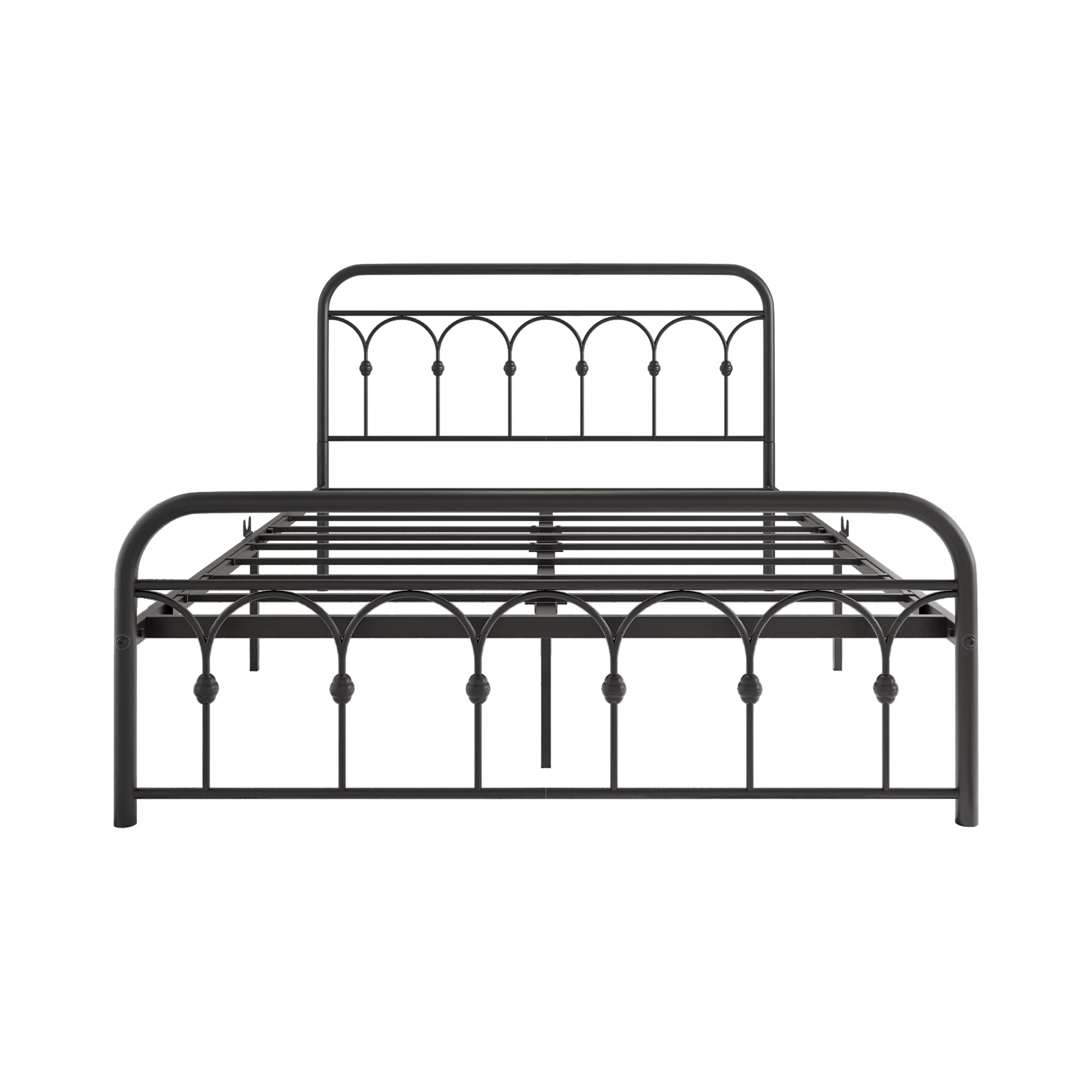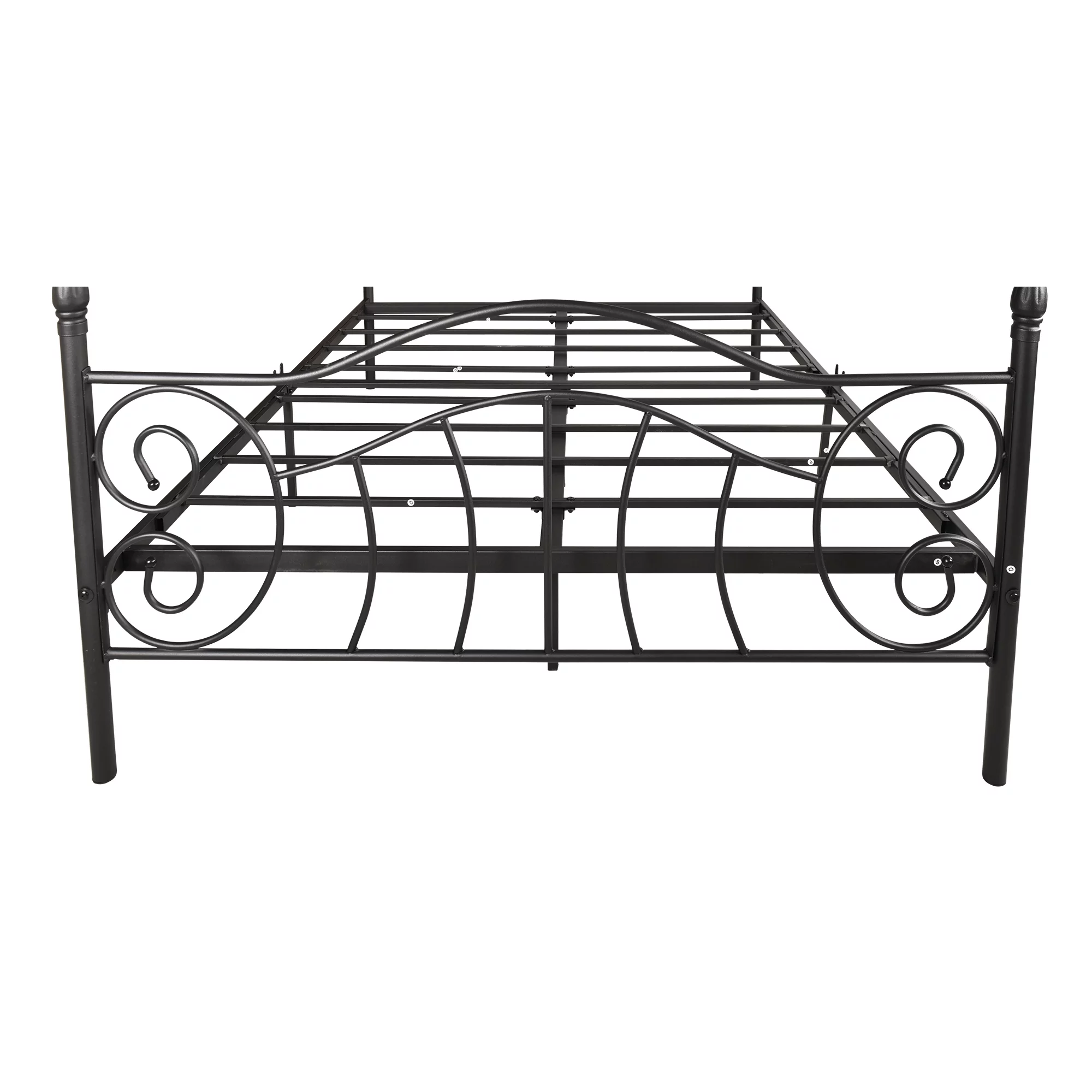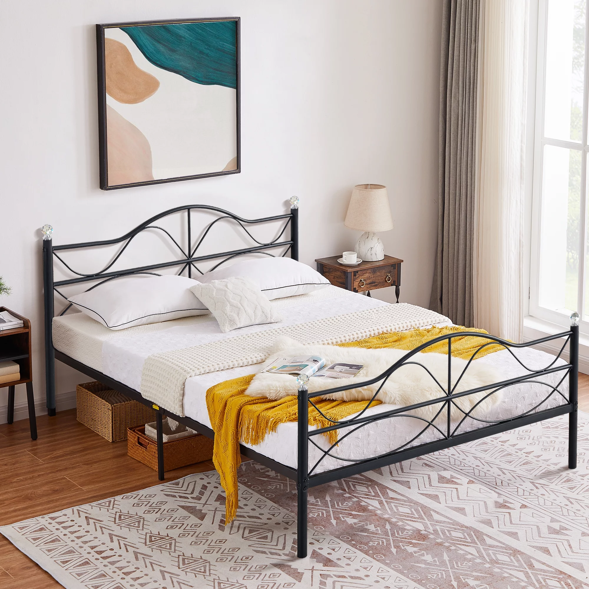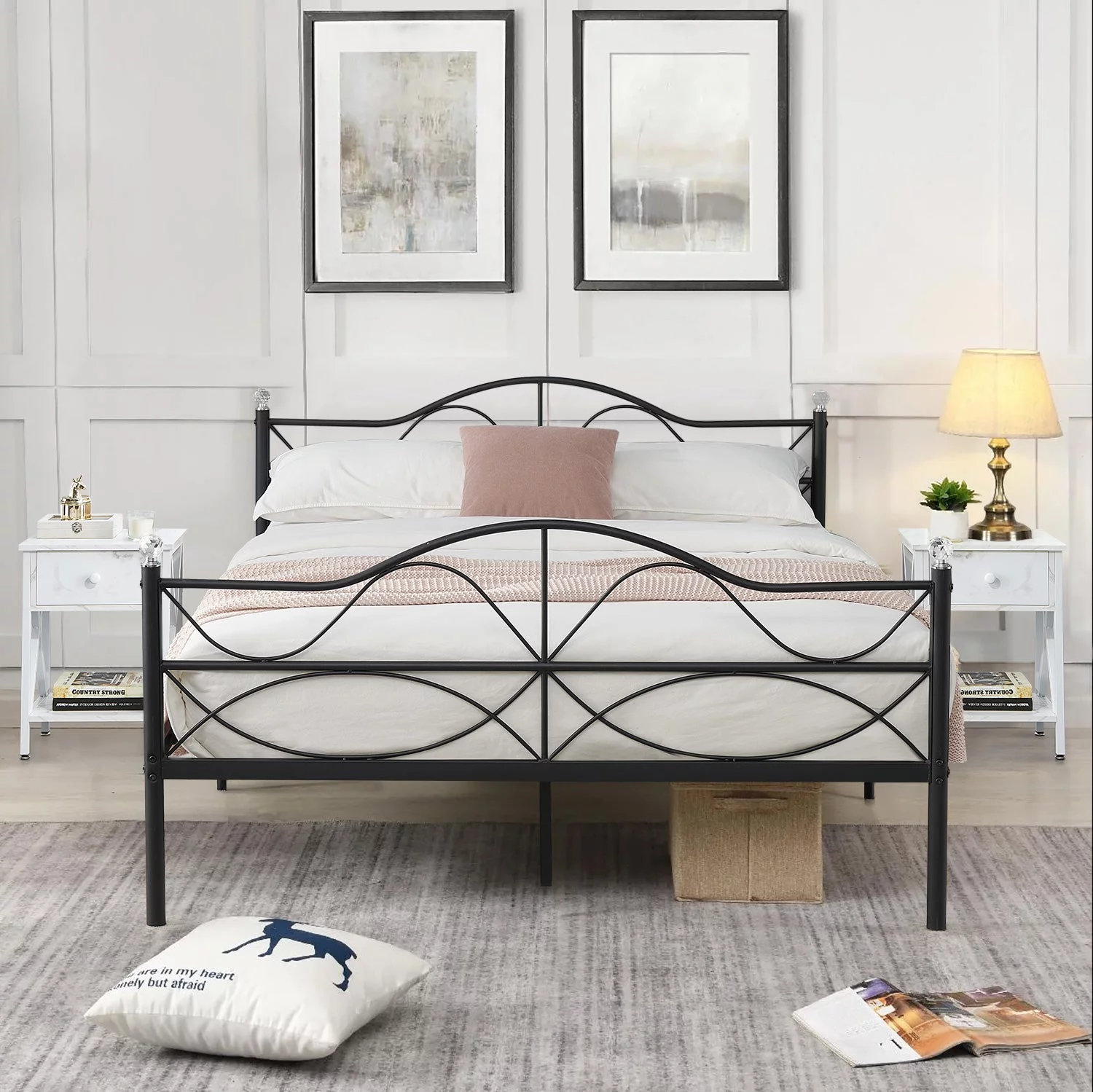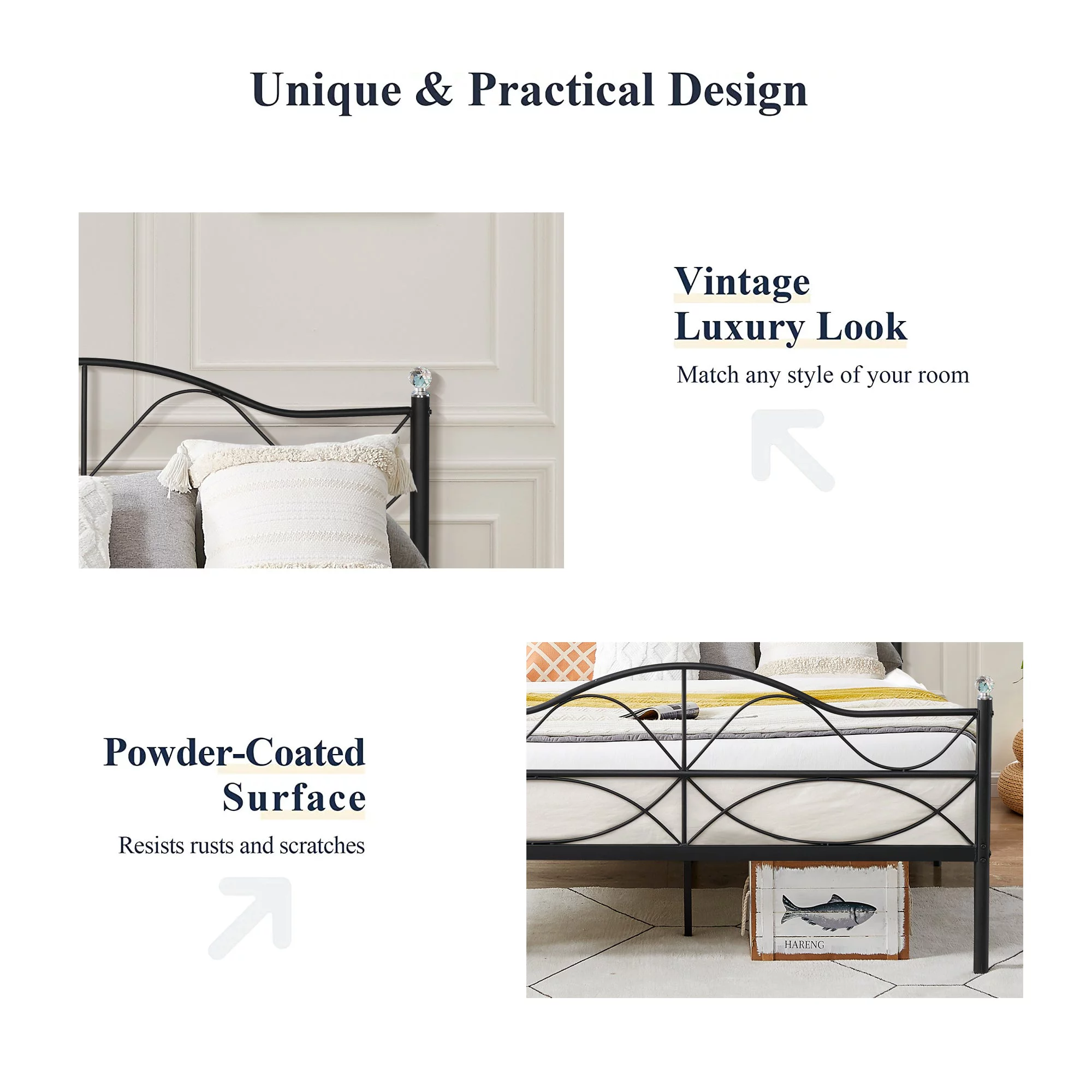 VECELO Metal Platform Bed Frame with Victorian Crystal Ball Headboard and Footboard, Queen Size, Black
