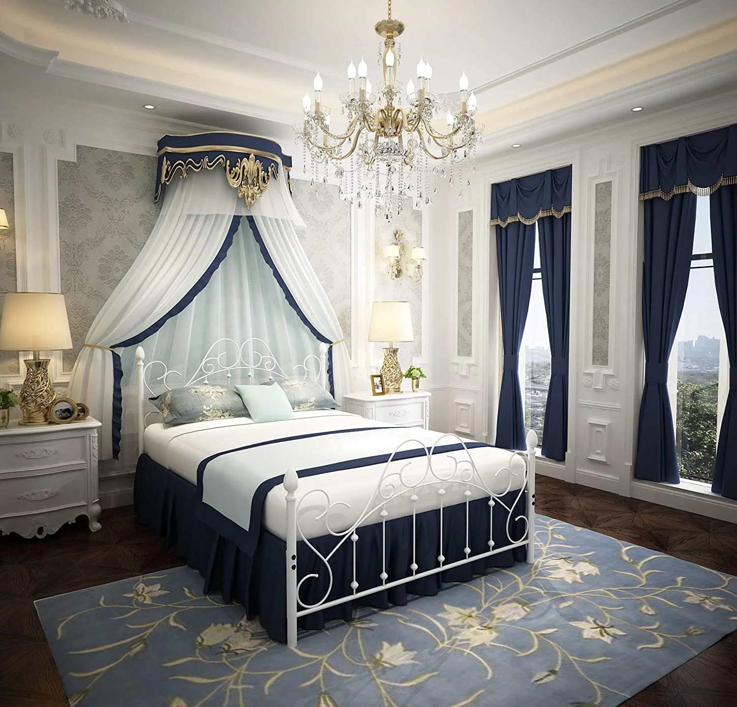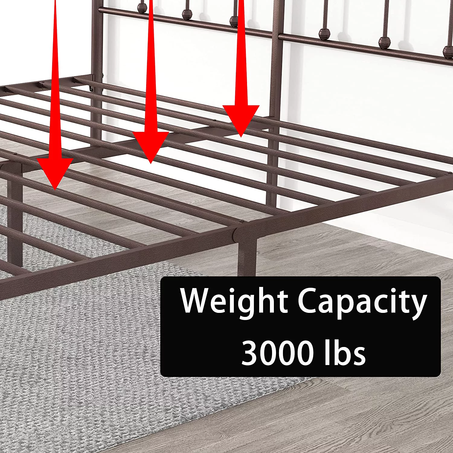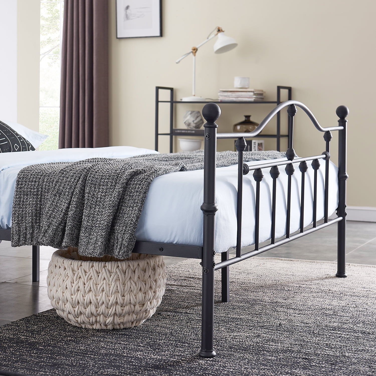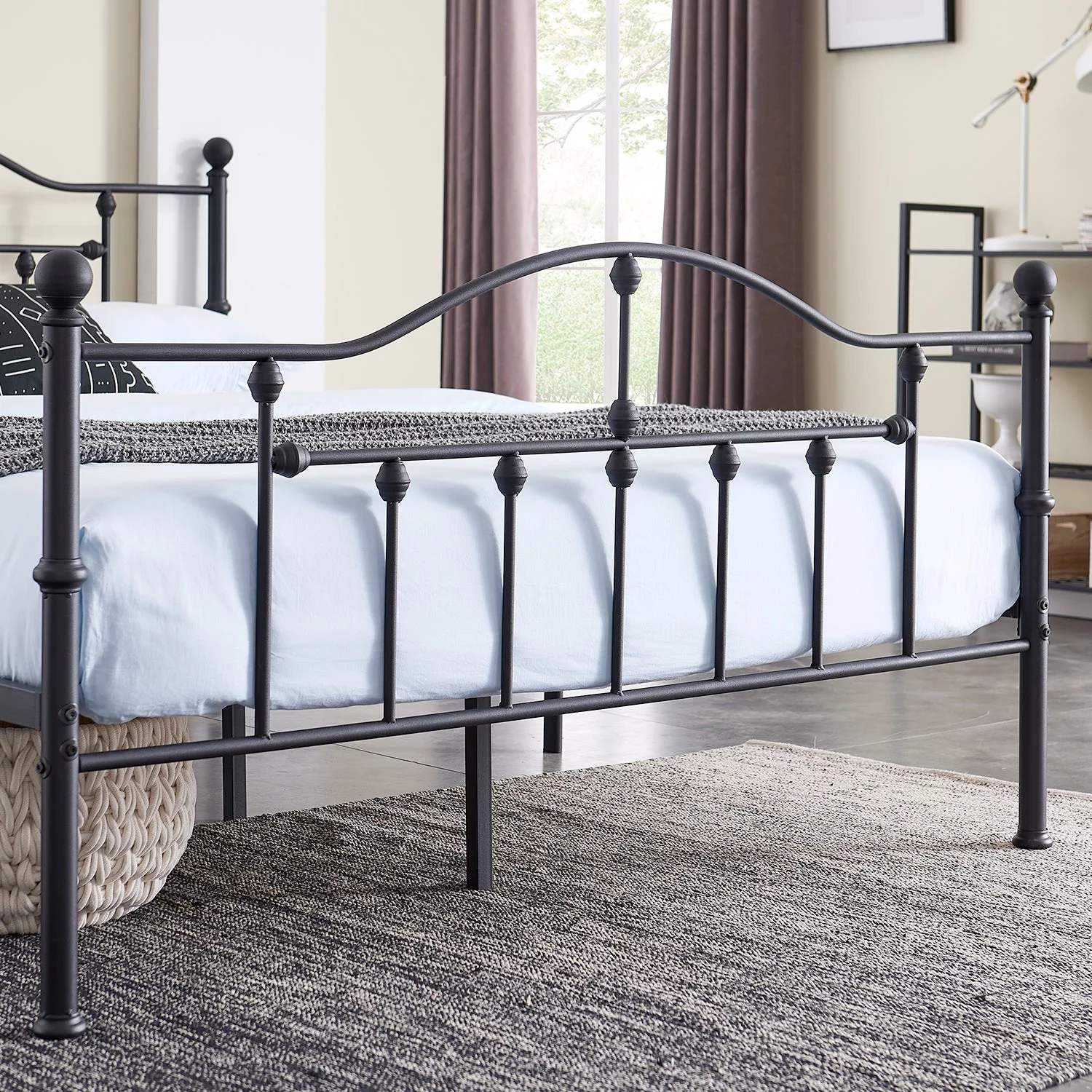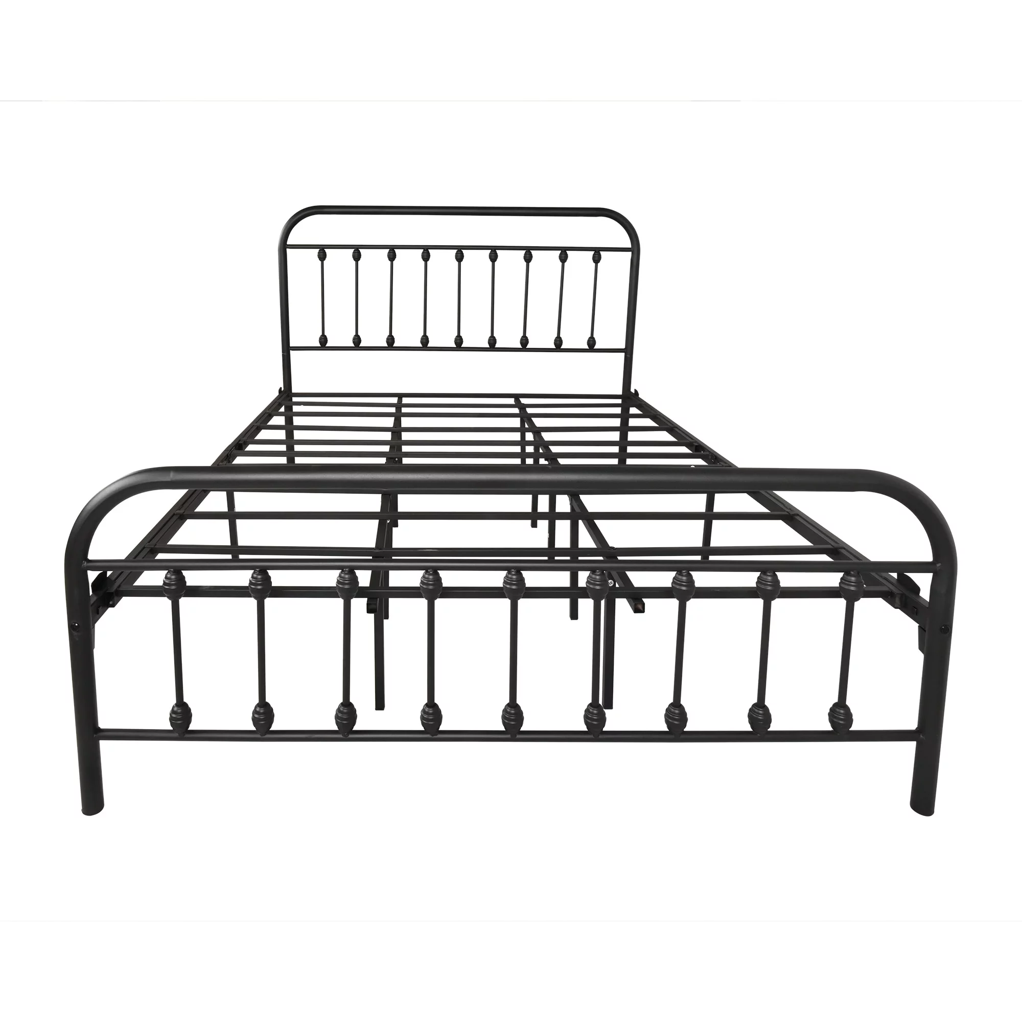 VECELO Metal Platform Bed Frame with Victorian Crystal Ball Headboard and Footboard, Queen Size, Black