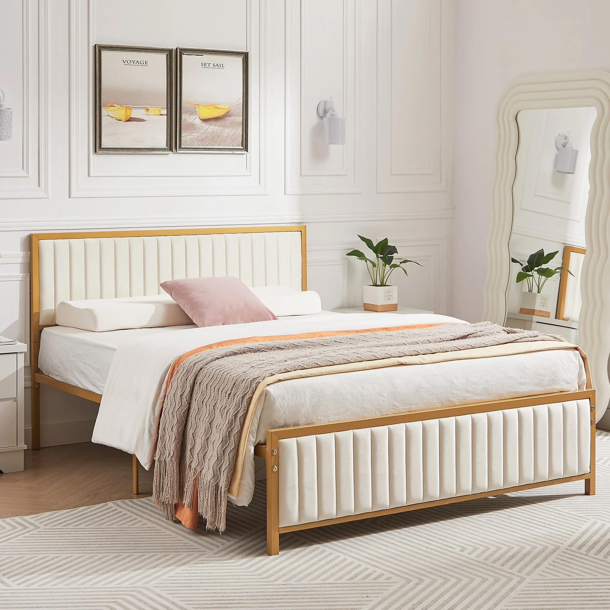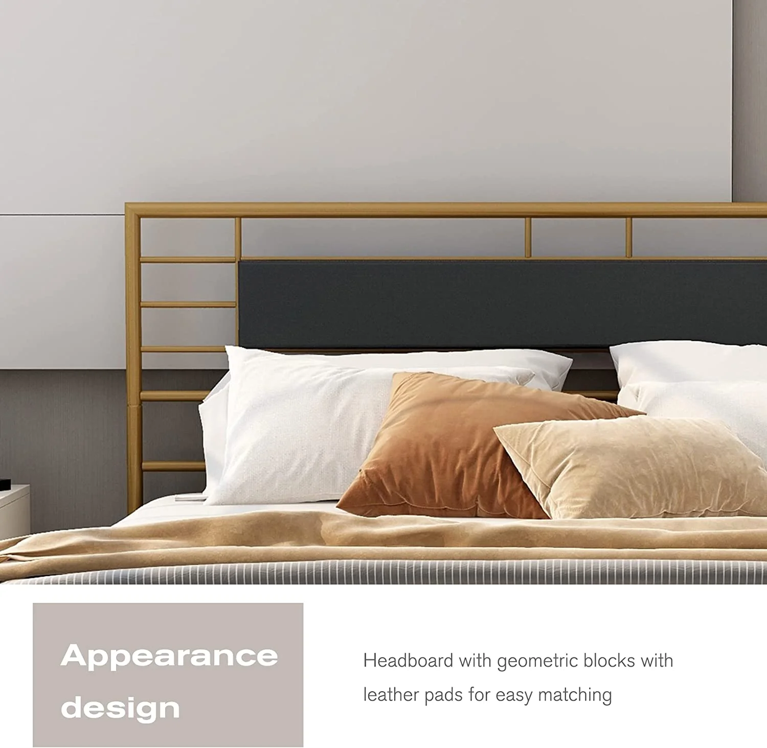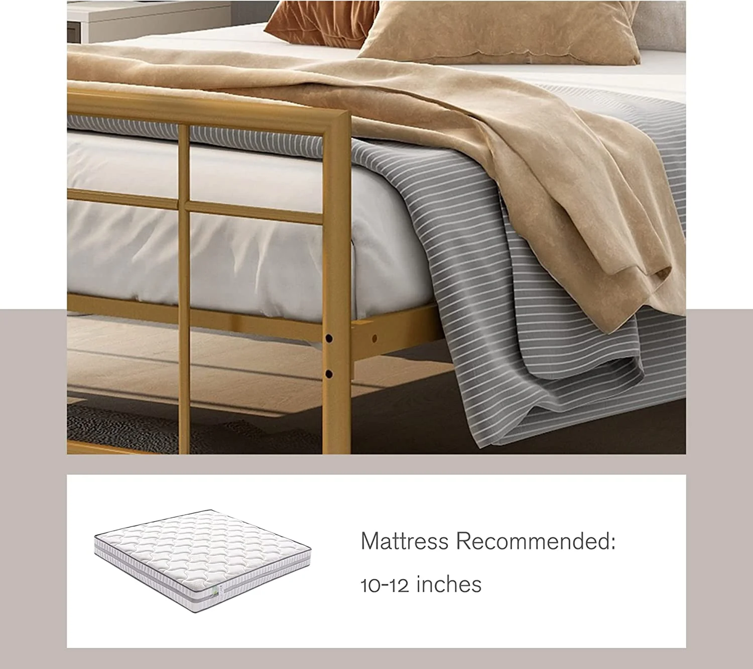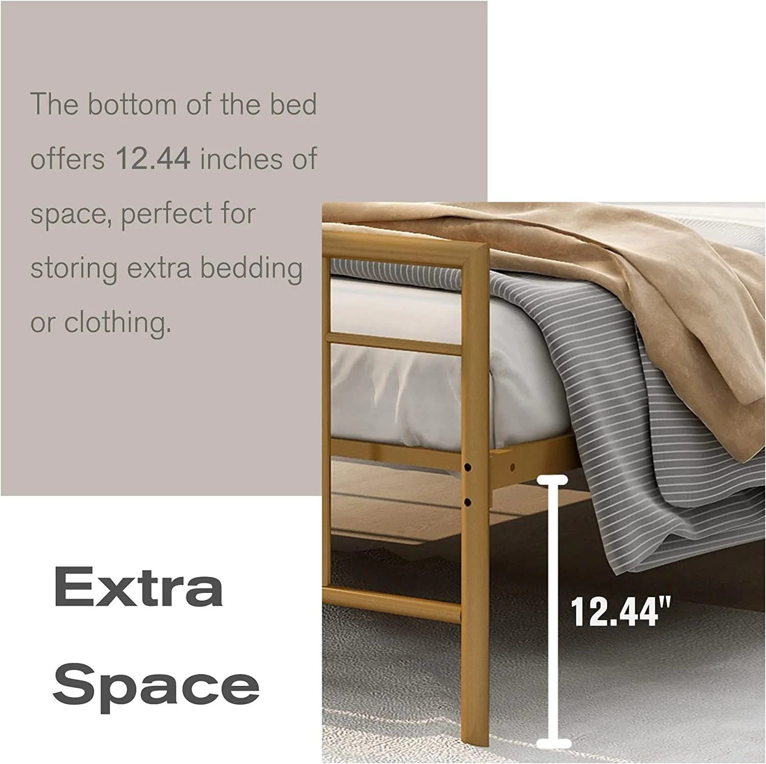 Metal Queen Size Platform Bed Frame with Headboard and Footboard Under Storage Steel Slat Size Mattress Foundation Gold