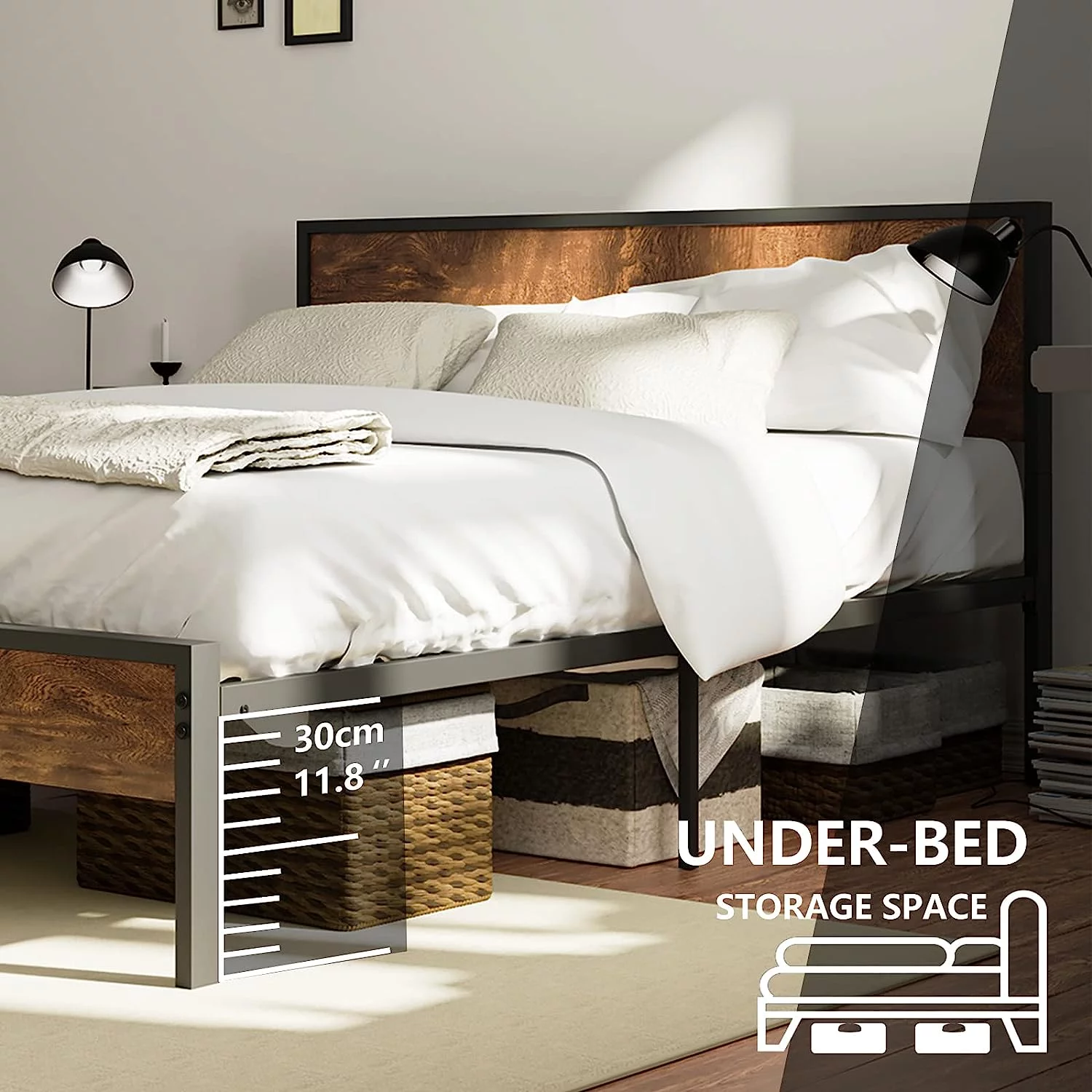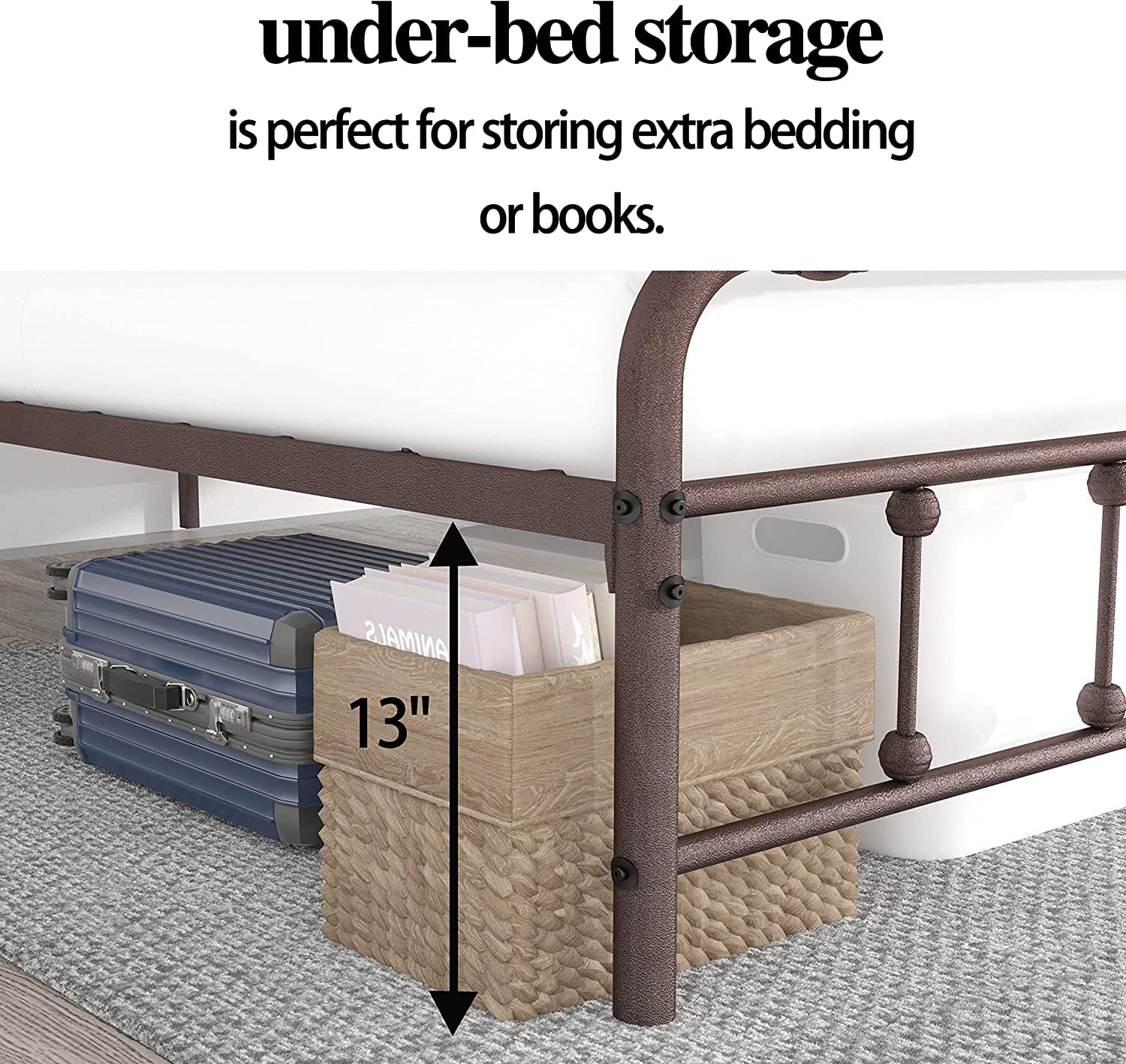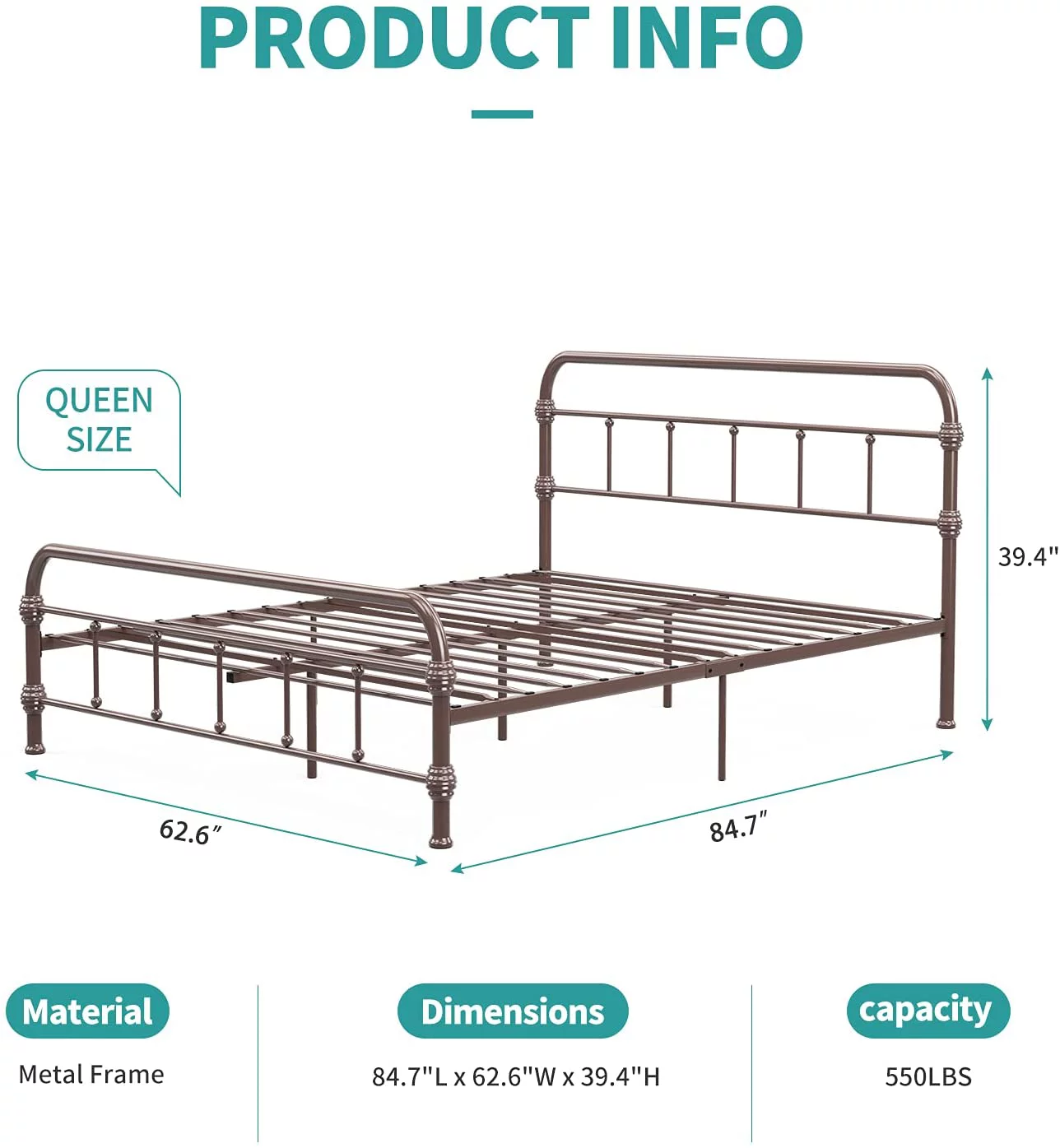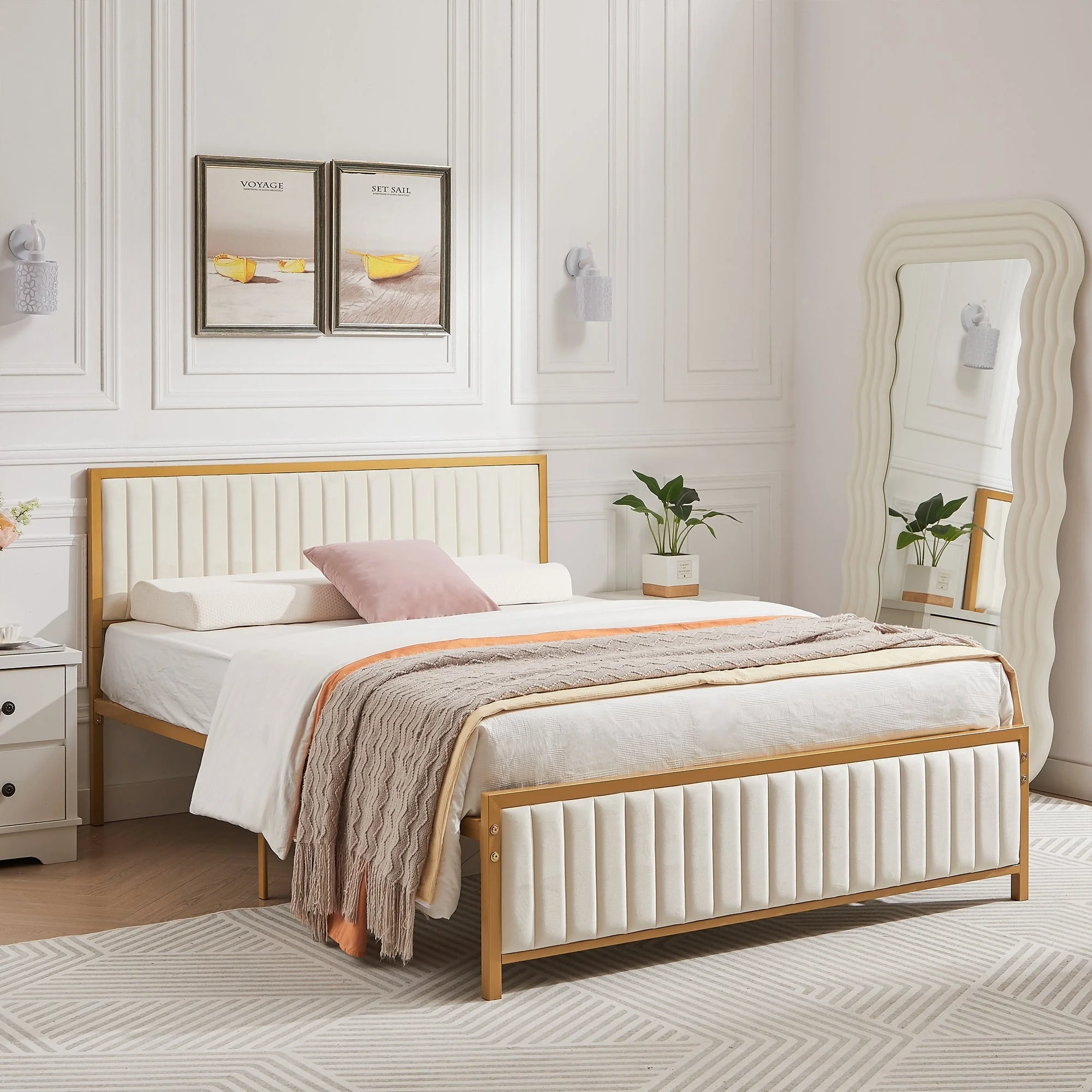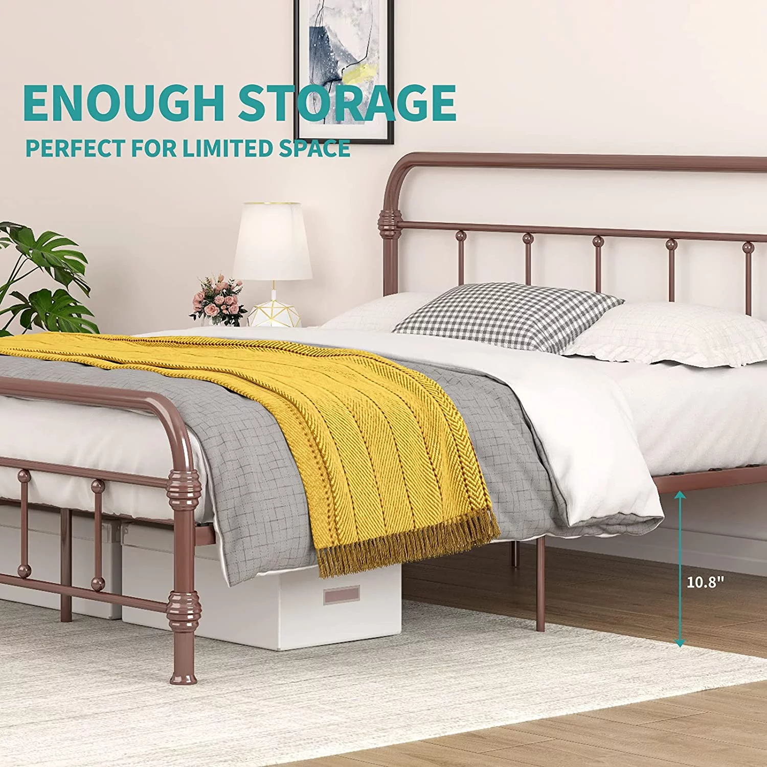 Metal Queen Size Platform Bed Frame with Headboard and Footboard Under Storage Steel Slat Size Mattress Foundation Gold