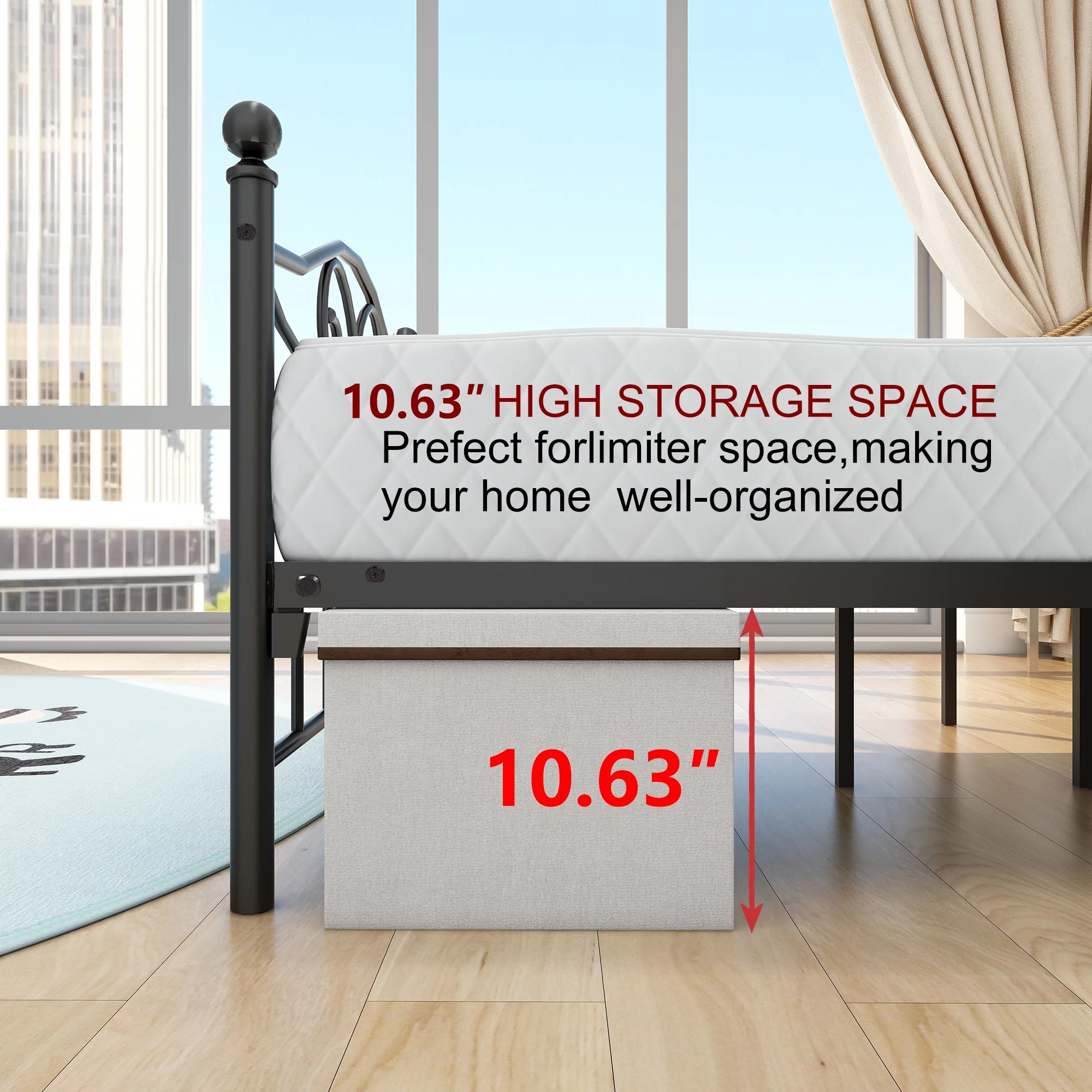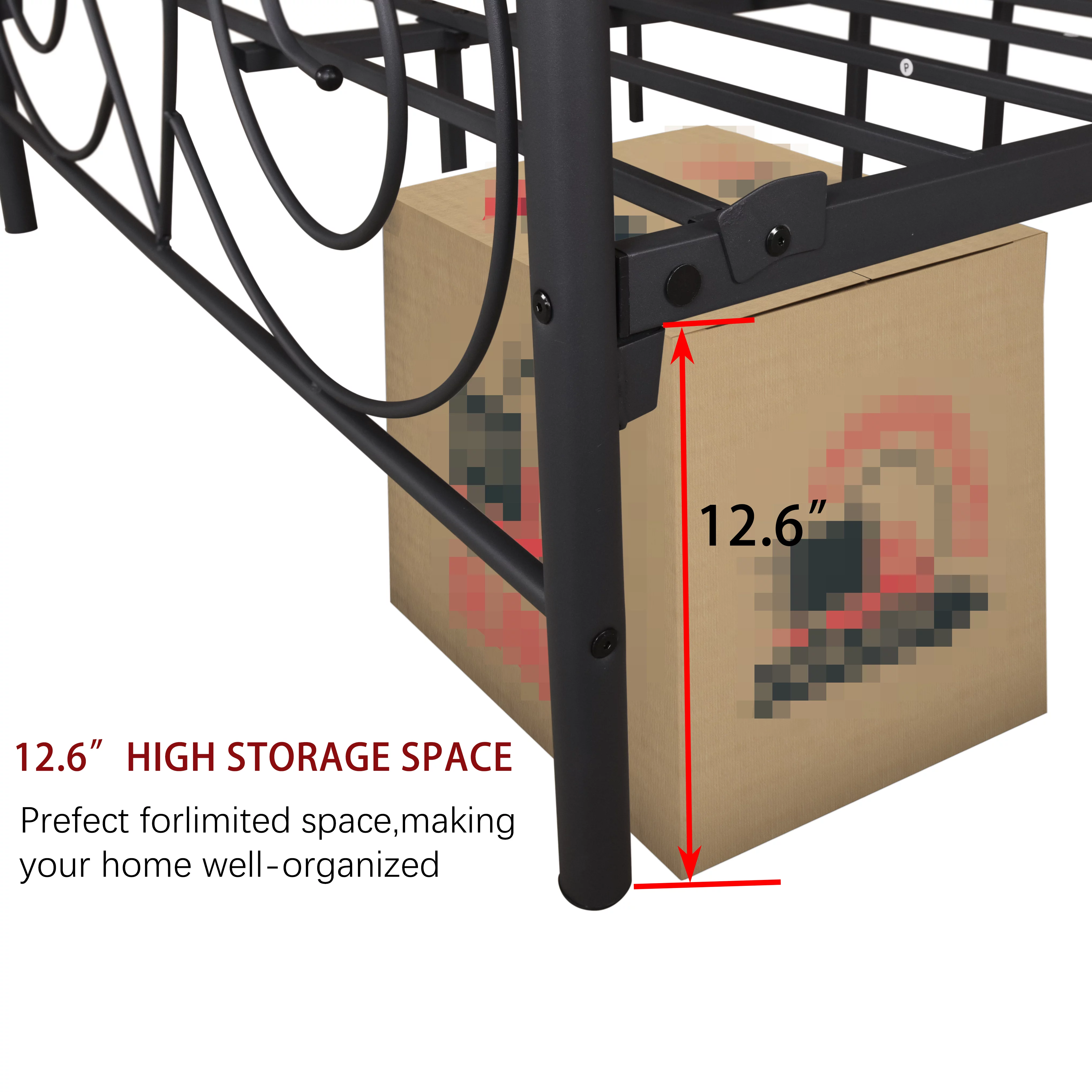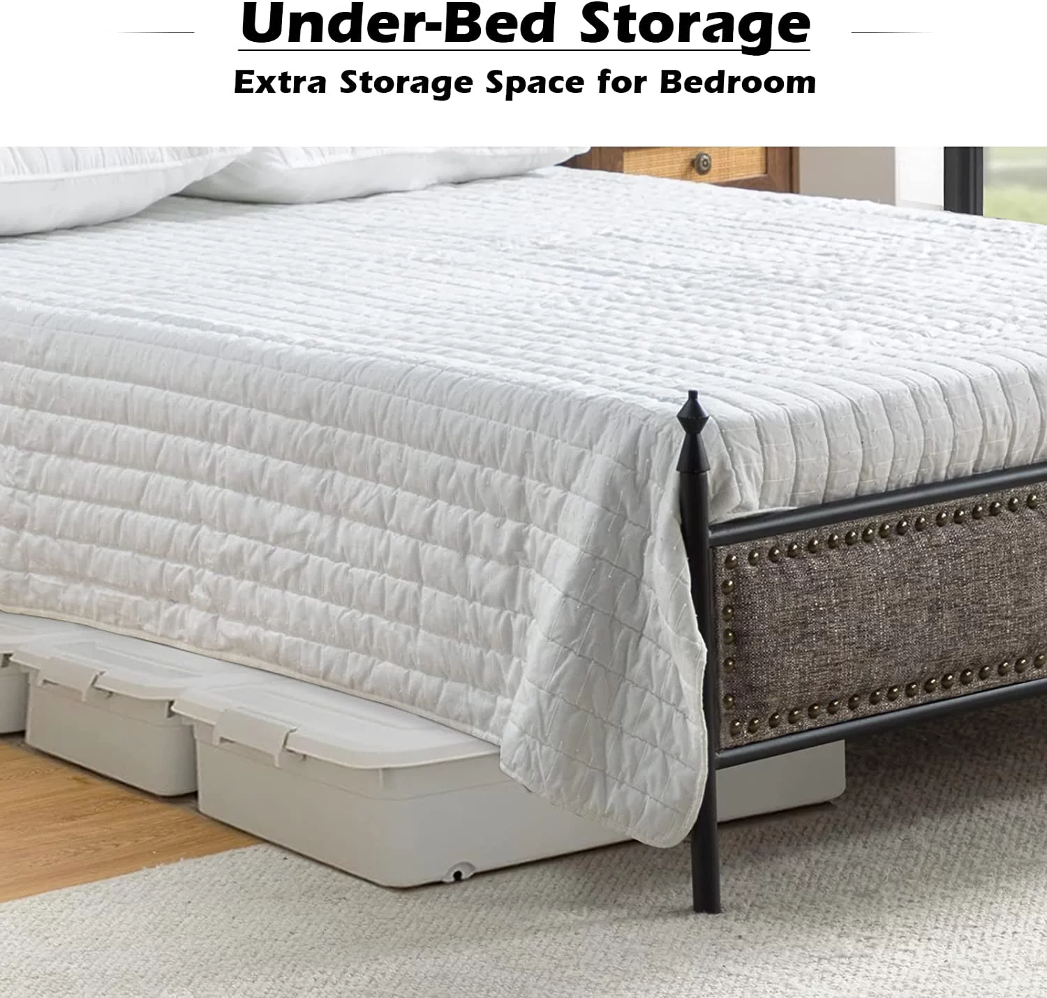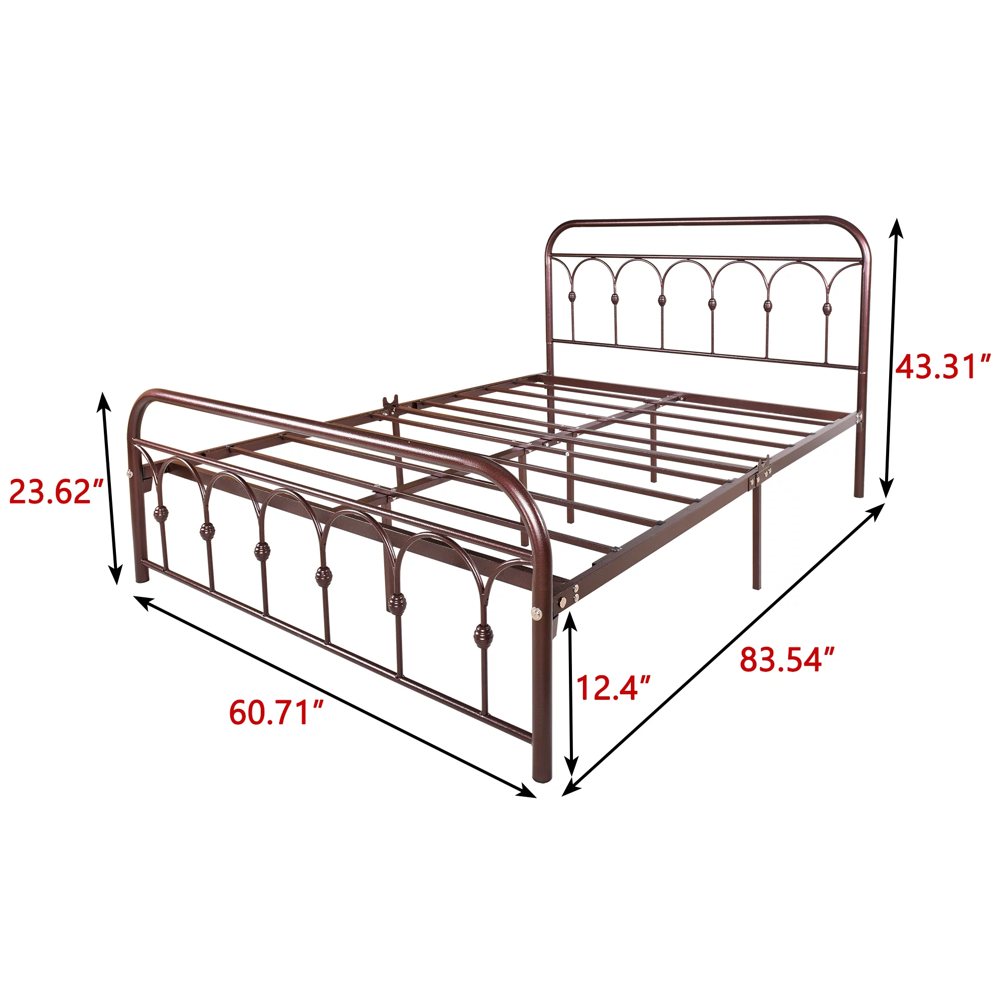 Metal Queen Size Platform Bed Frame with Headboard and Footboard Under Storage Steel Slat Size Mattress Foundation Gold