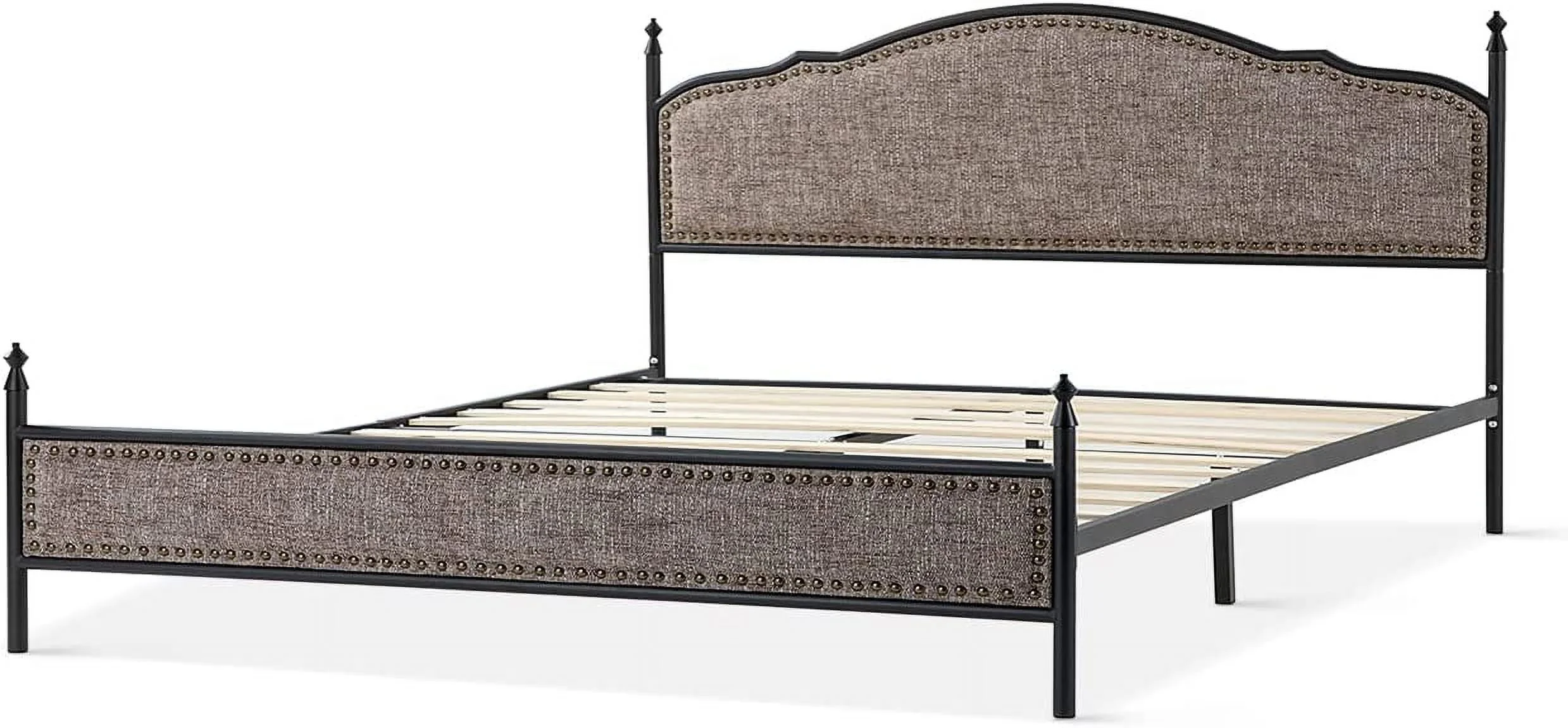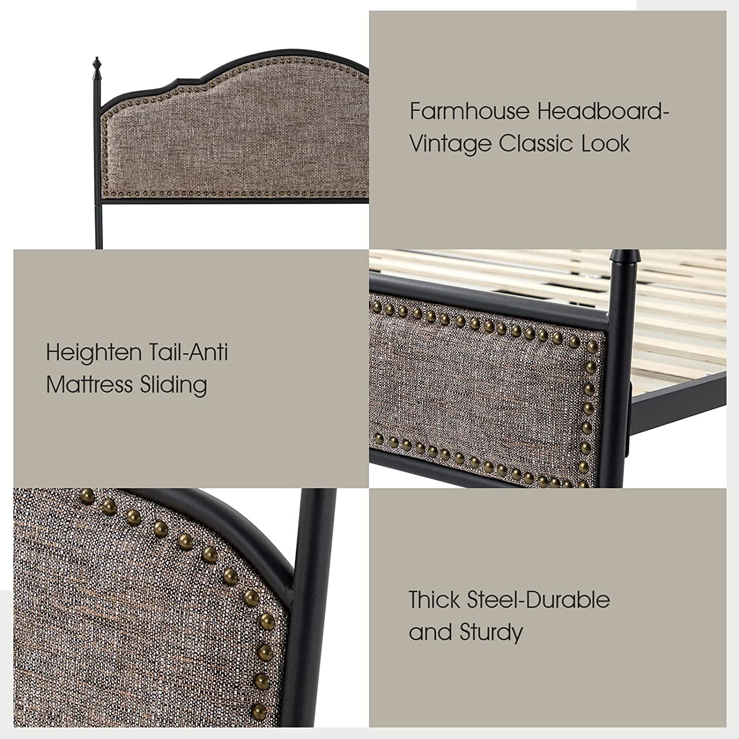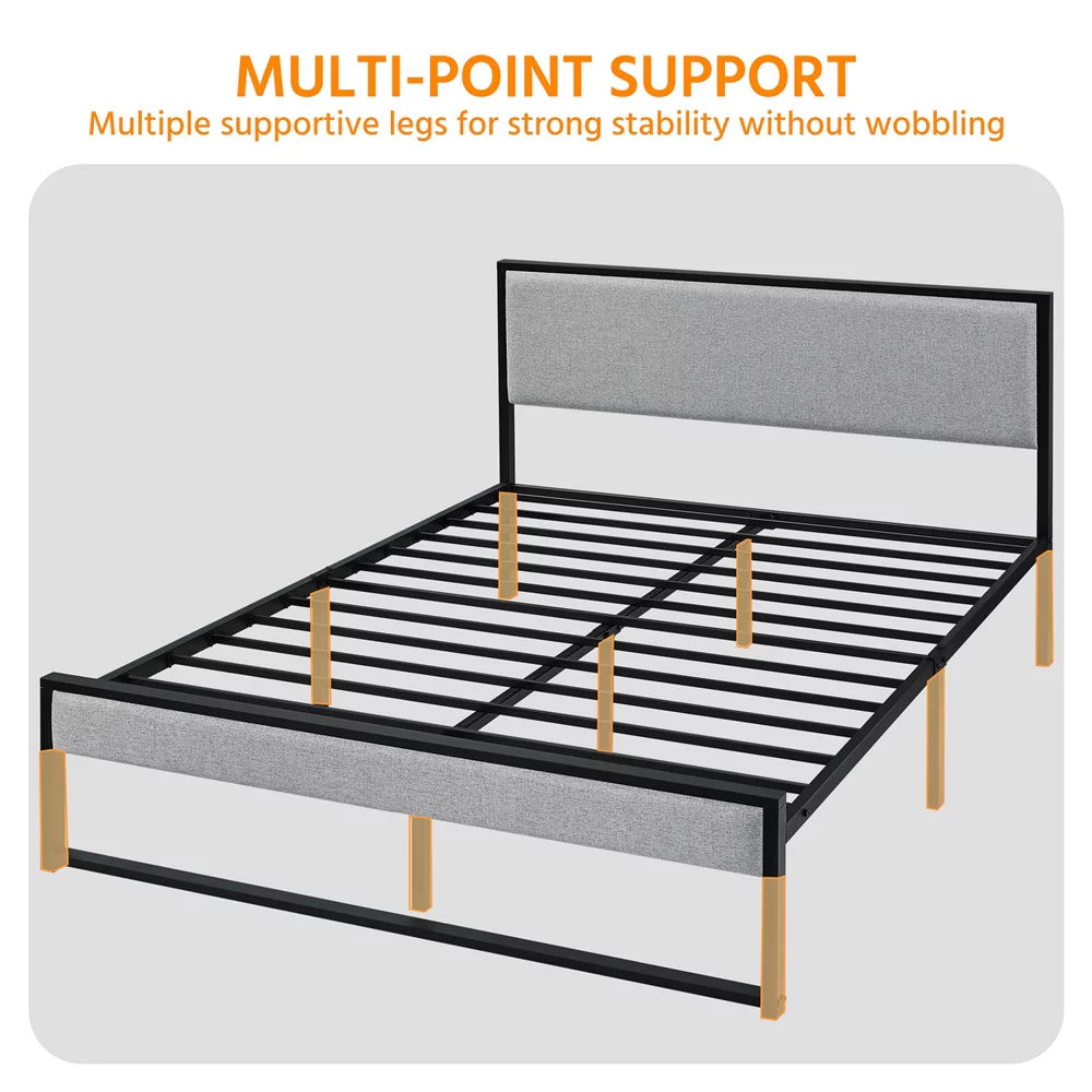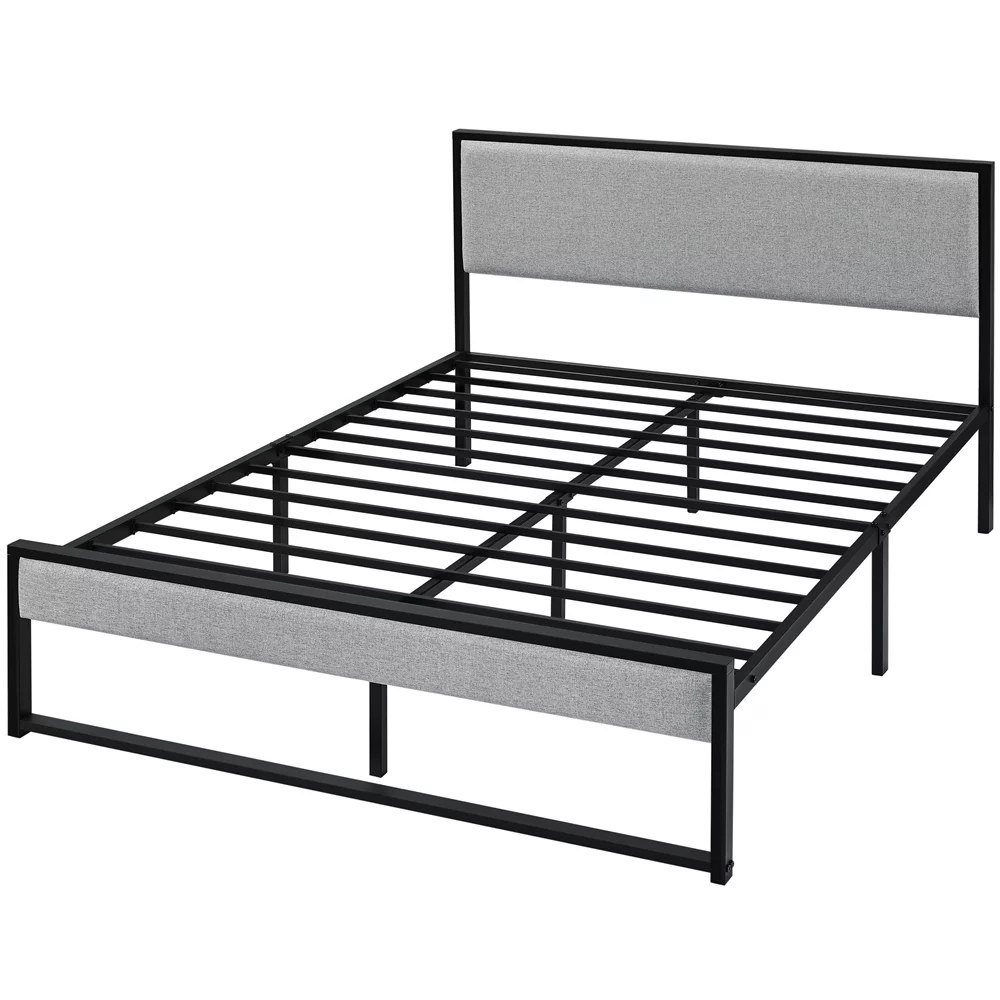 Queen Metal Bed Frame with Upholstered Headboard & Footboard, 3001 lbs Heavy Duty, Gray