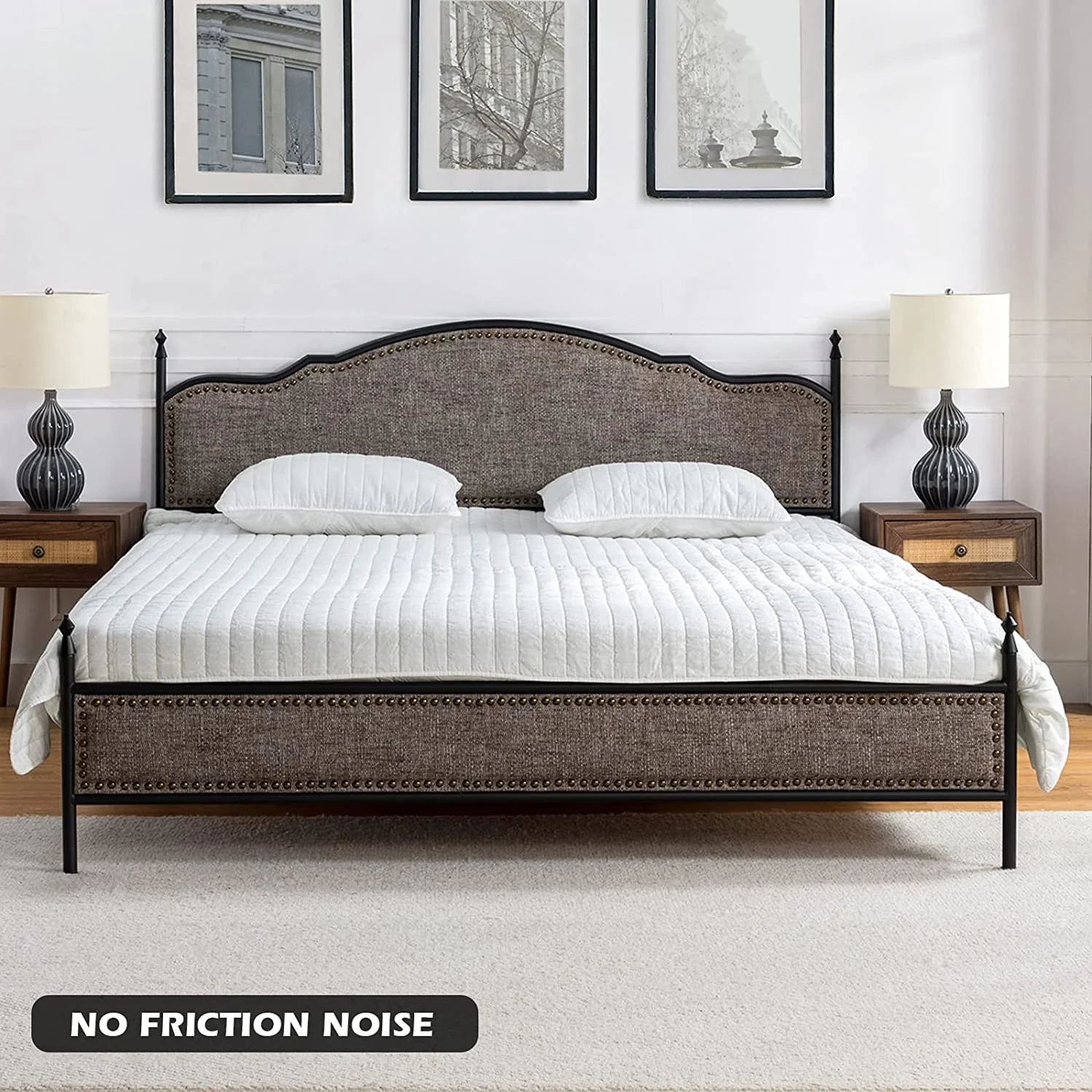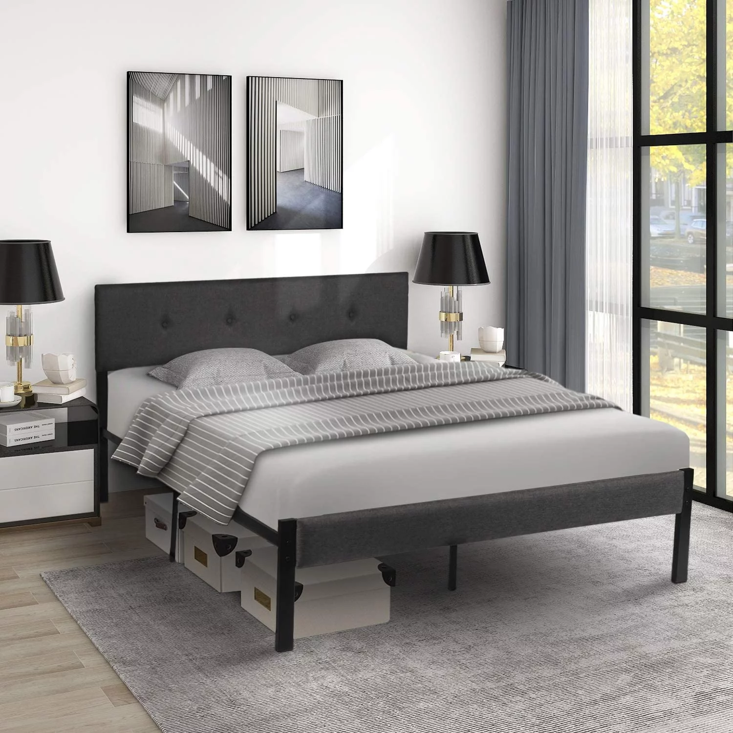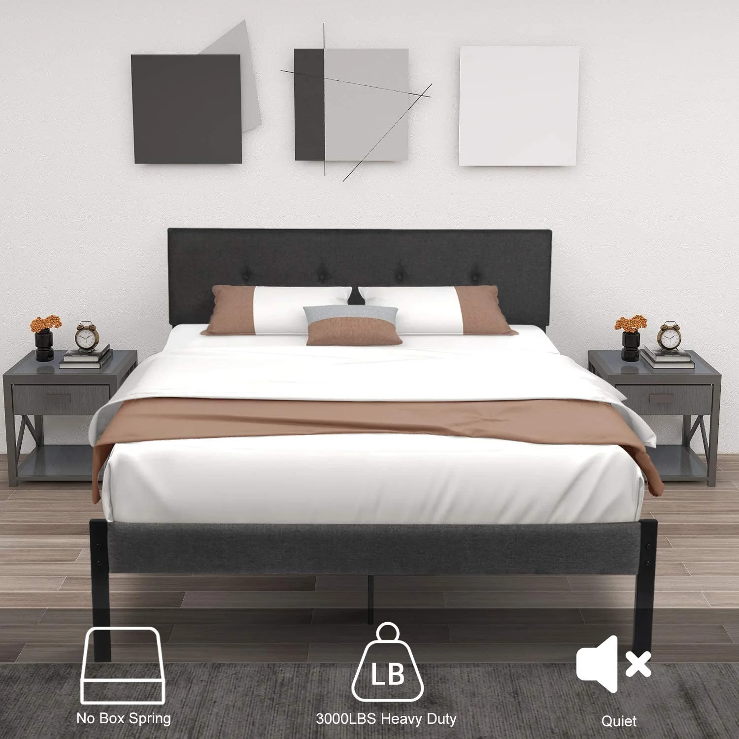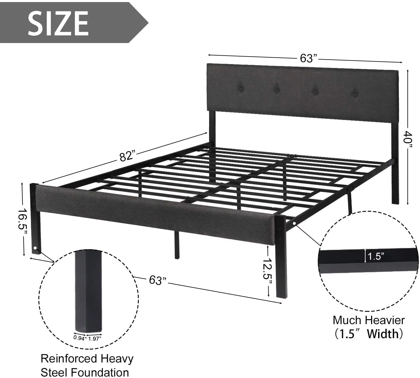Queen Metal Bed Frame with Upholstered Headboard & Footboard, 3001 lbs Heavy Duty, Gray