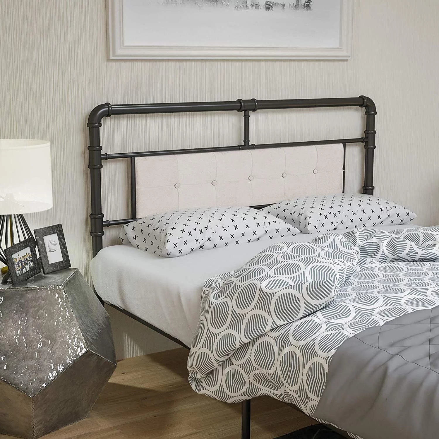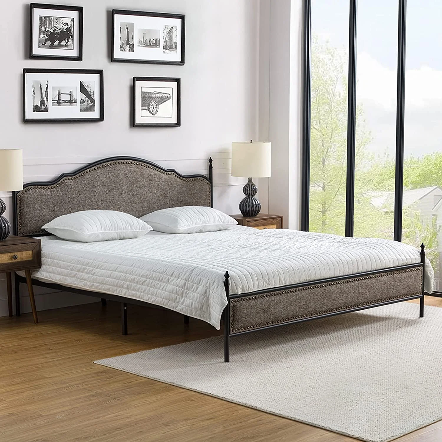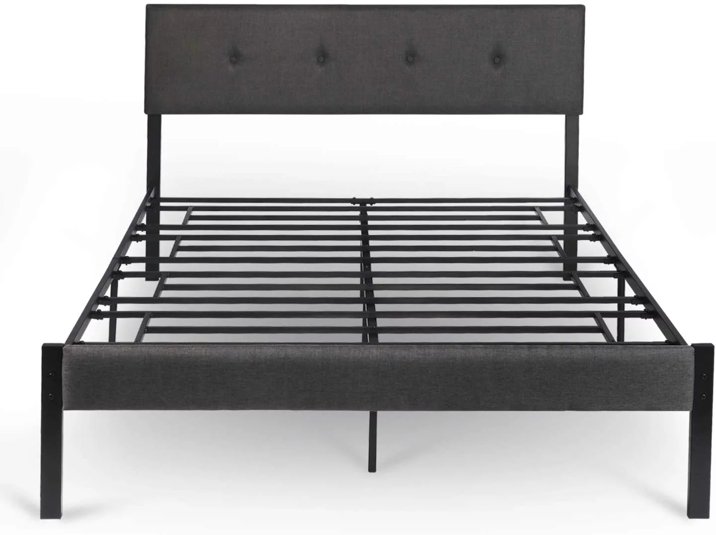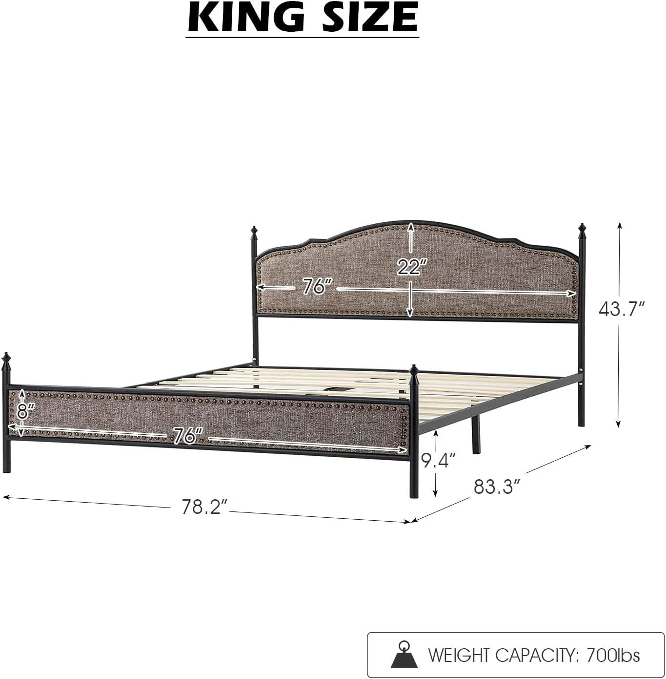 Queen Metal Bed Frame with Upholstered Headboard & Footboard, 3001 lbs Heavy Duty, Gray