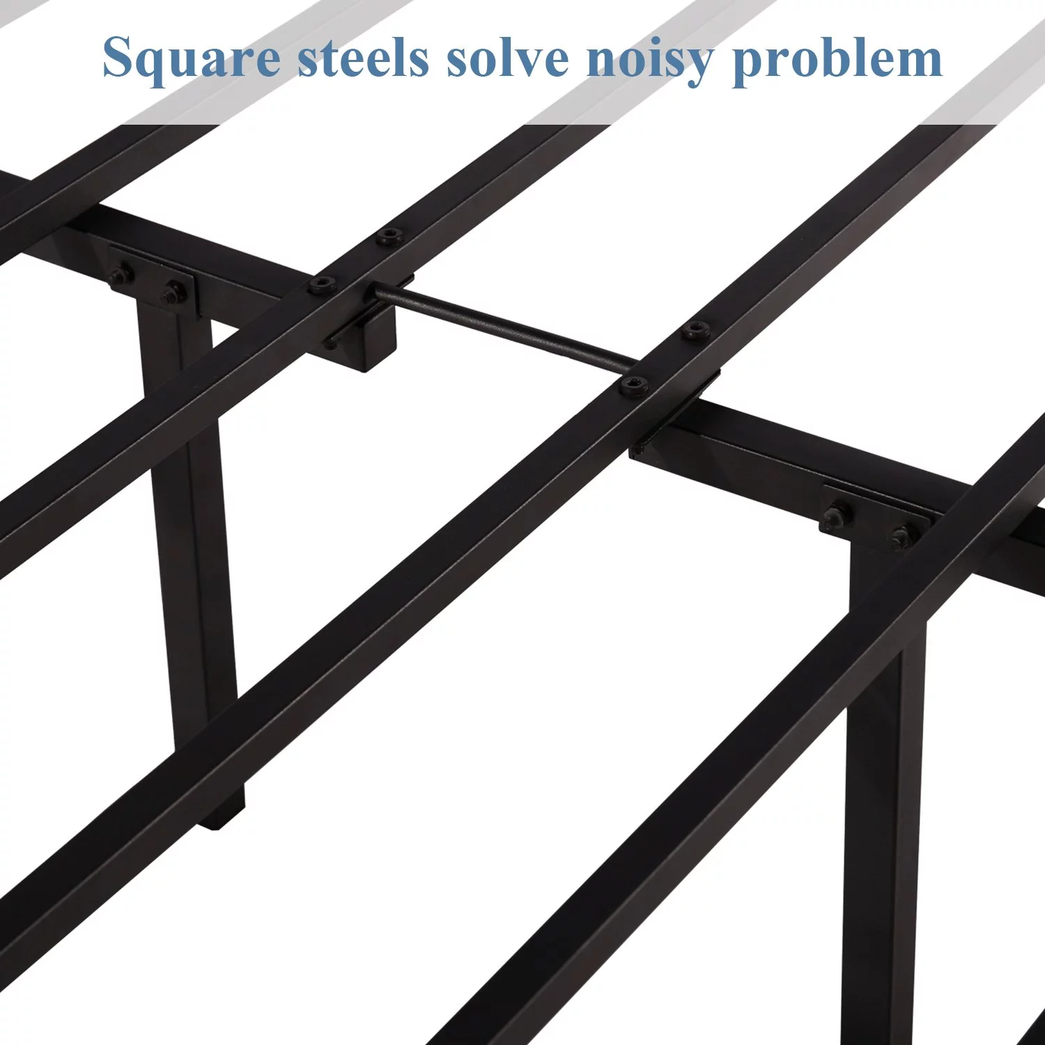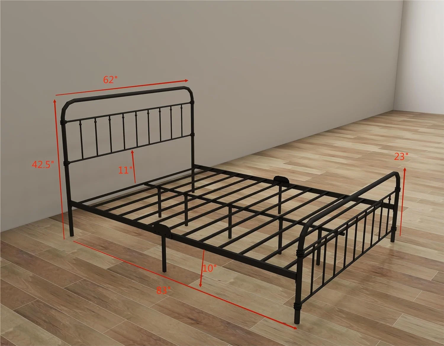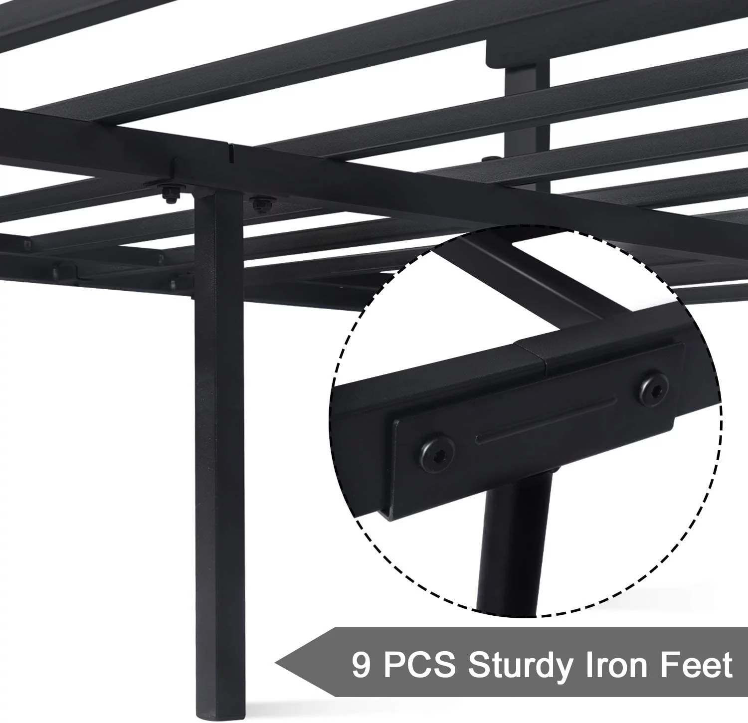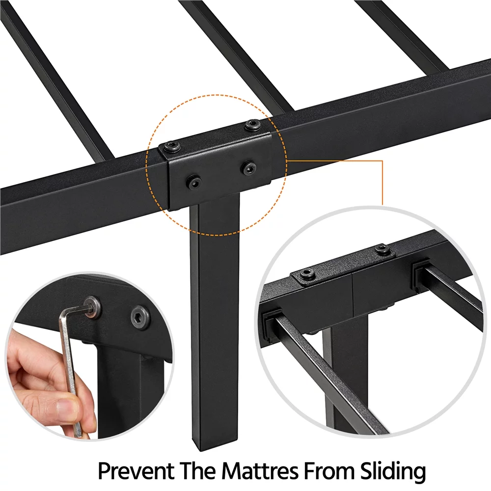 Metal bed frame platform with headboard and footboard, heavy duty and quick assembly, Queen black