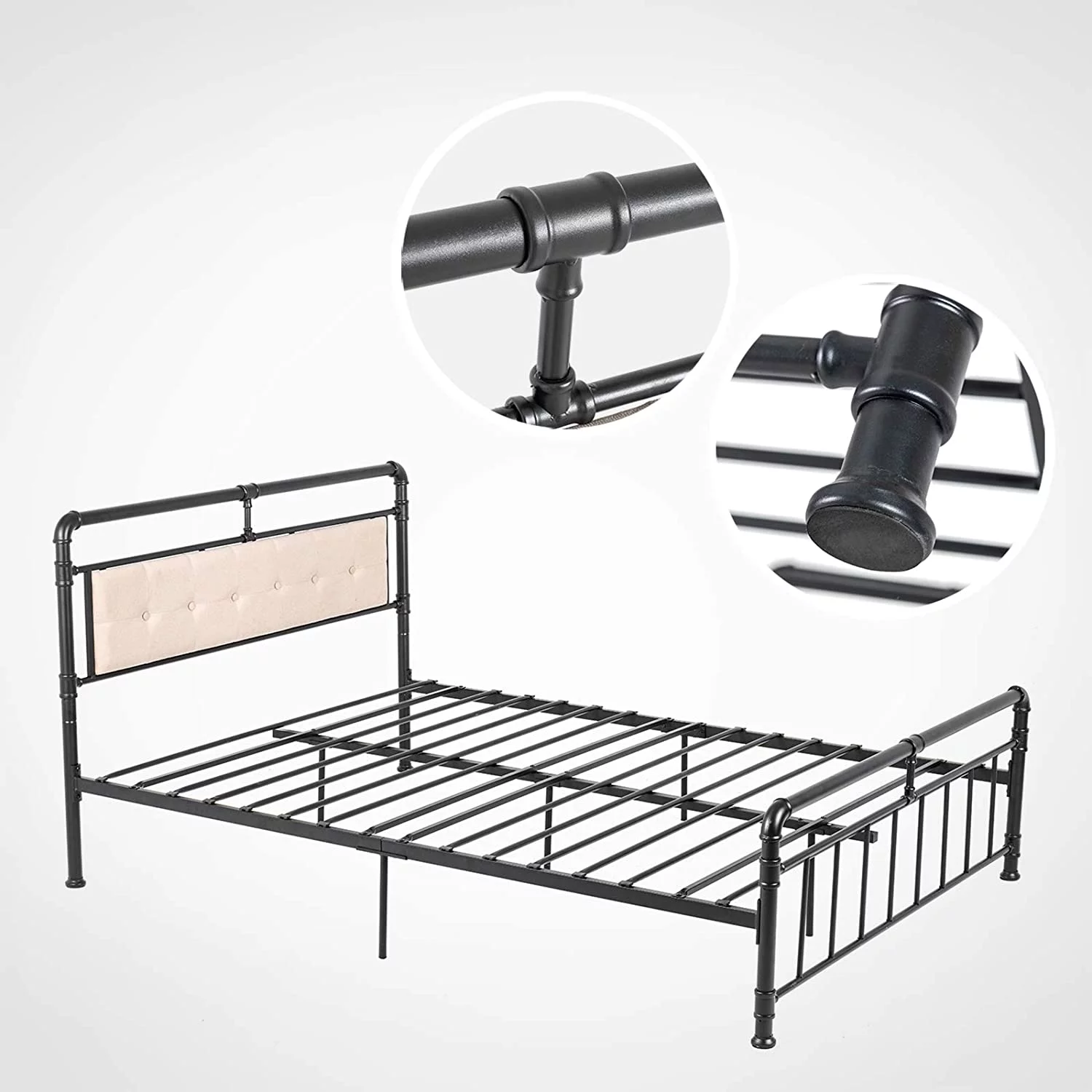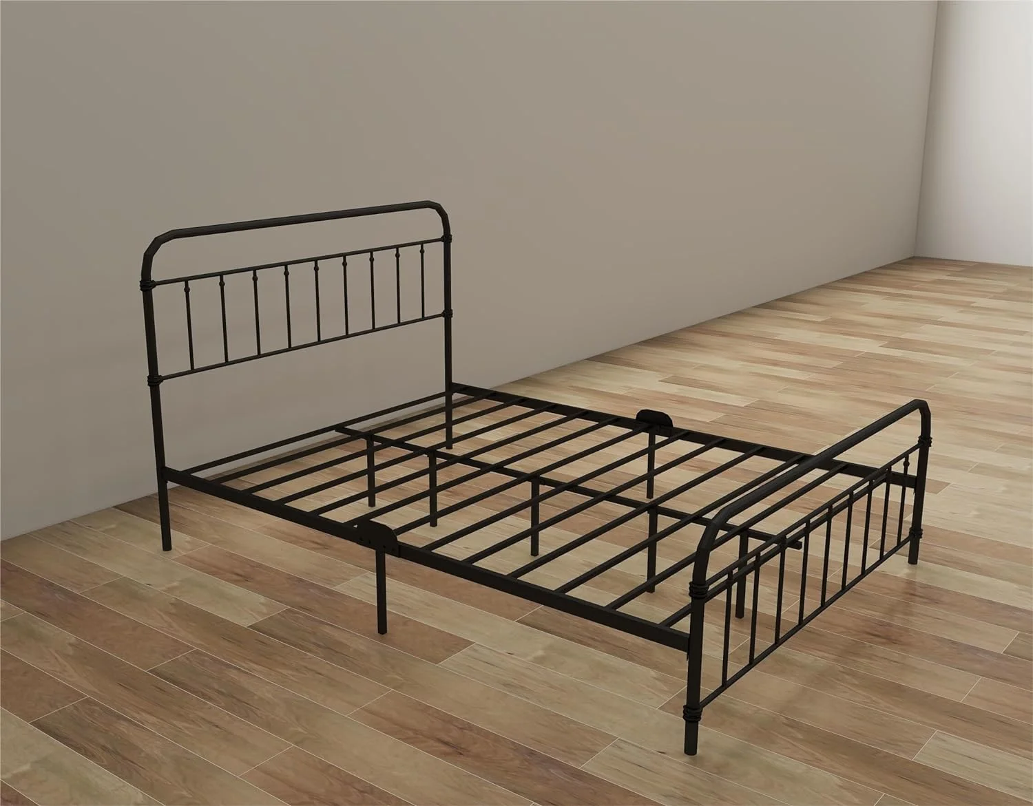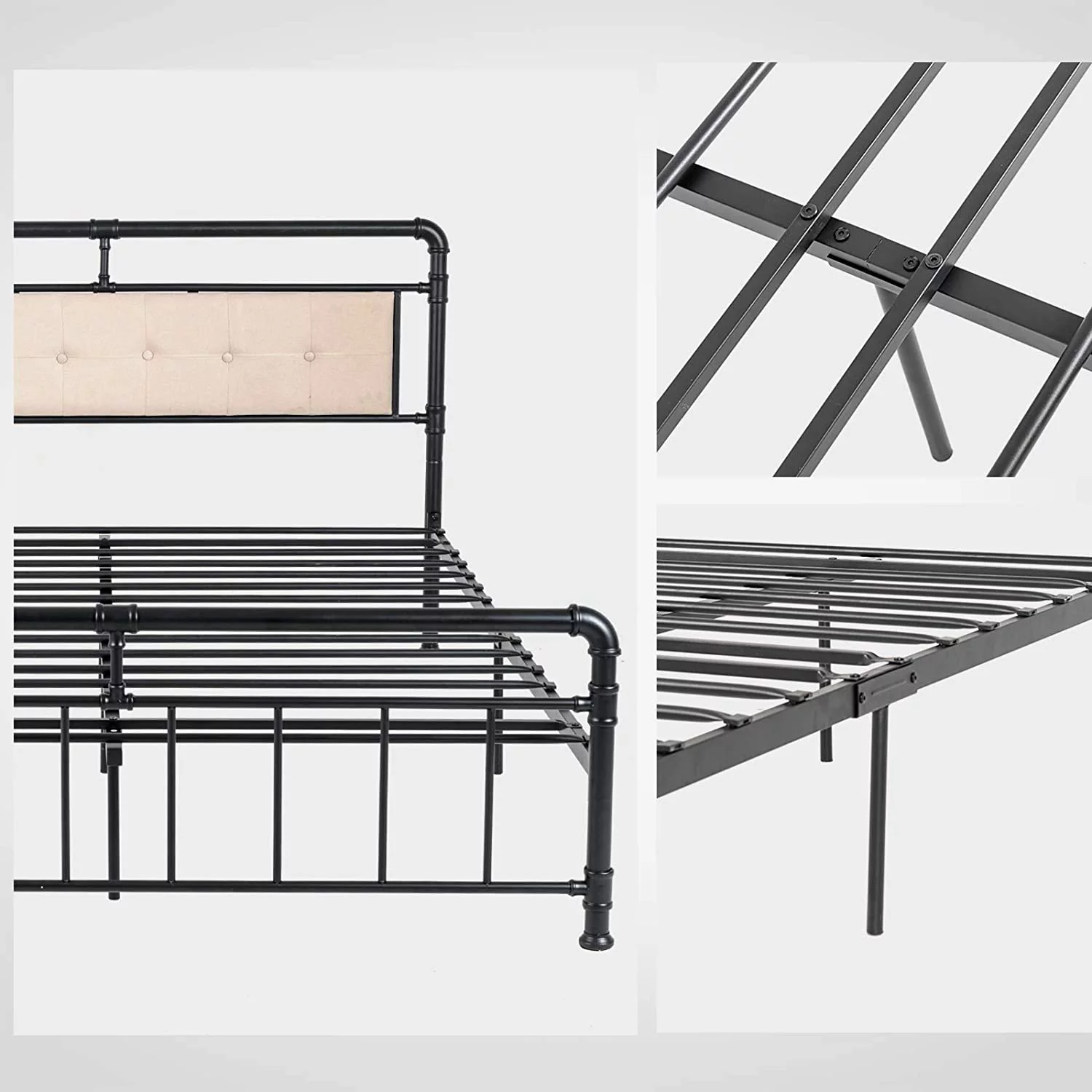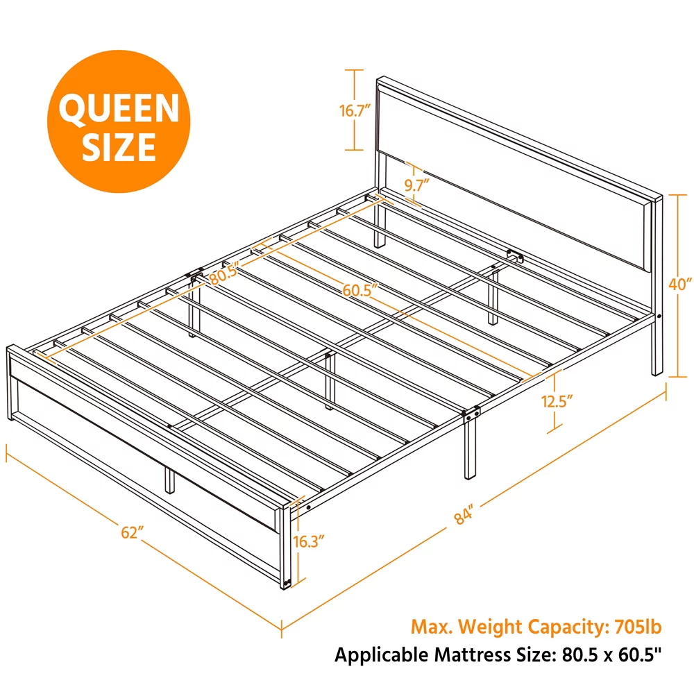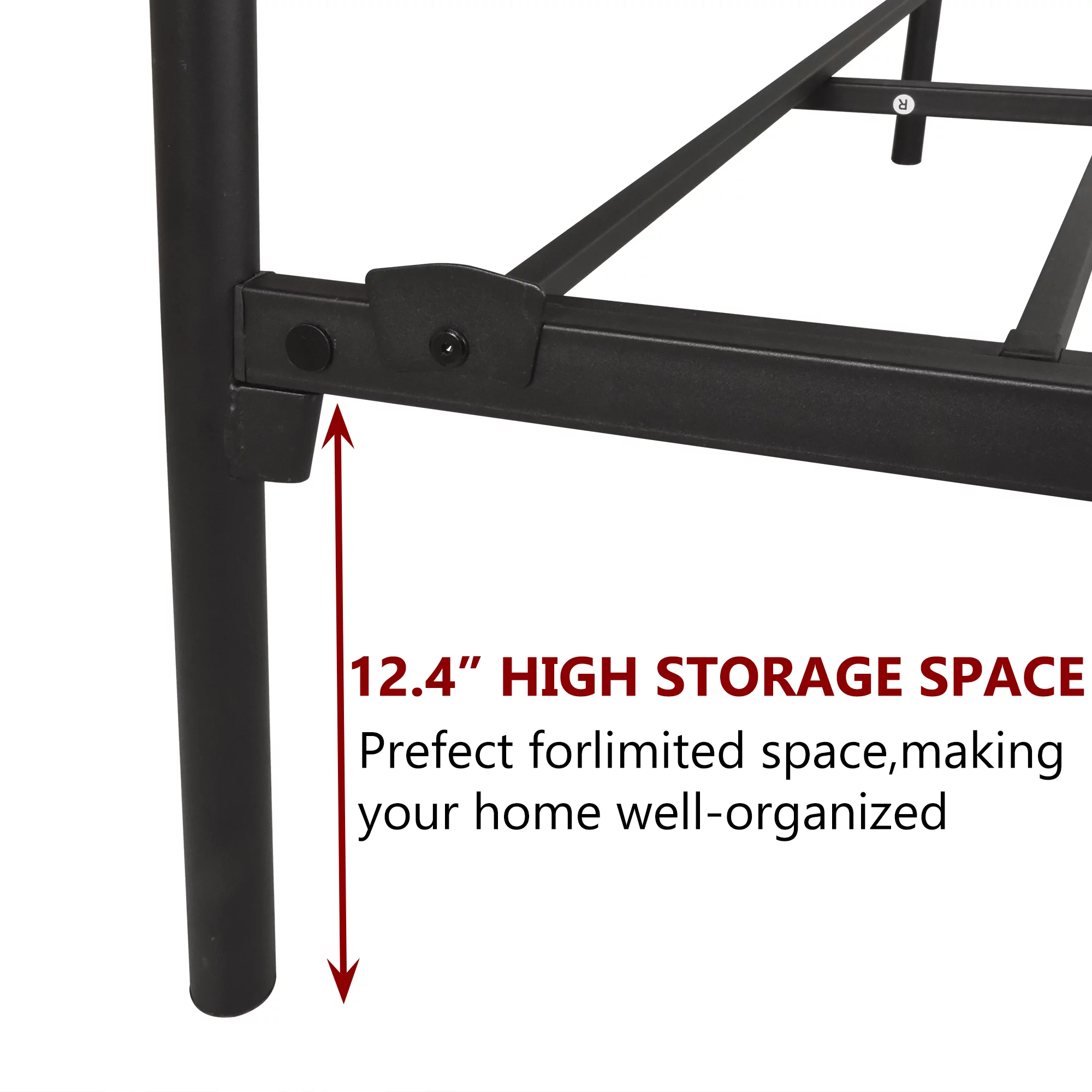 Metal bed frame platform with headboard and footboard, heavy duty and quick assembly, Queen black
