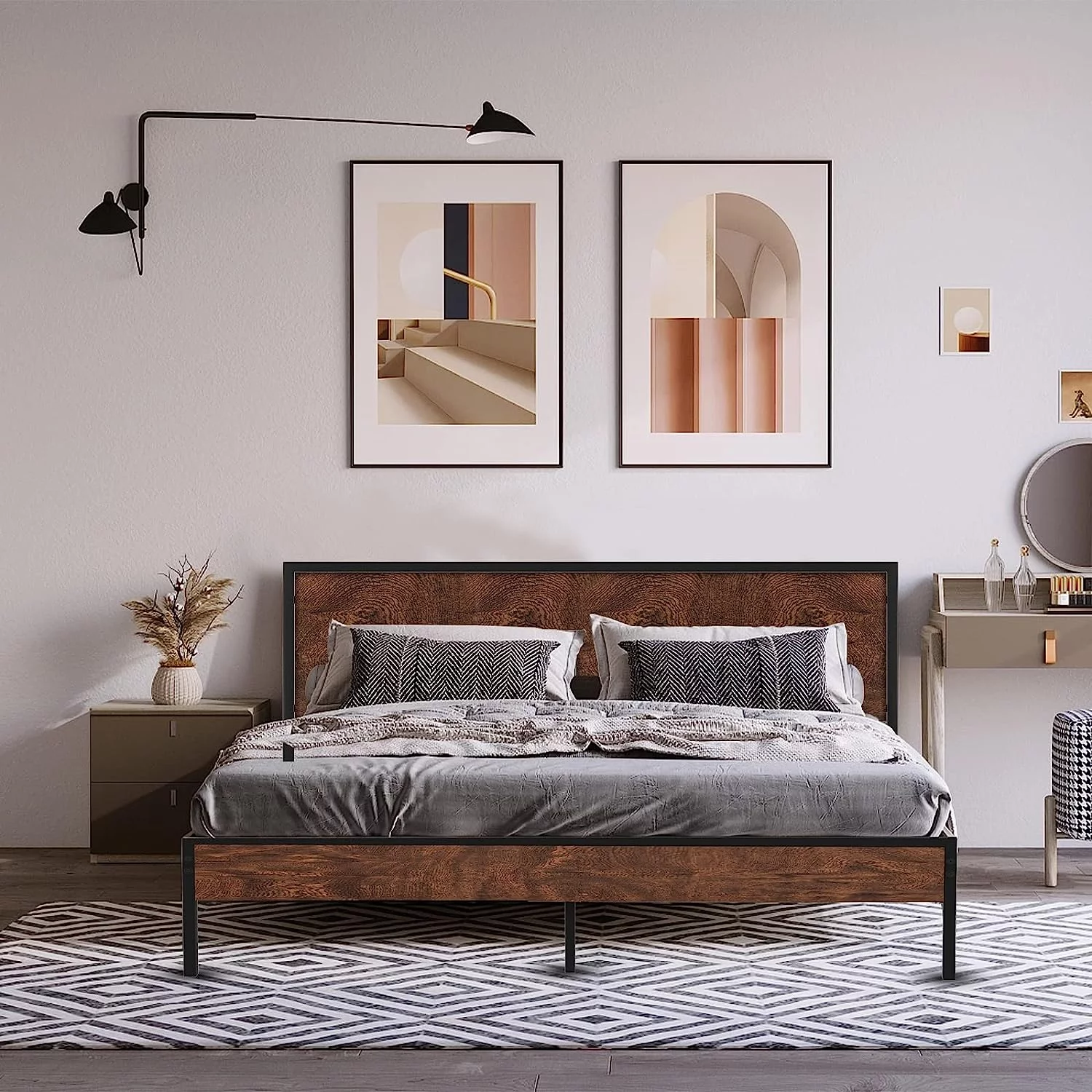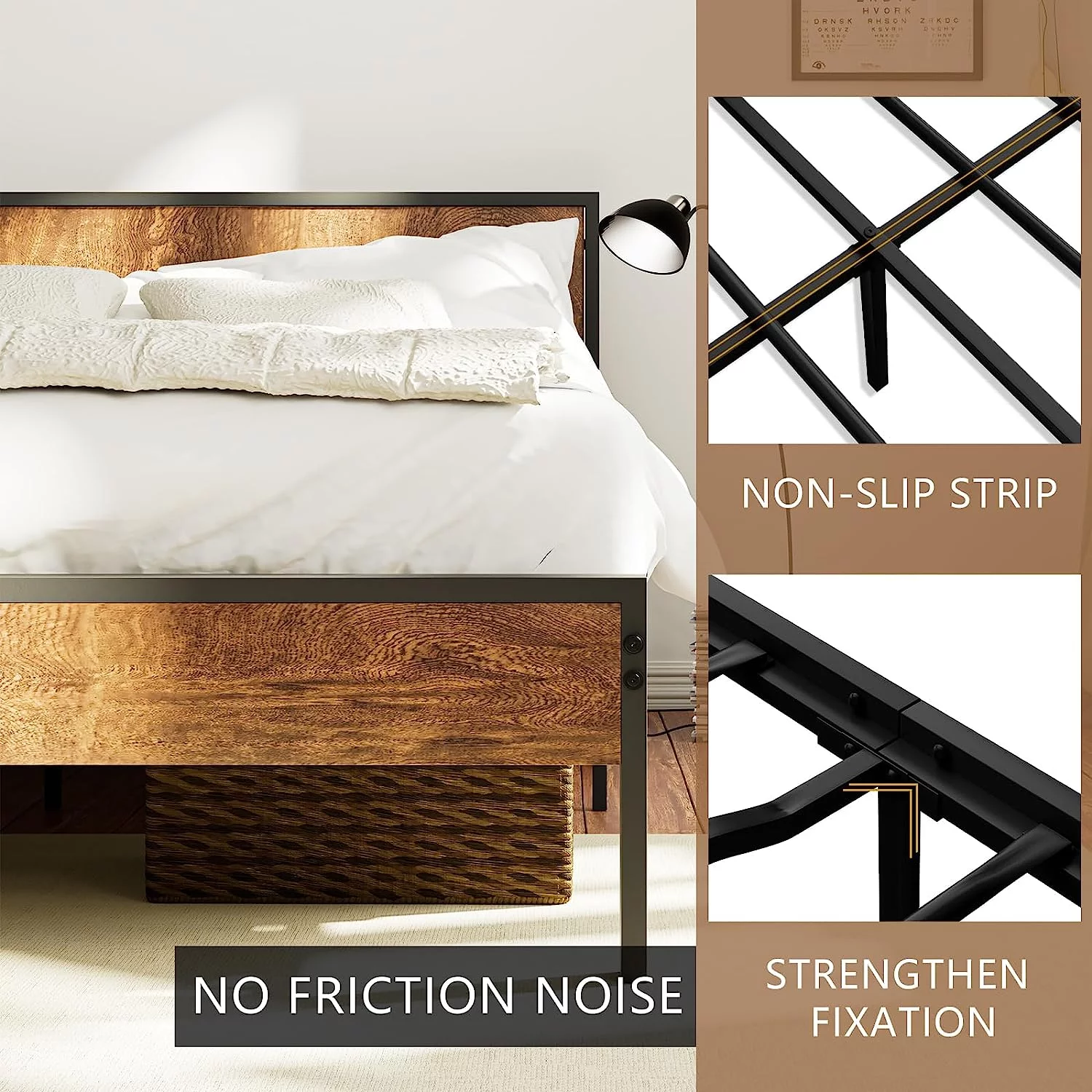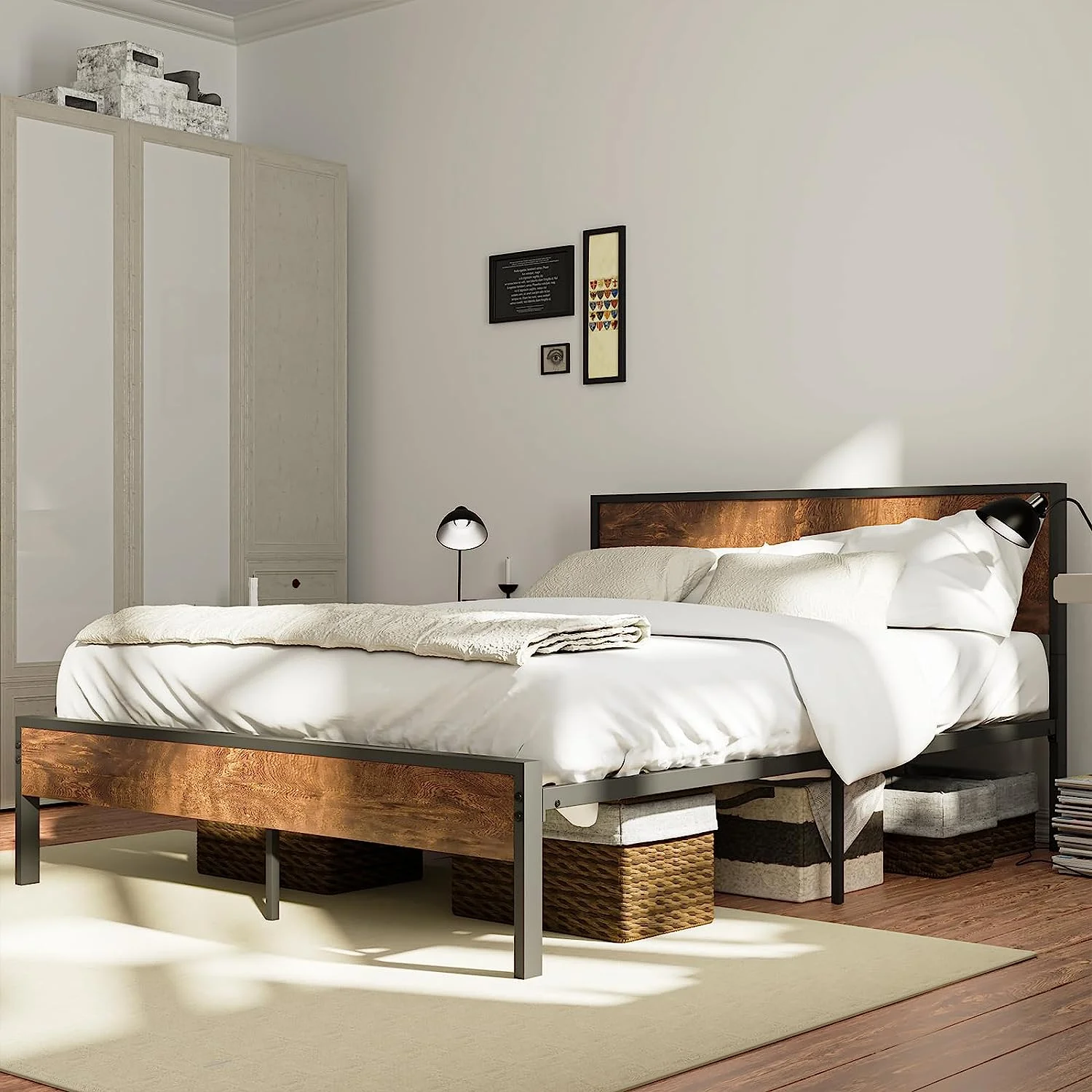Yaheetech Metal Bed Frame with Wooden Headboard and Footboard, Queen Size