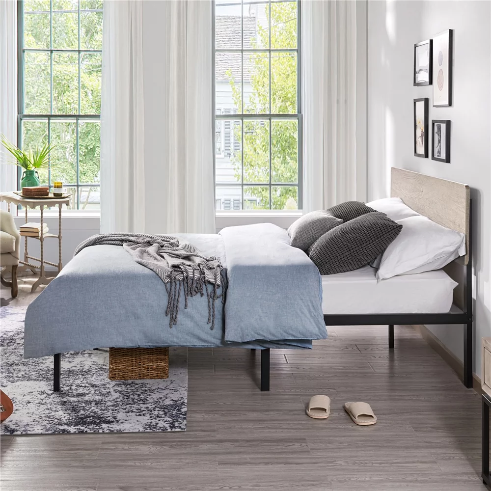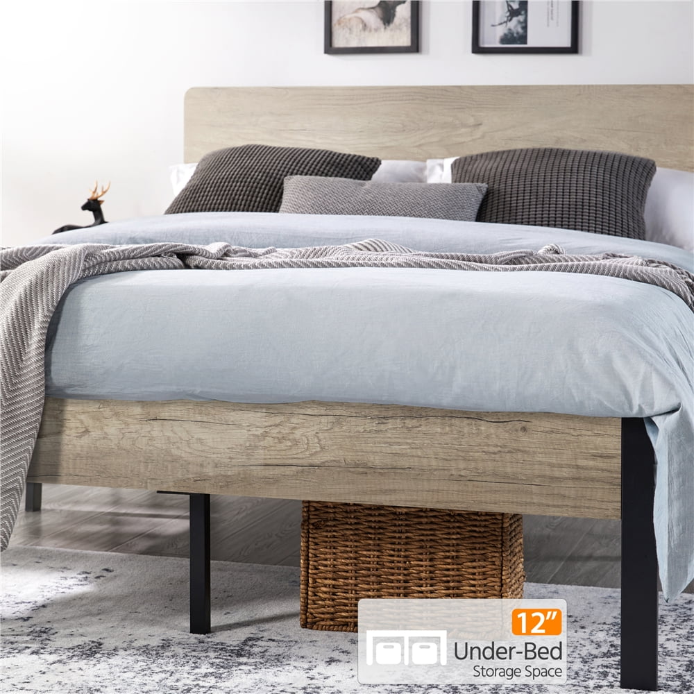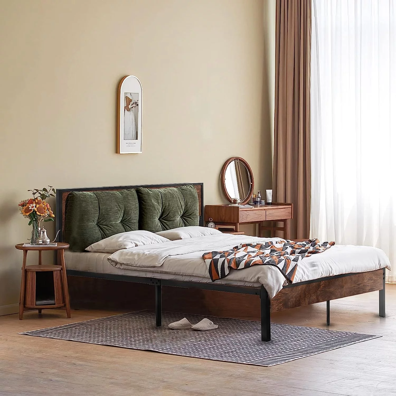 Yaheetech Metal Bed Frame with Wooden Headboard and Footboard, Queen Size