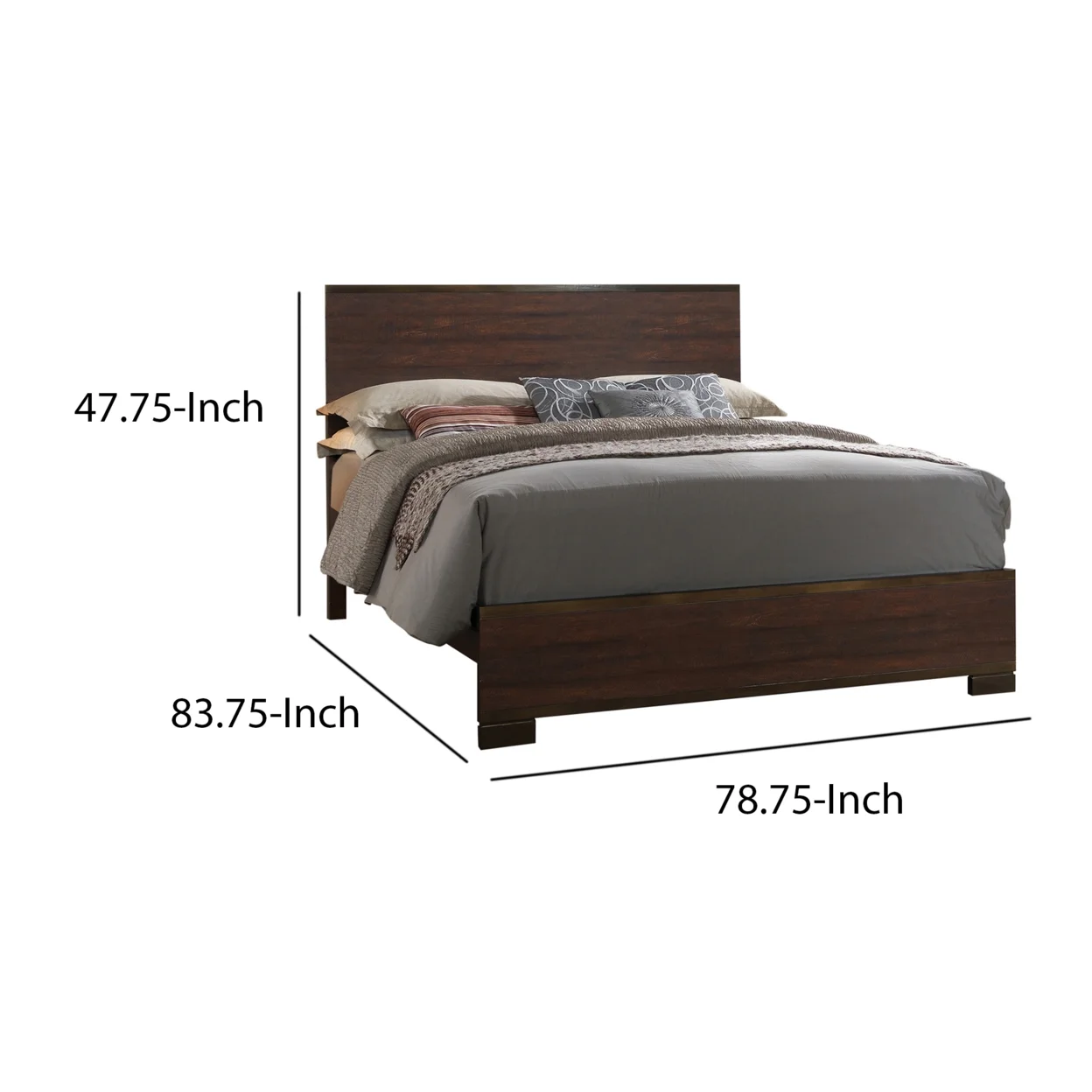 Transitional Style Eastern King Size Panel Bed with Low Footboard Brown- Saltoro Sherpi