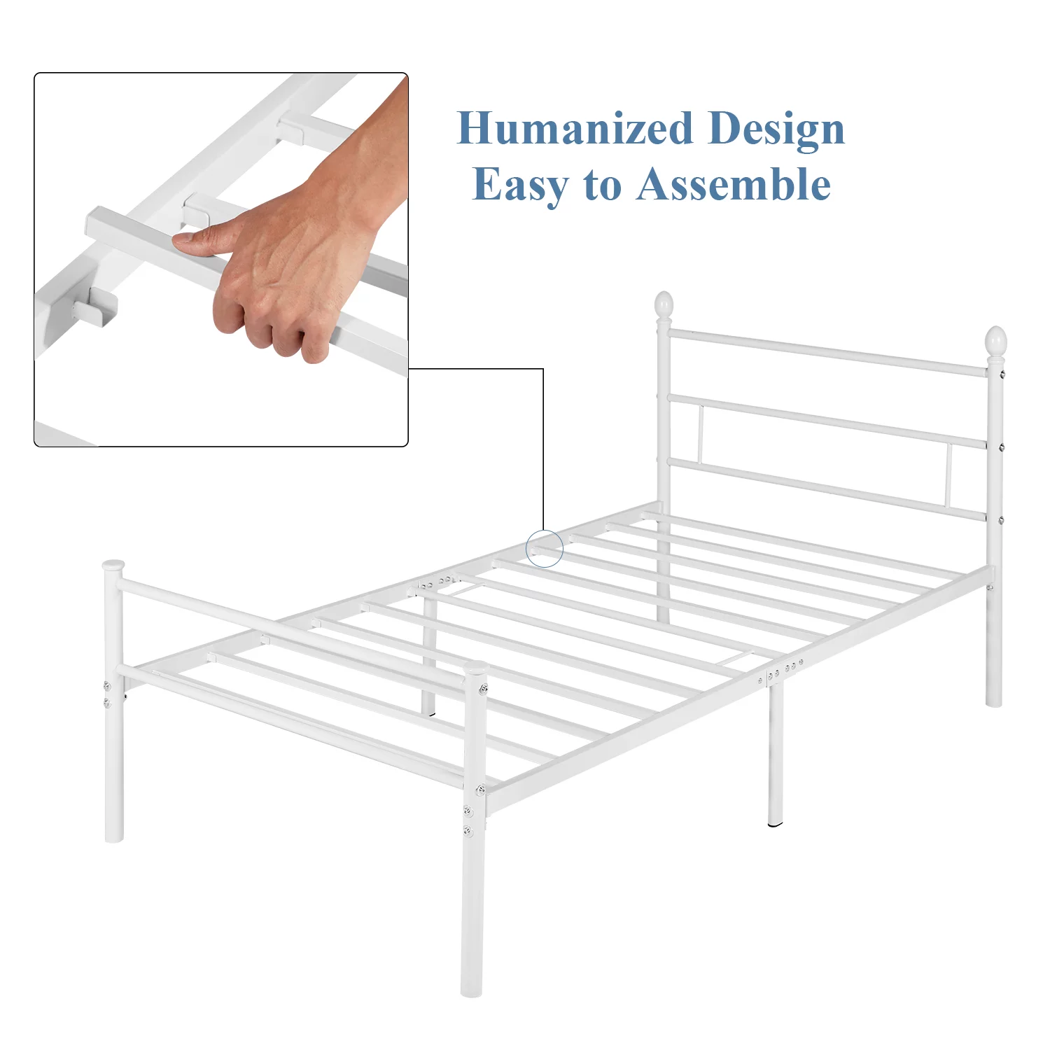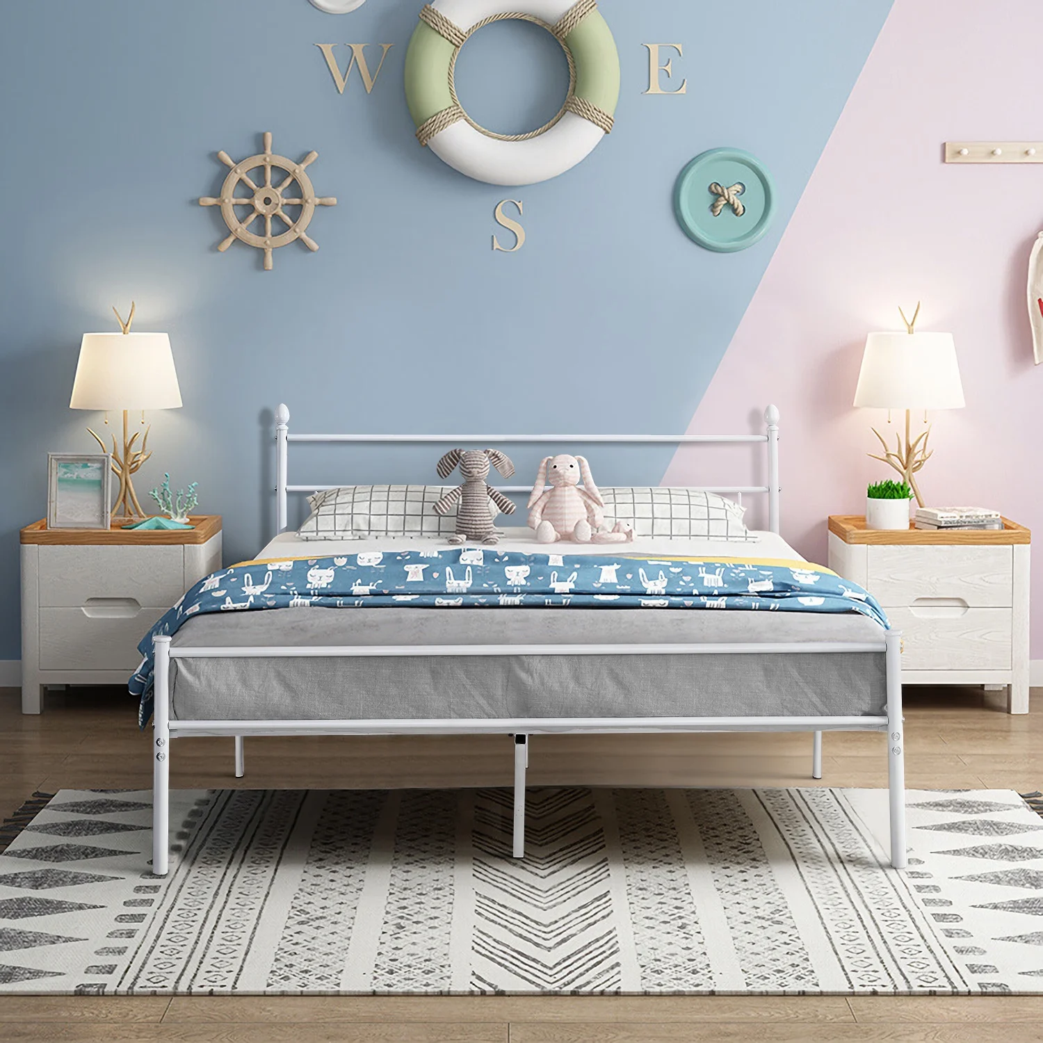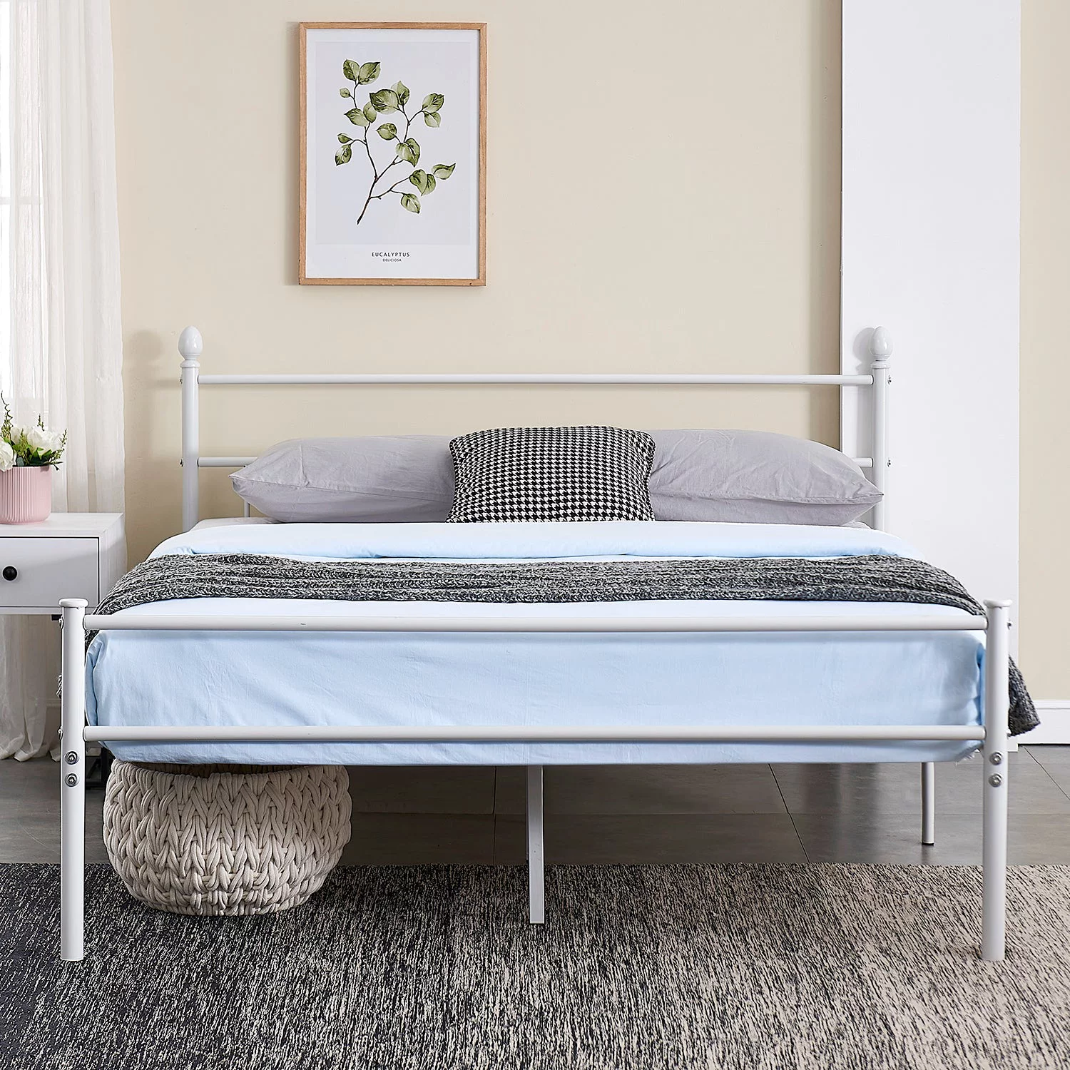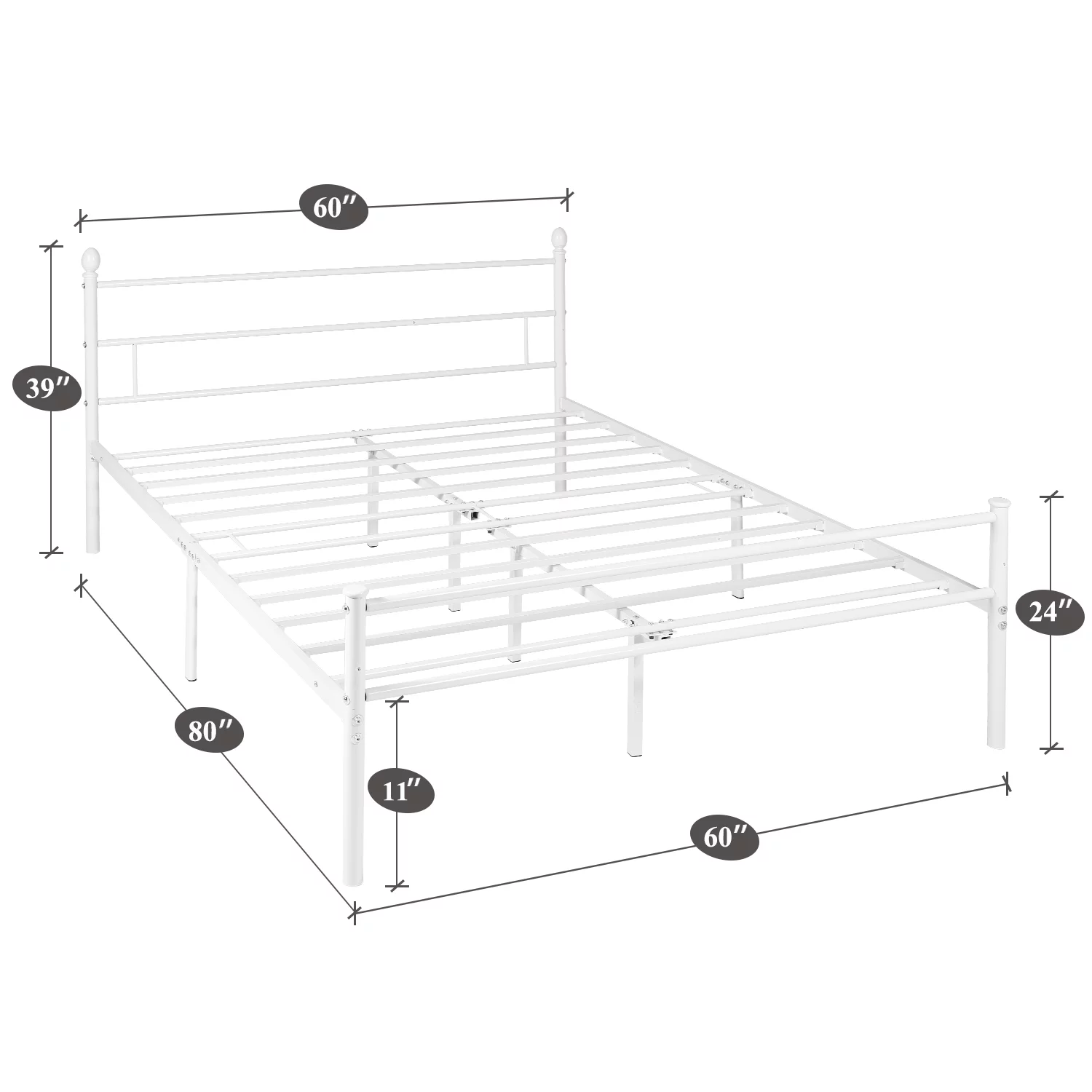 VECELO Queen Size Metal Platform Bed Frame with Headboard and Footboard, Mattress Foundation, White